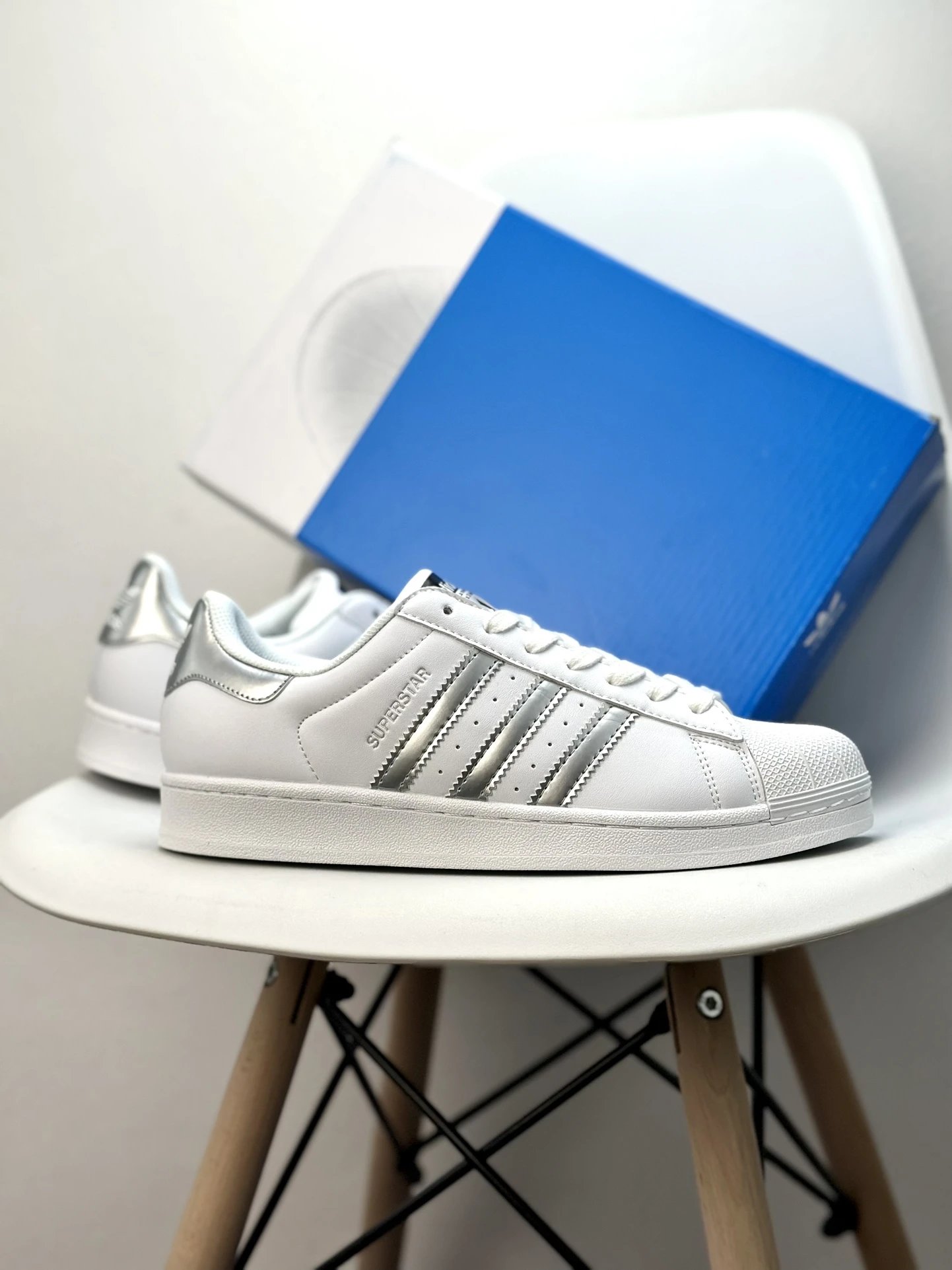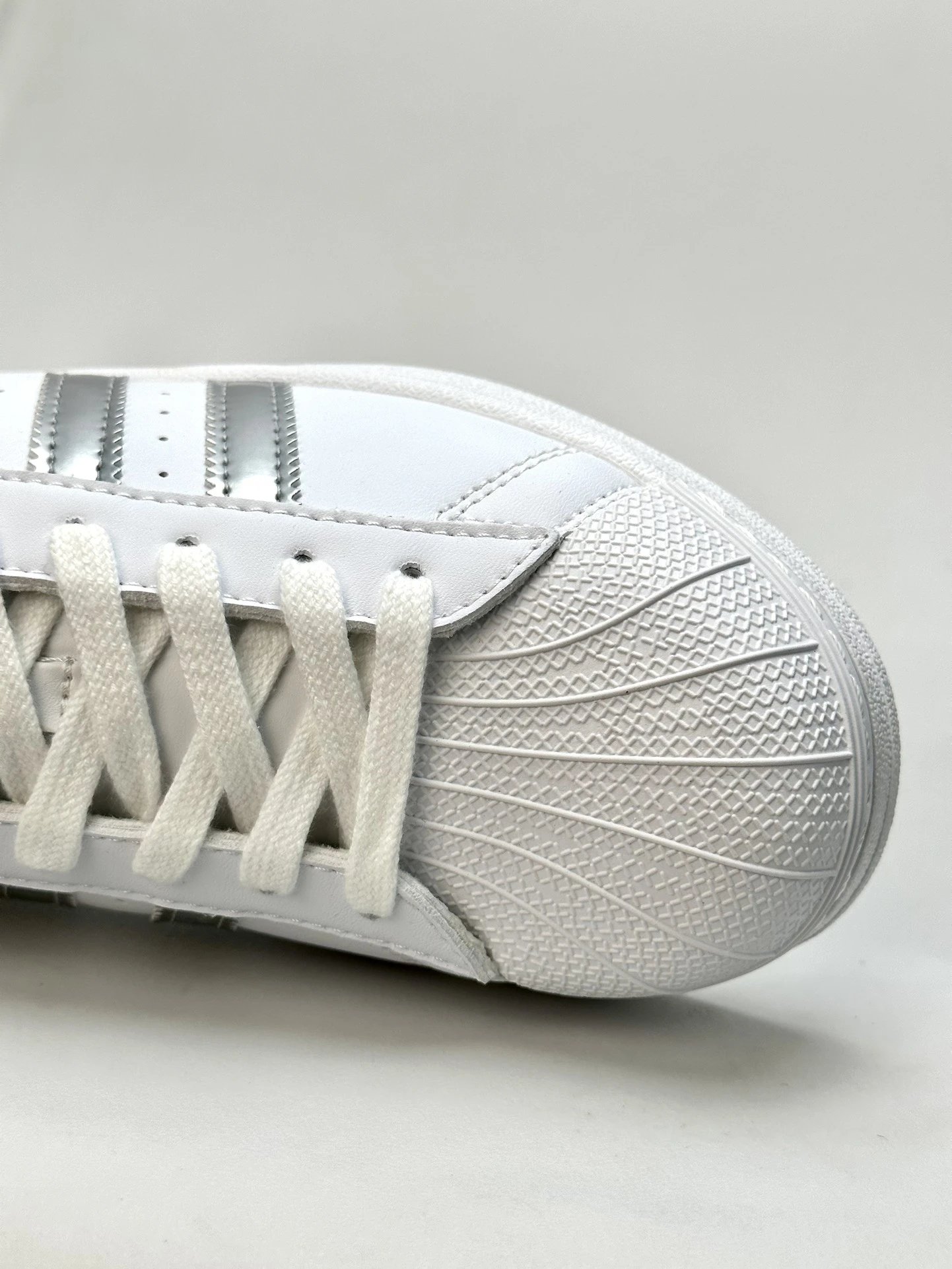 Adidas Superstar Original Gold Shell Toe sneakers: full-grain leather upper, authentic MD midsole, true shape, exceptional comfort.