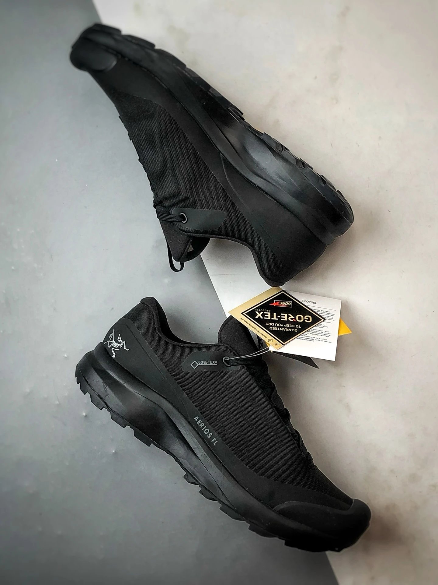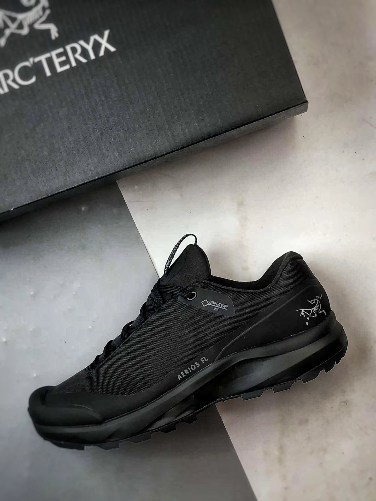 Arc'teryx Aerios GTX Black Silver Logo Hiking Shoes