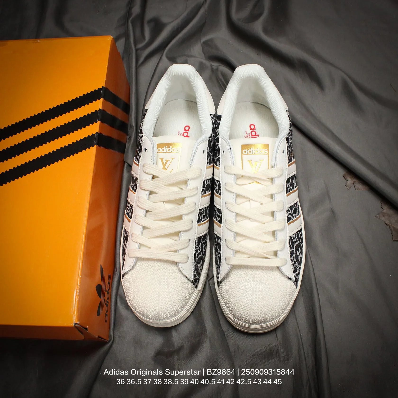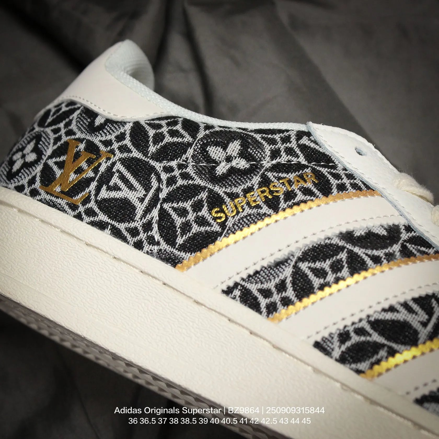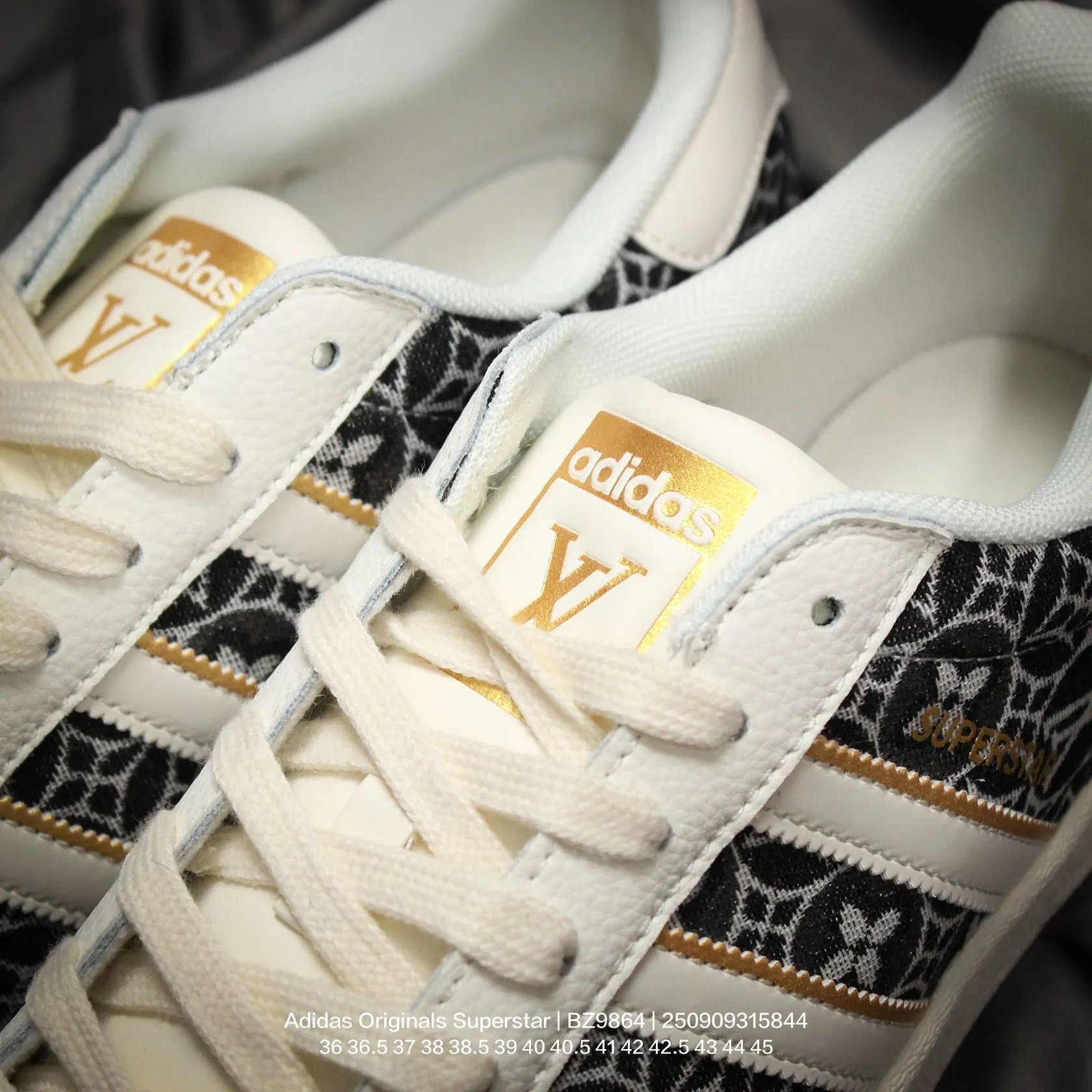 Adidas x Louis Vuitton Superstar "V Monogram" unisex casual sneakers use cow split leather upper.