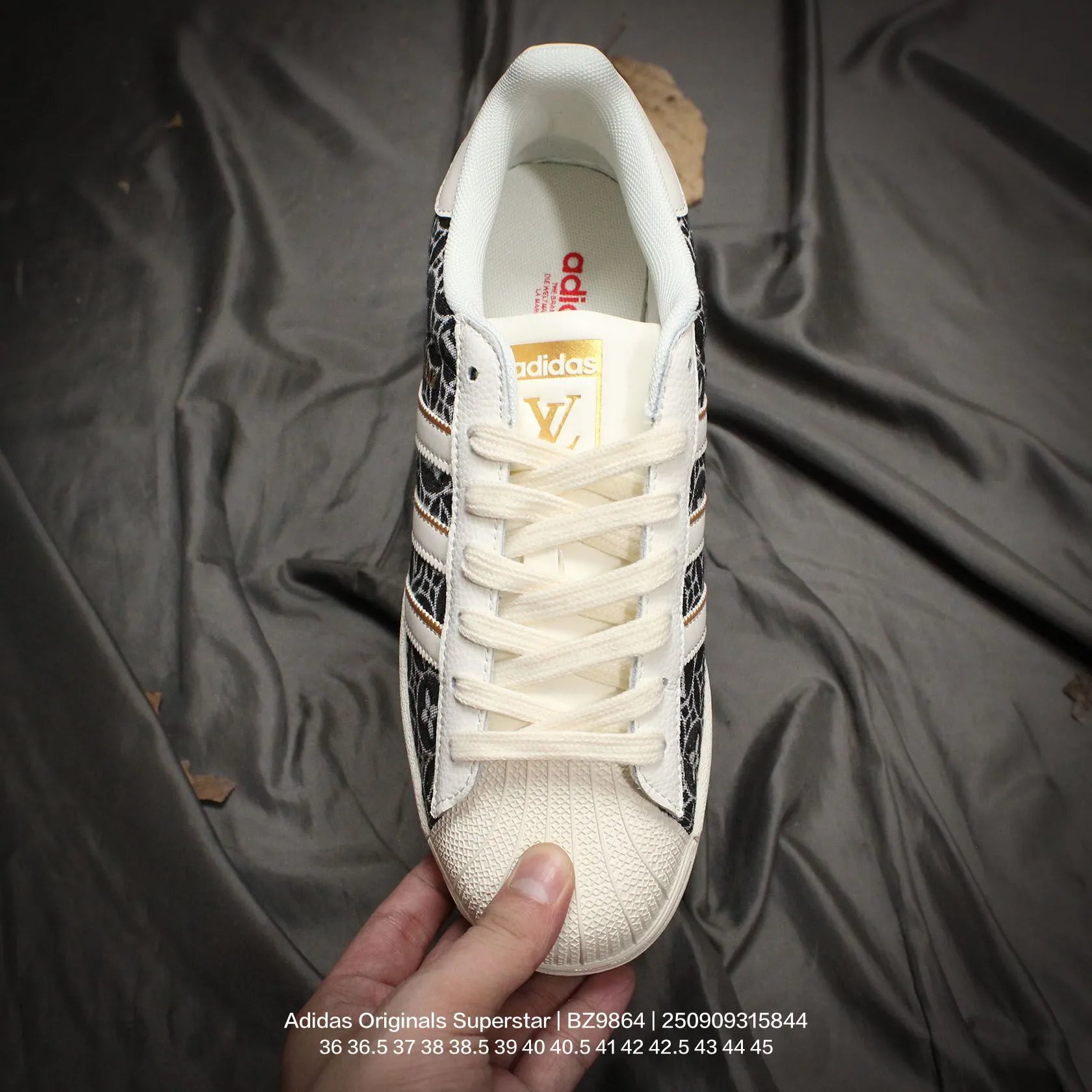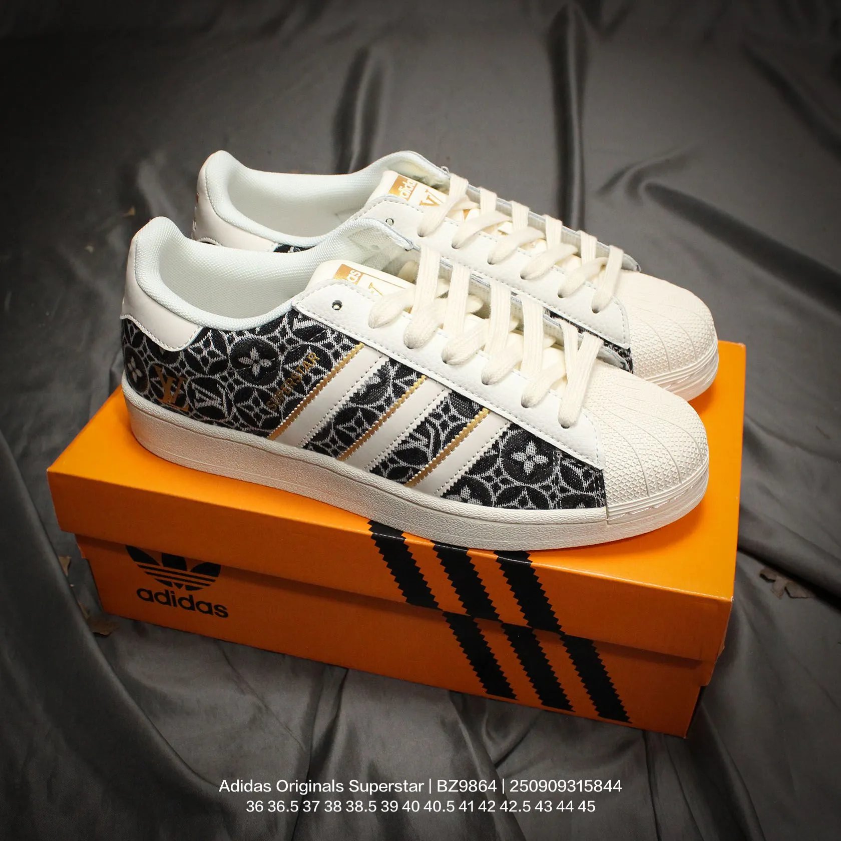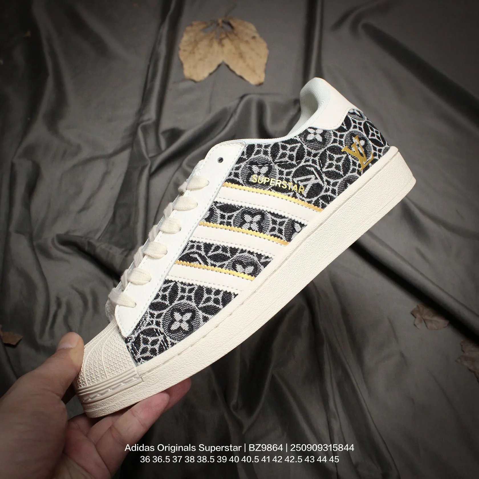 Adidas x Louis Vuitton Superstar "V Monogram" unisex casual sneakers use cow split leather upper.