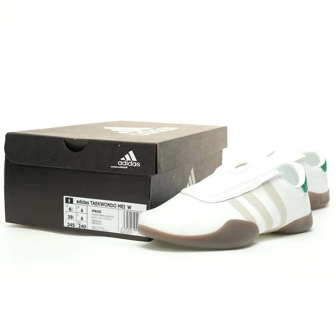 Adidas Taekwondo Mei Unisex Casual Sneakers use grained cowhide upper, RB rubber outsole, slip-on design for retro ballet style.