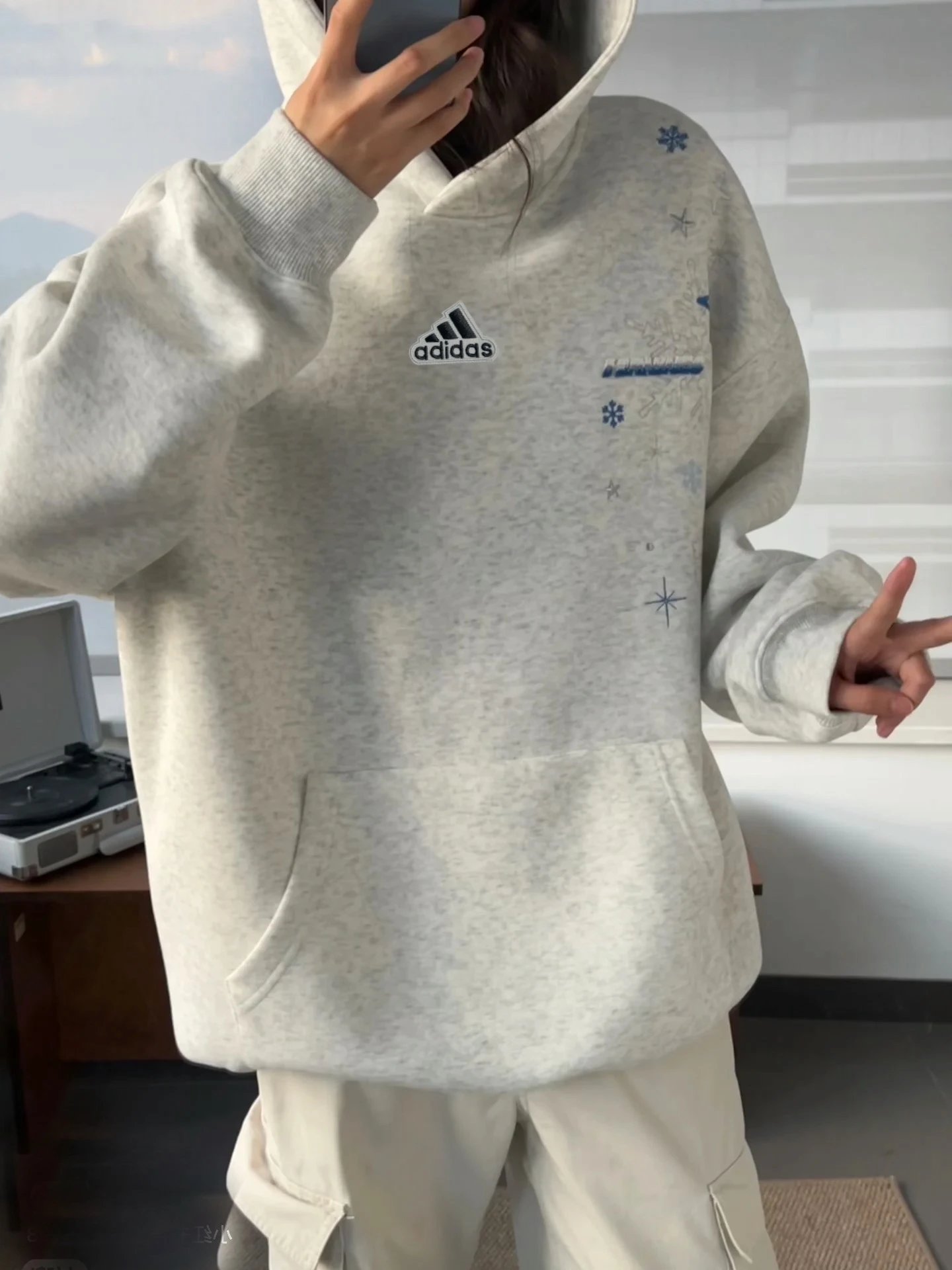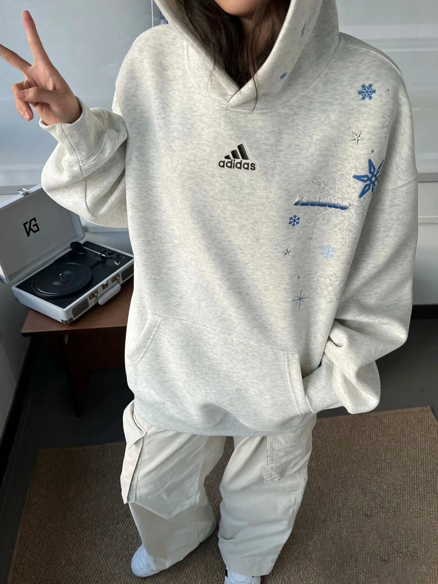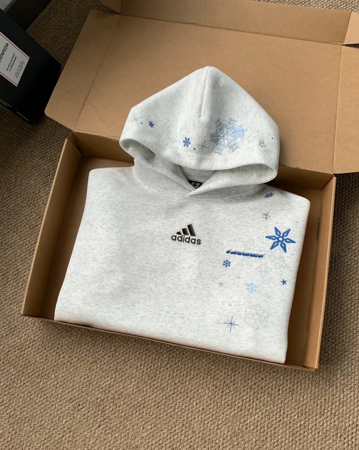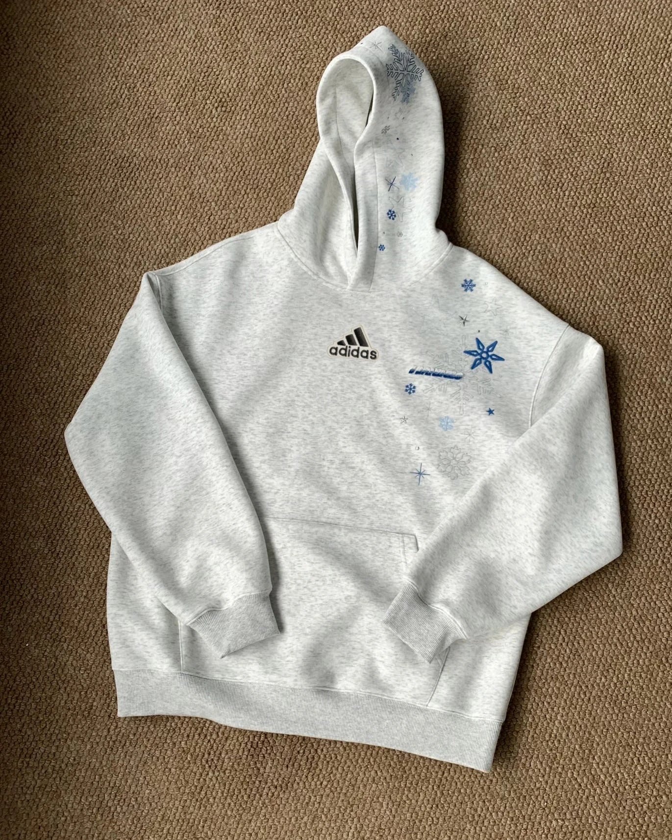 Adidas Snowflake Embroidered Unisex Hoodie: Heavyweight sweatshirt for couples, ideal for fall.