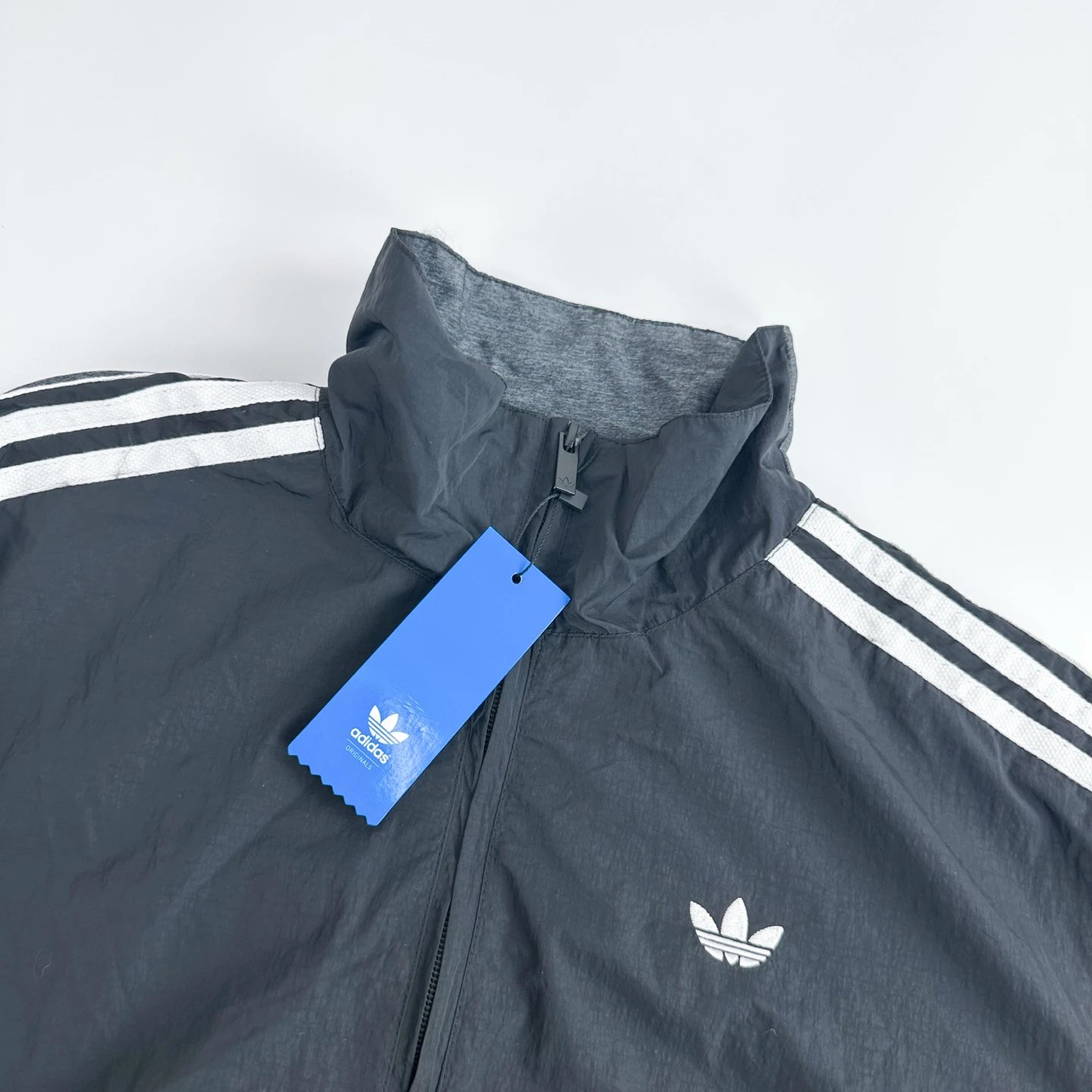 Adidas SS25 Striped Unisex Sports Jersey features black & gray color, classic 3-stripe design, embroidered logo.