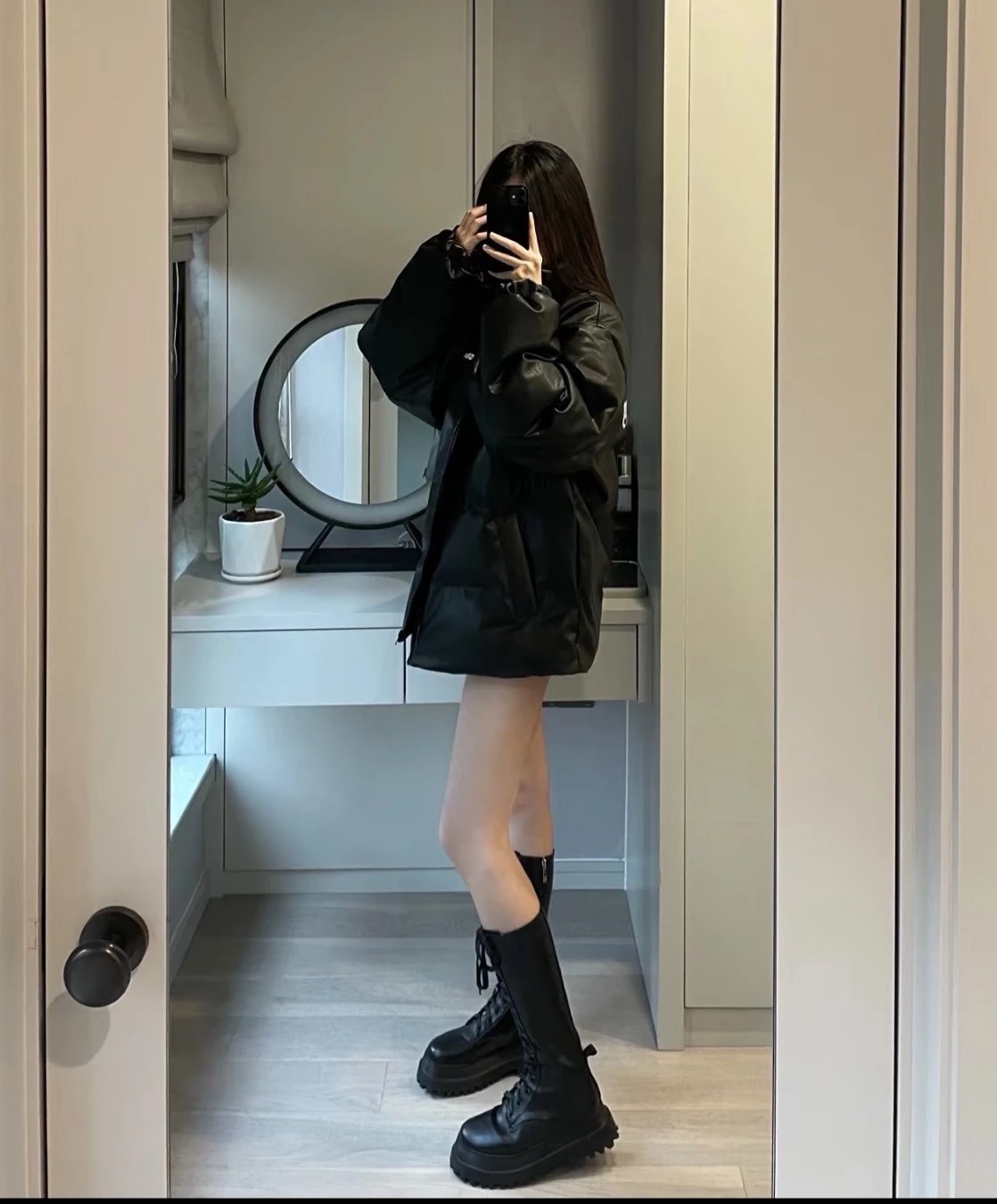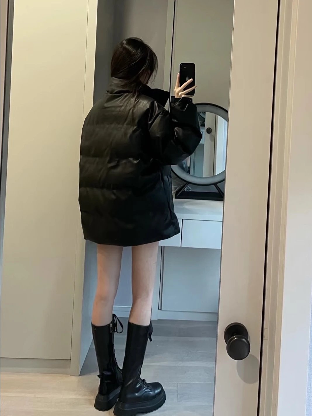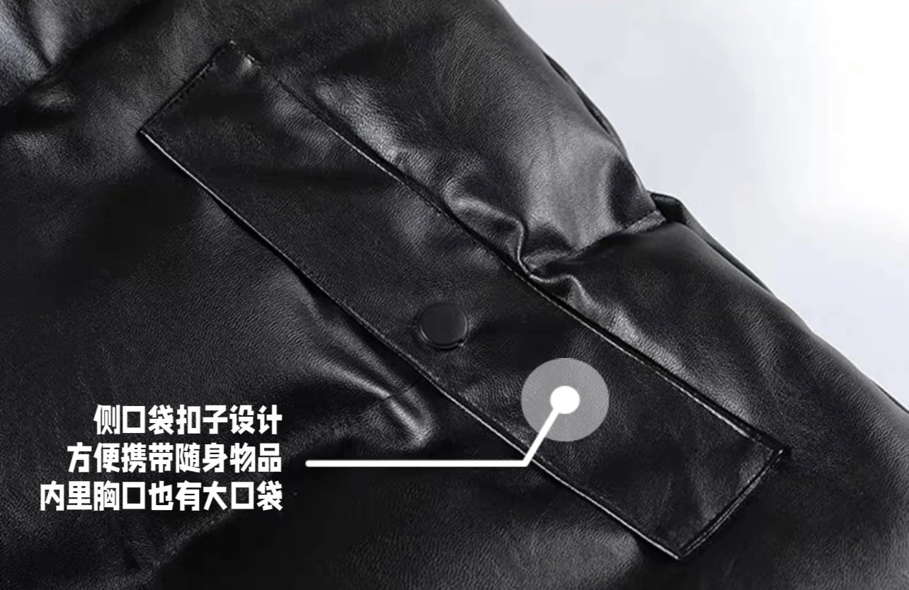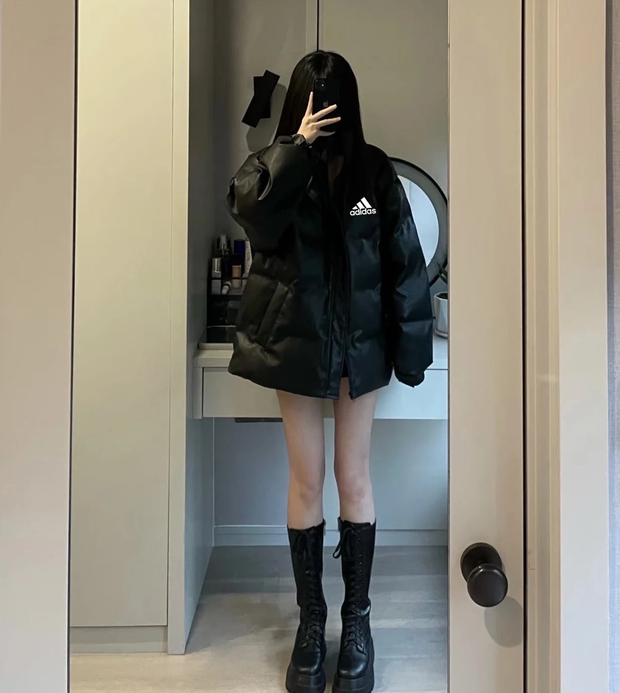 Adidas Premium Black PU Leather Unisex Winter Puffer Jacket is from the high-end leather series.