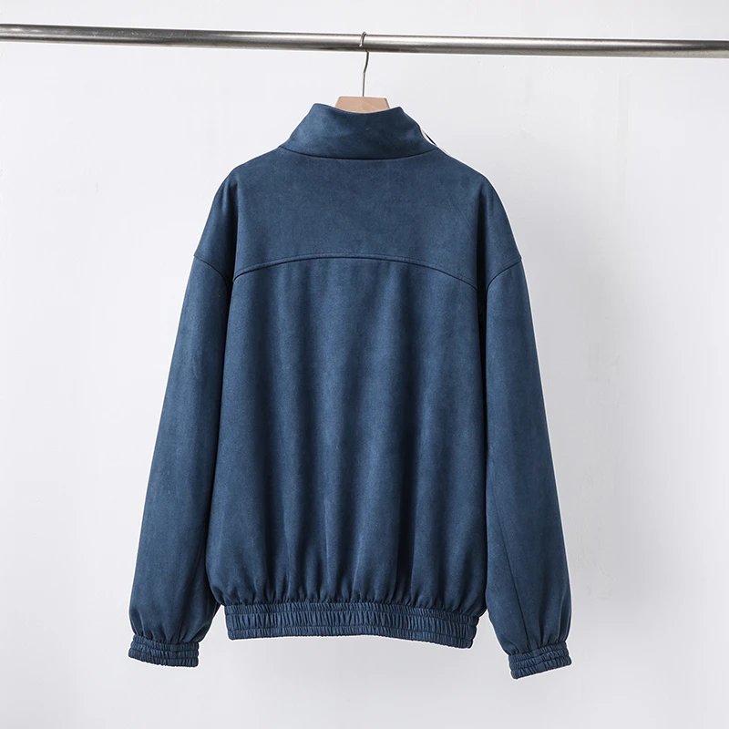 4 colors: navy, off-white, soft red, brown; soft suede, loose stretch fit