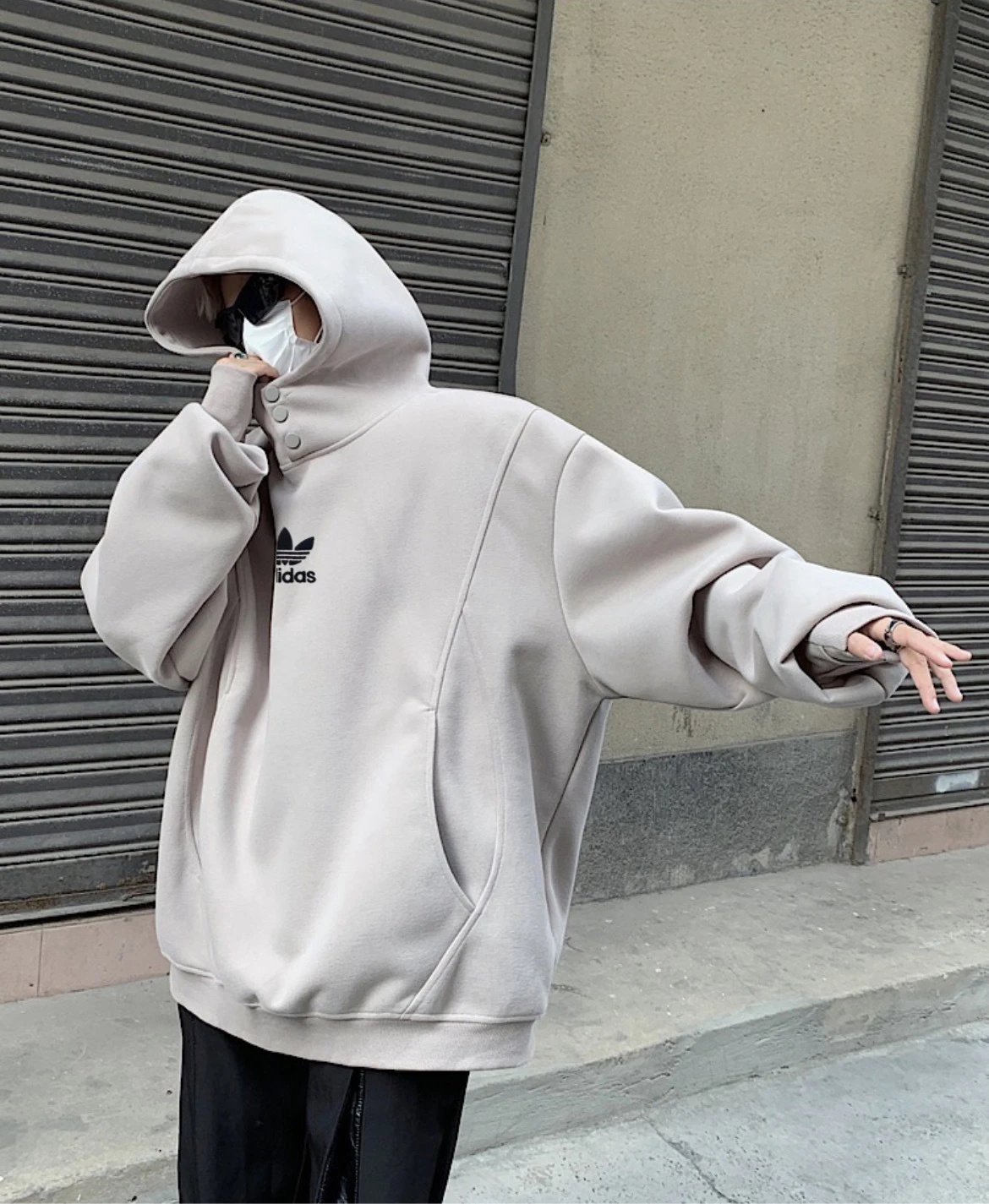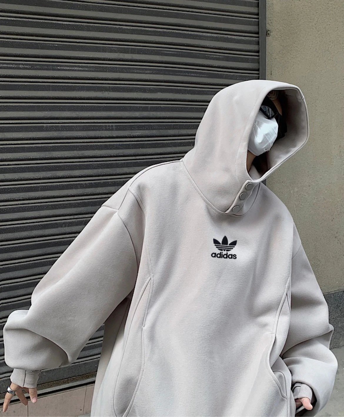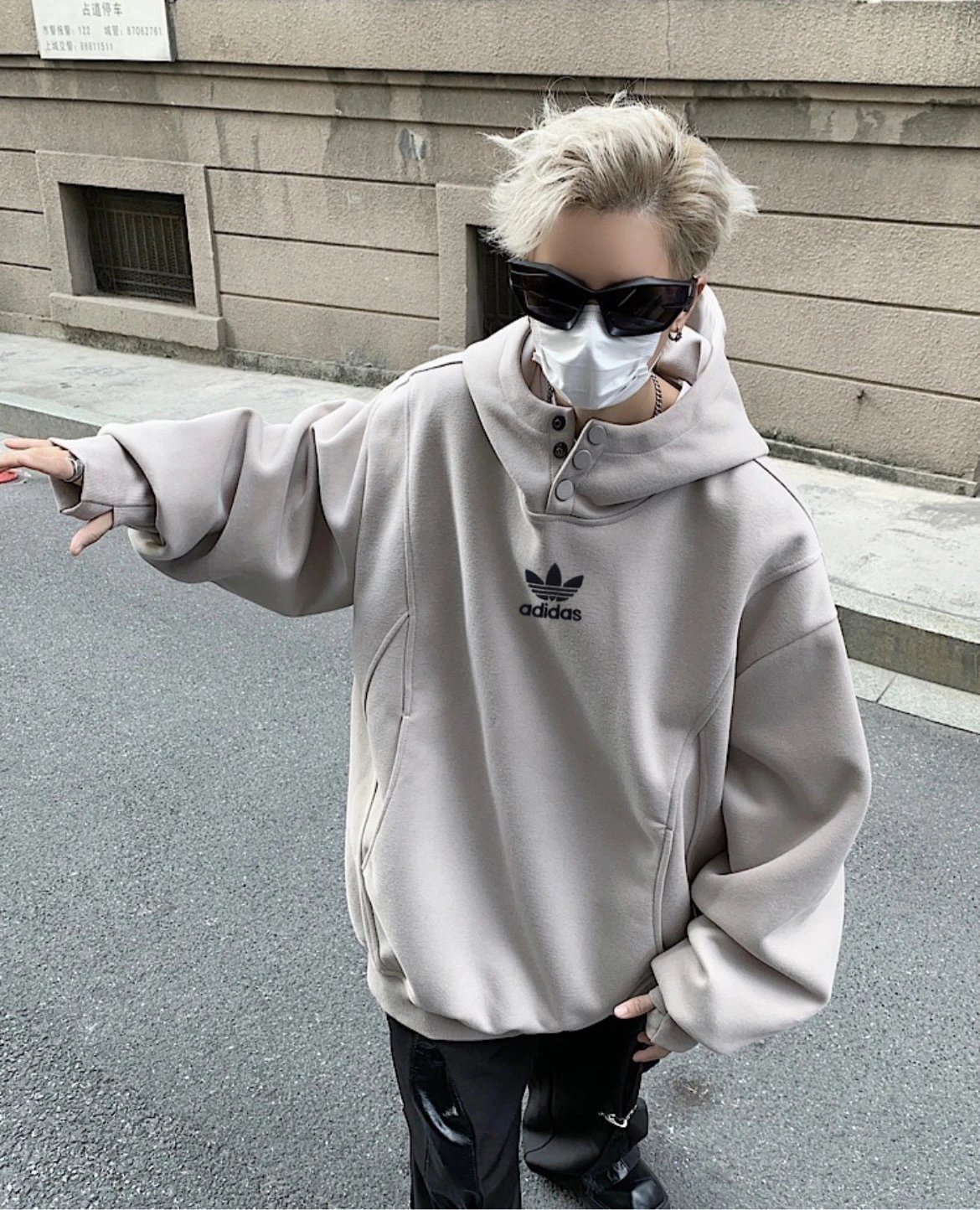 Adidas Unisex High Neck Button Hooded Sweatshirt uses heavy cotton fabric, soft, non-pilling, and breathable.