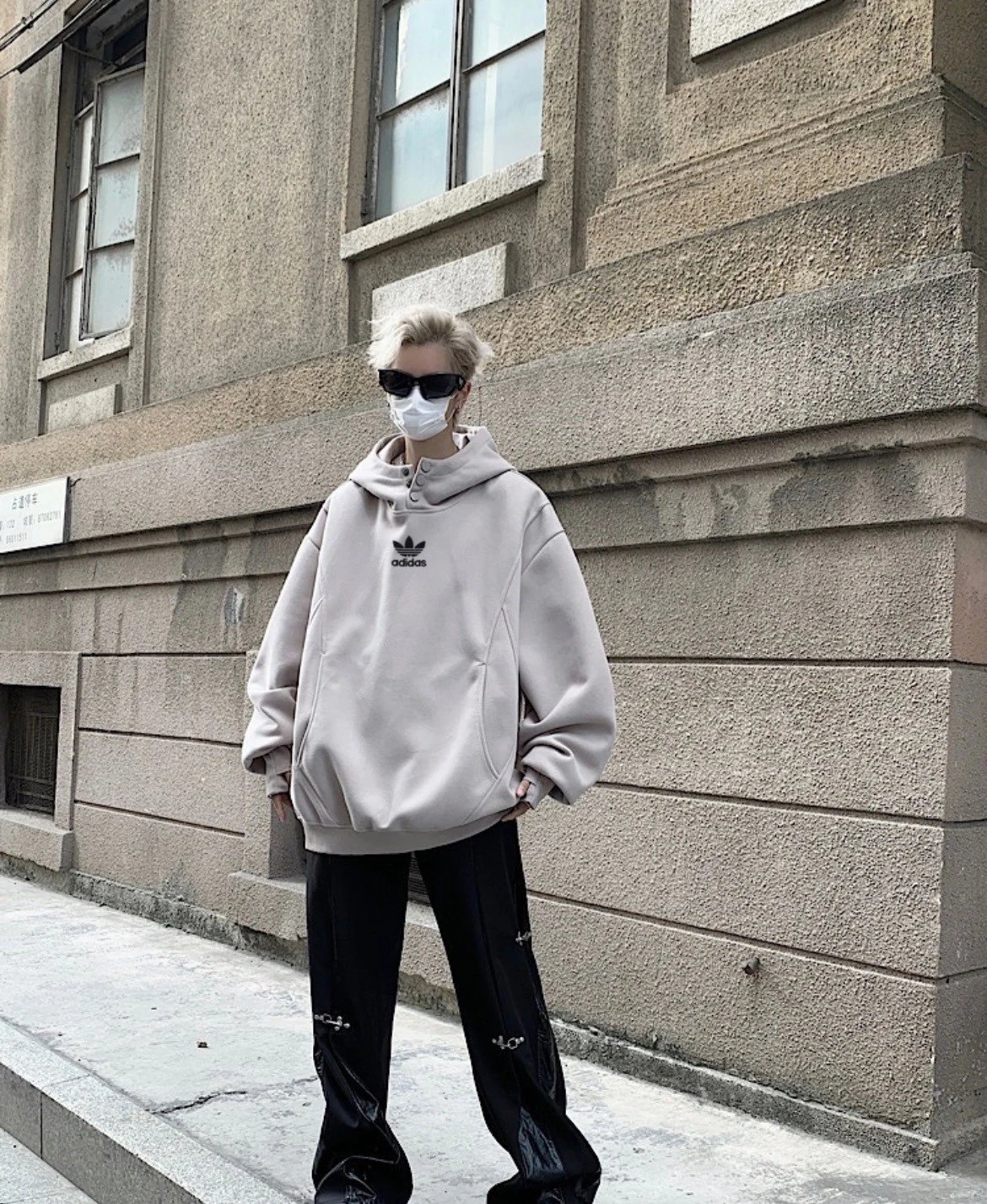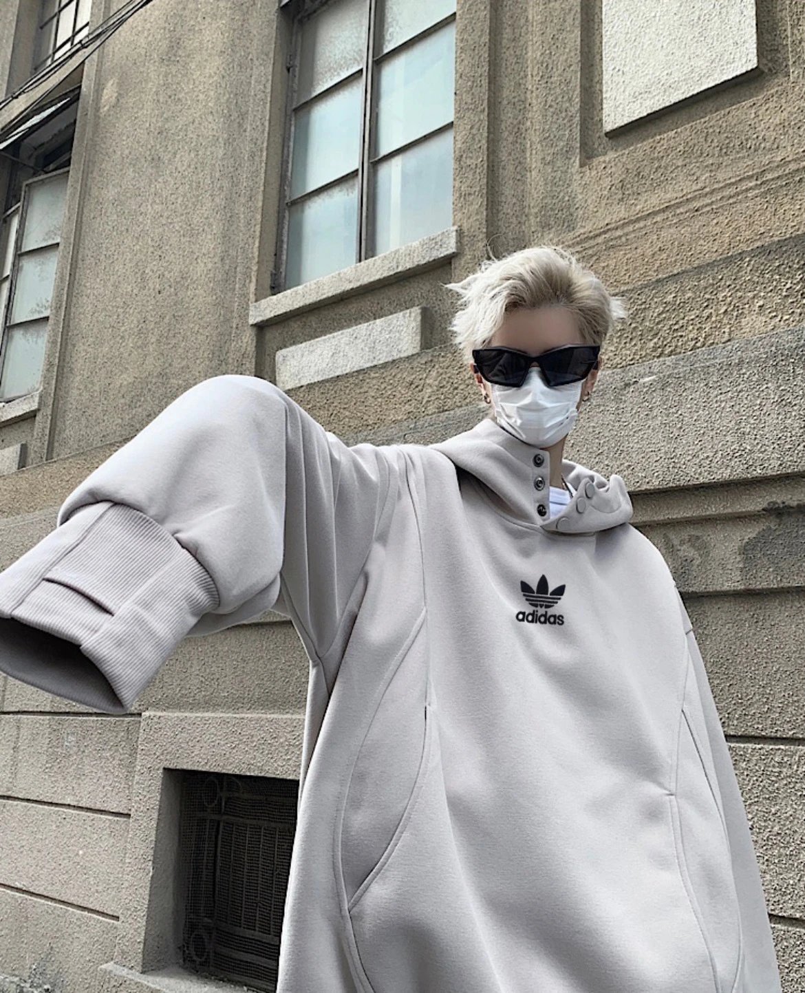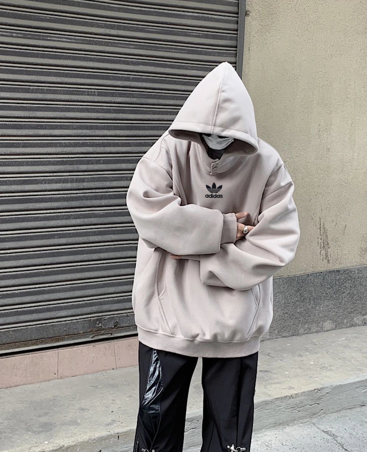 Adidas Unisex High Neck Button Hooded Sweatshirt uses heavy cotton fabric, soft, non-pilling, and breathable.