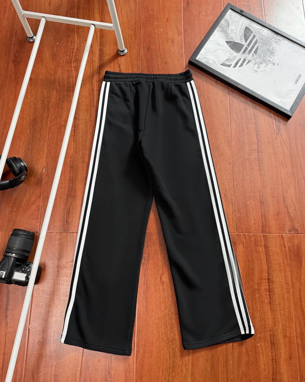 Adidas 2025 new unisex micro-elastic straight wide-leg pants, cotton terry fabric, versatile & comfortable.