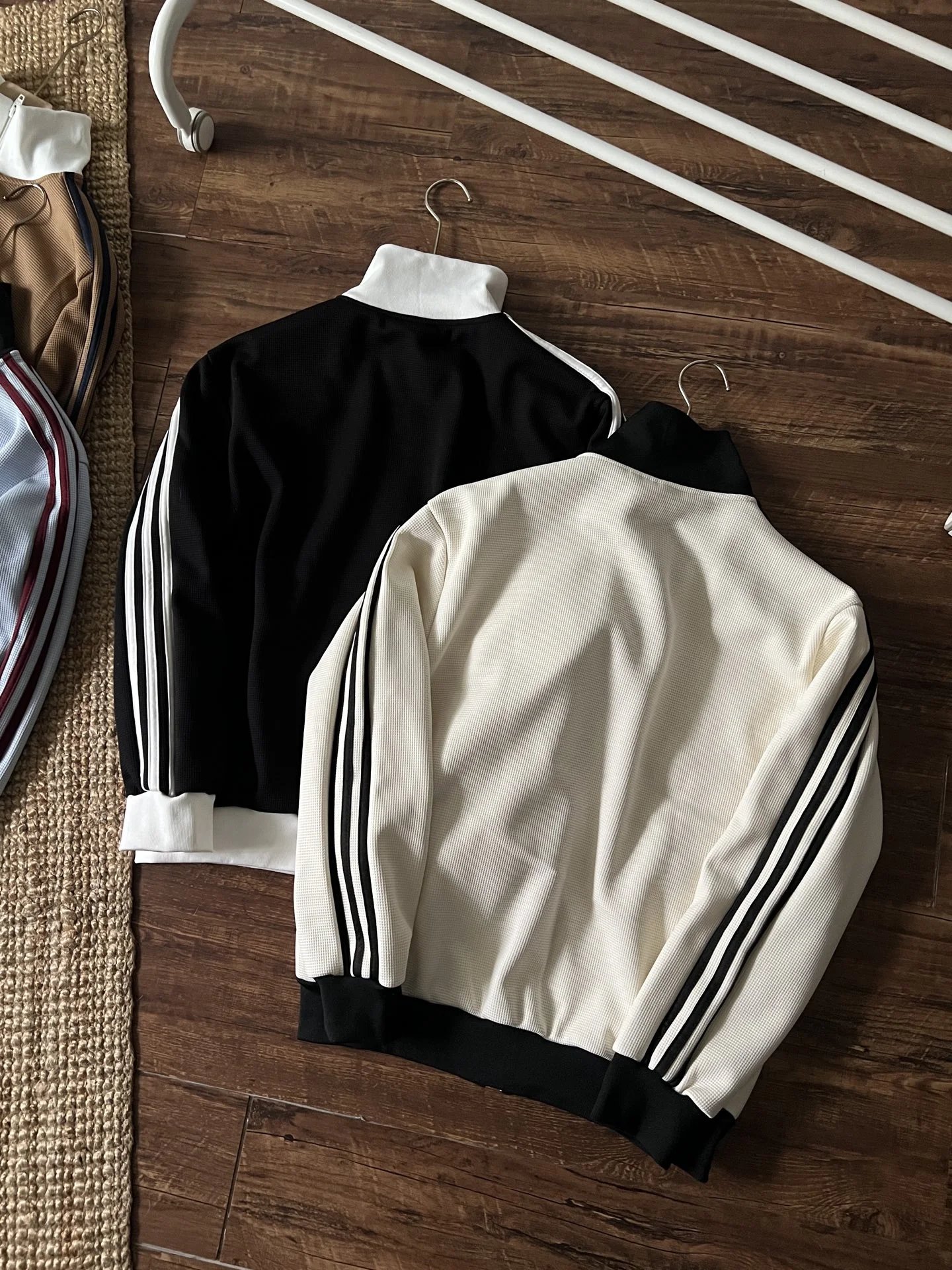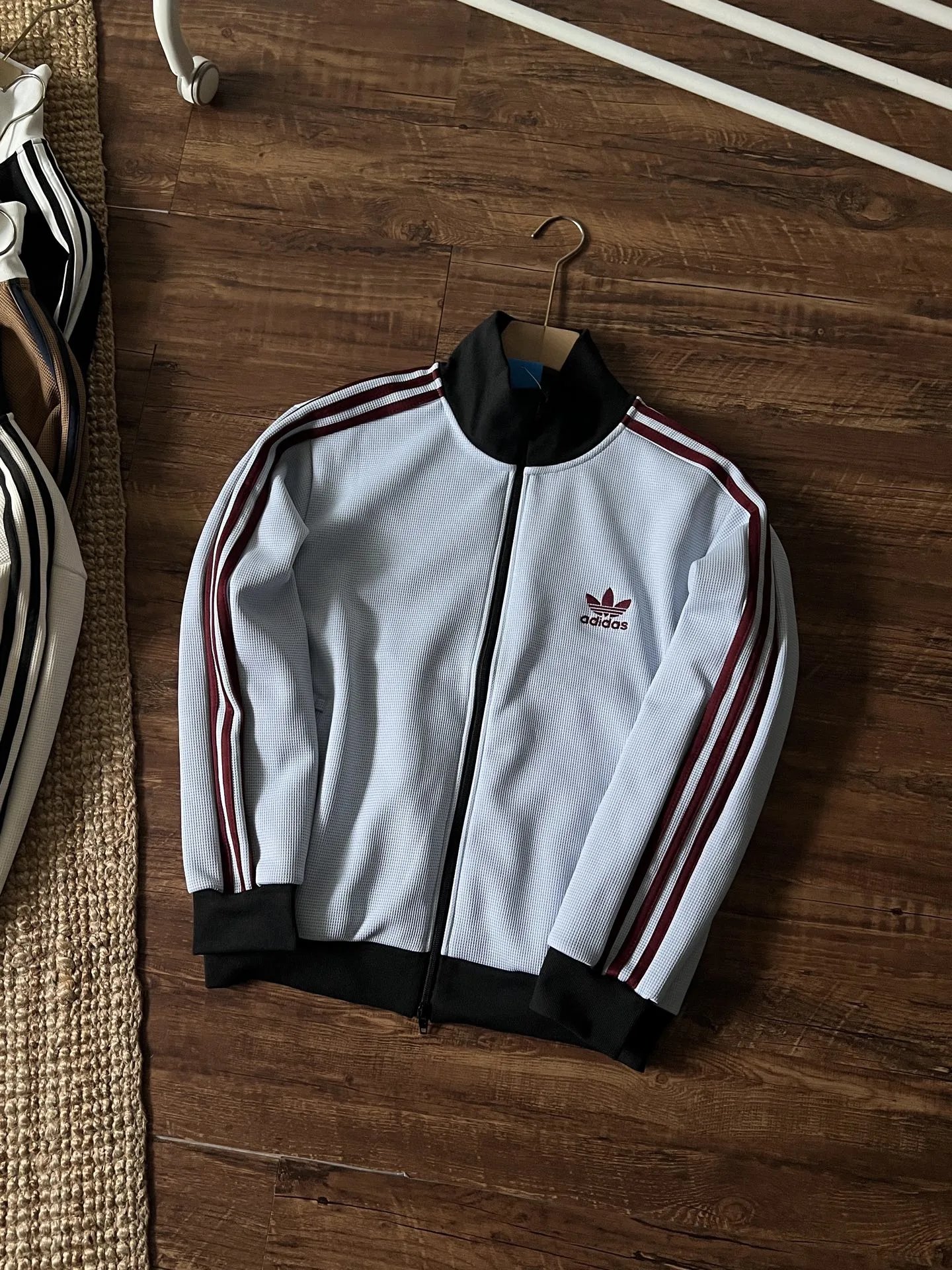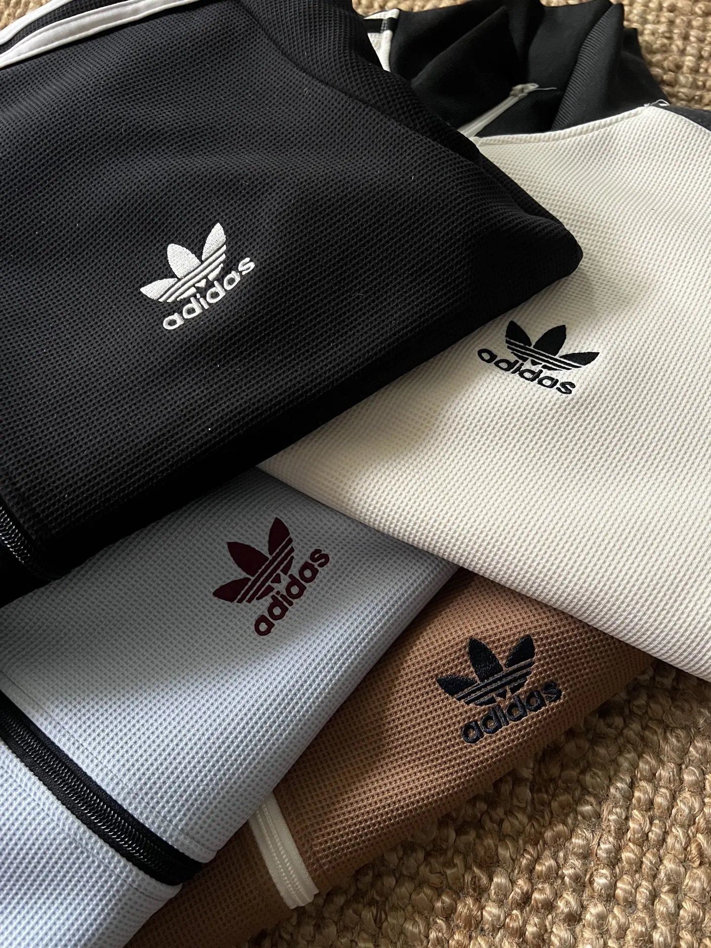 Adidas Waffle Knit Fleece Jacket: Unisex couple style for winter, soft fleece lining locks warmth without bulk.