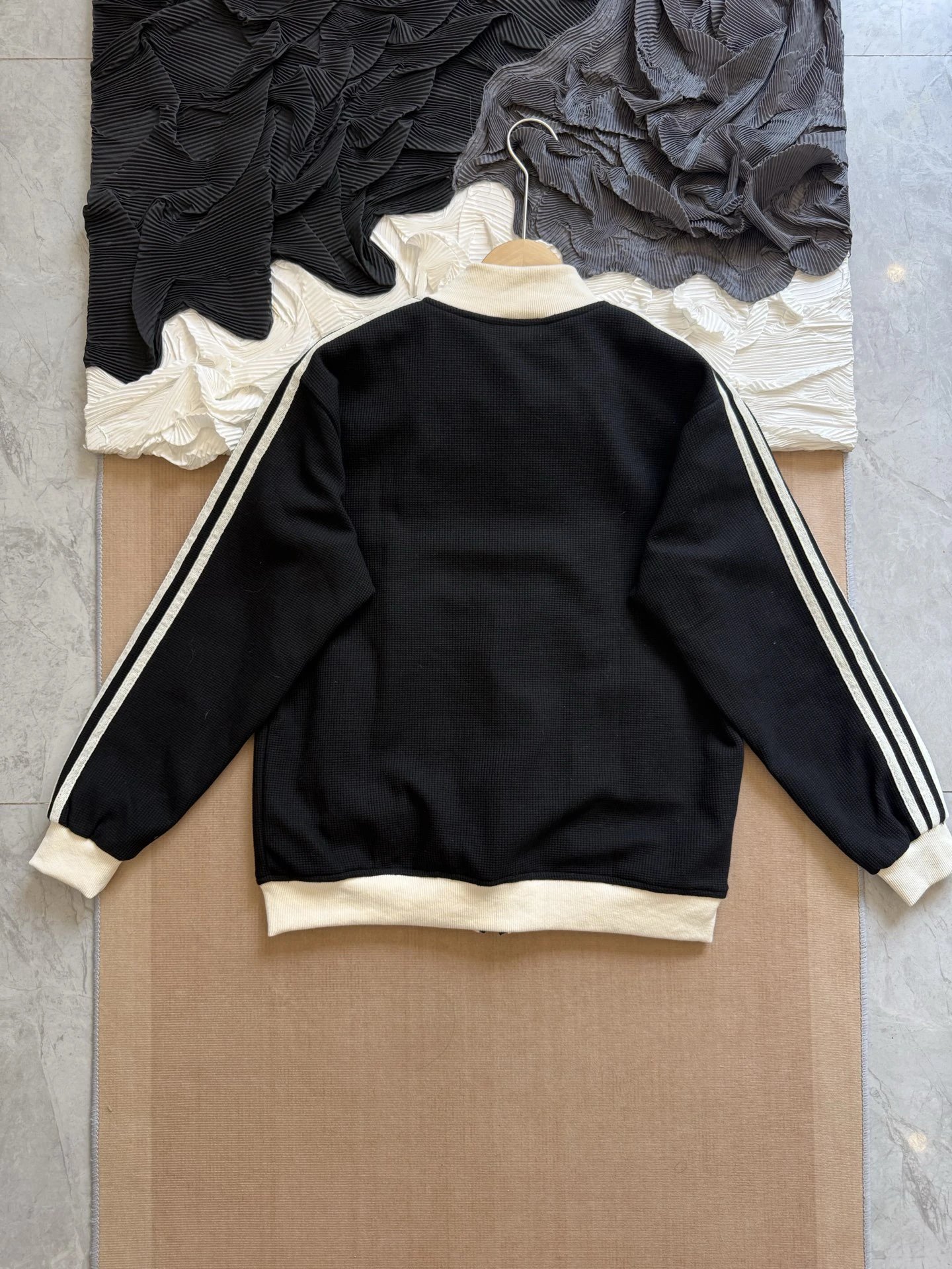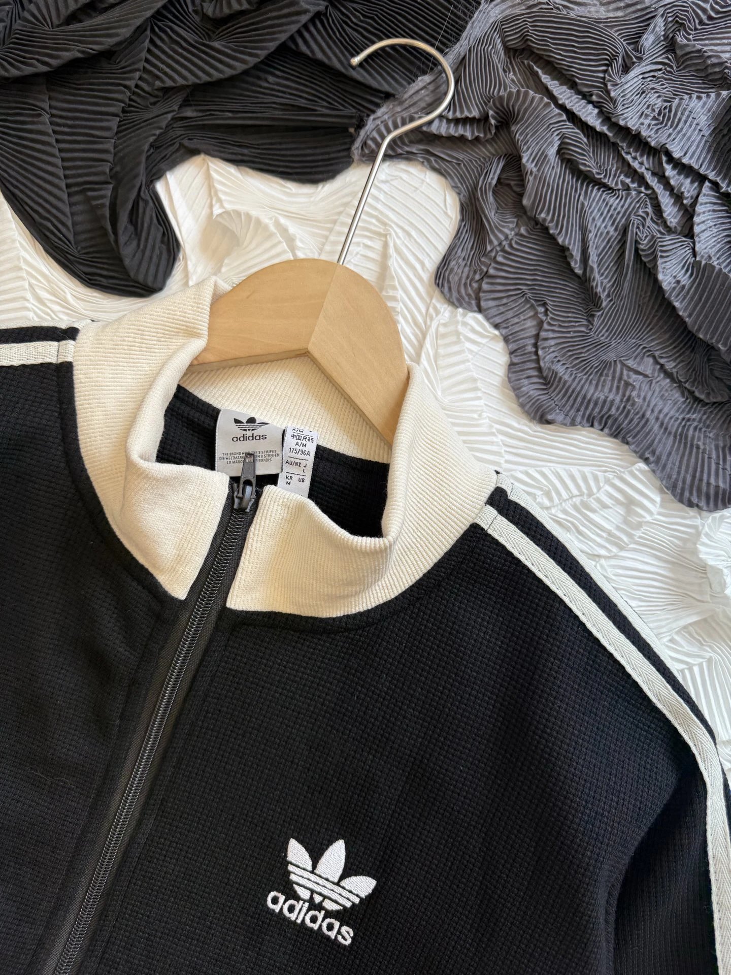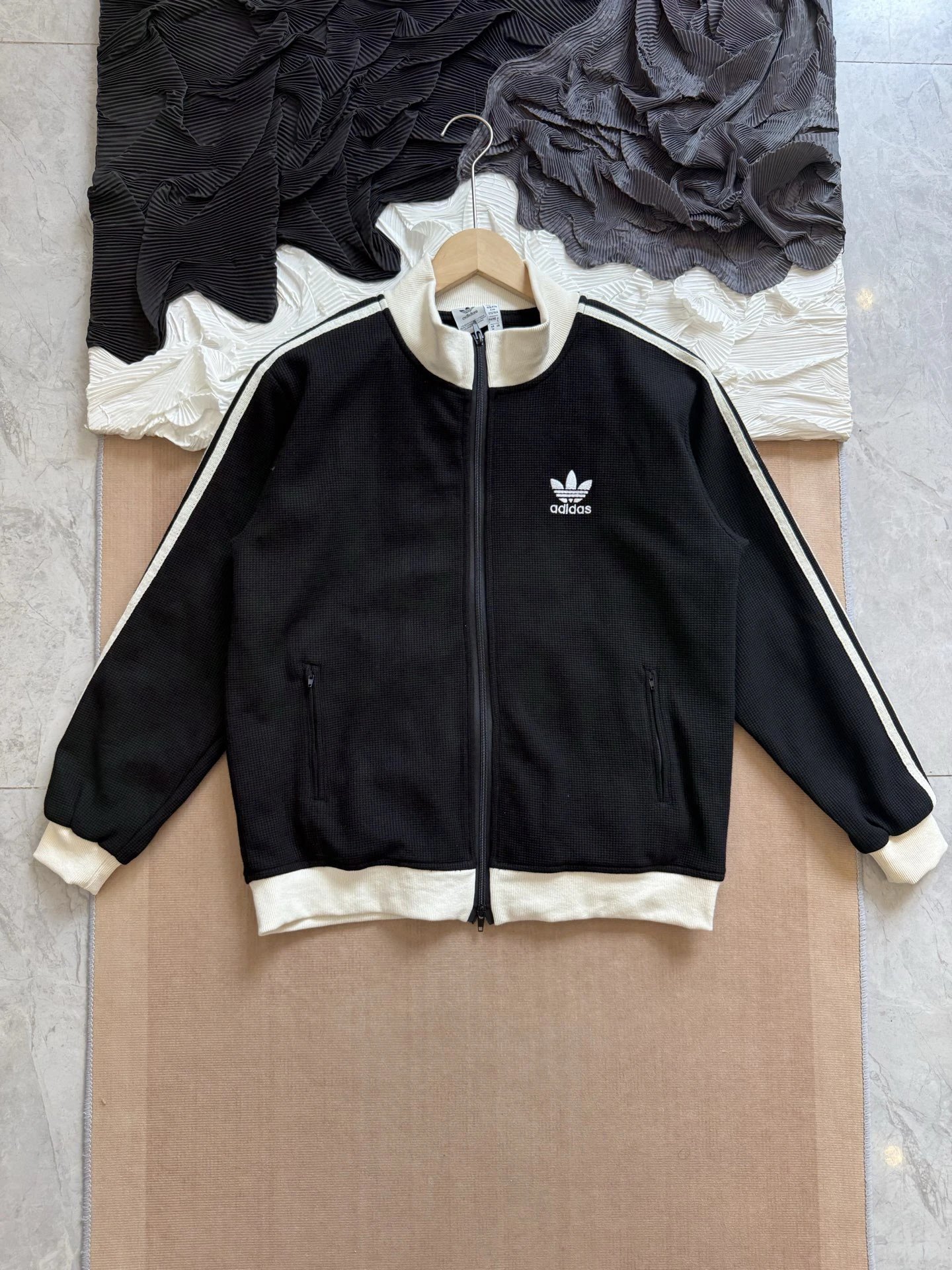 Adidas Classic 3-Stripes Waffle Jacket uses custom waffle fabric with exclusive dyeing, structured yet comfortable.