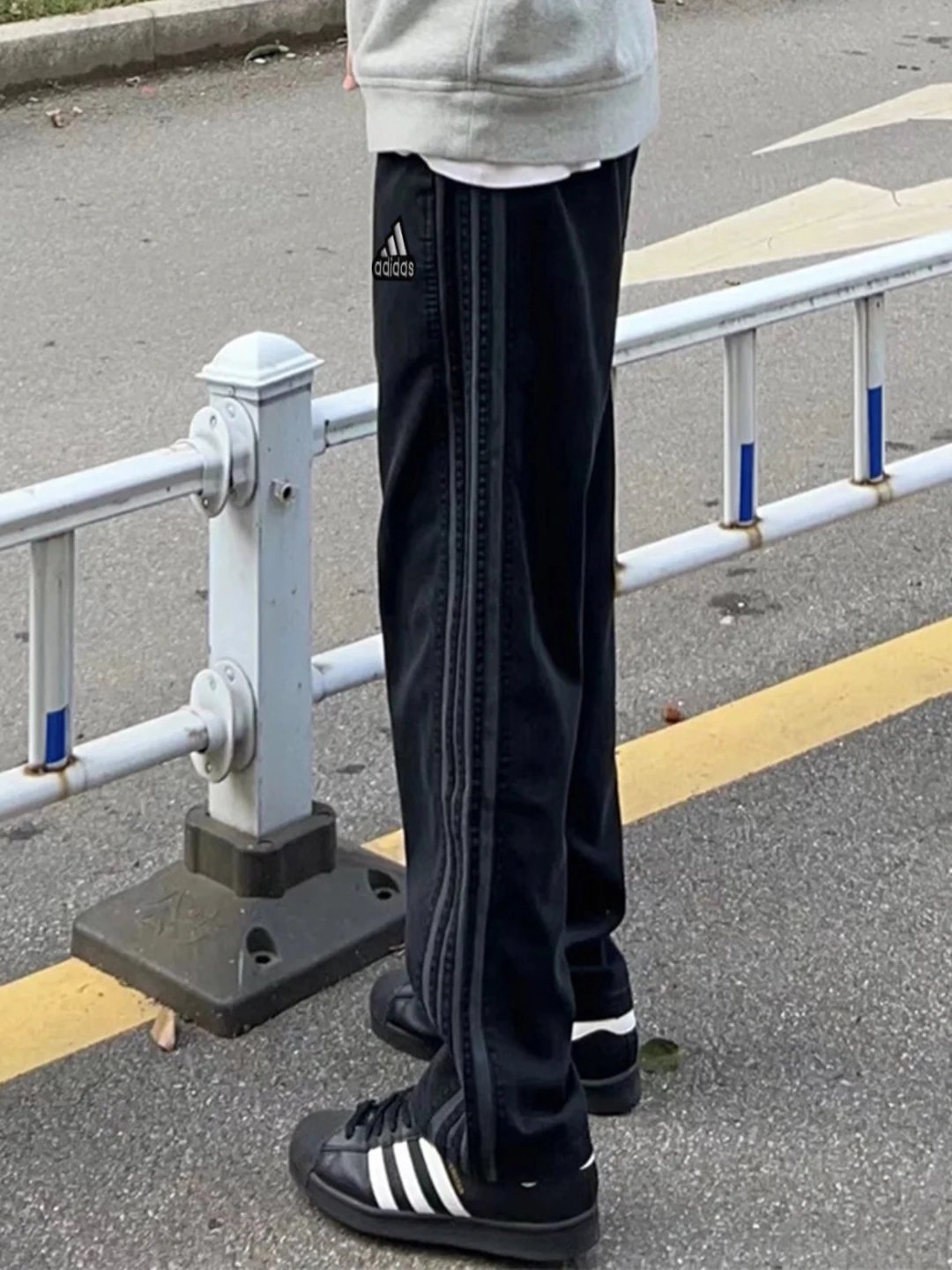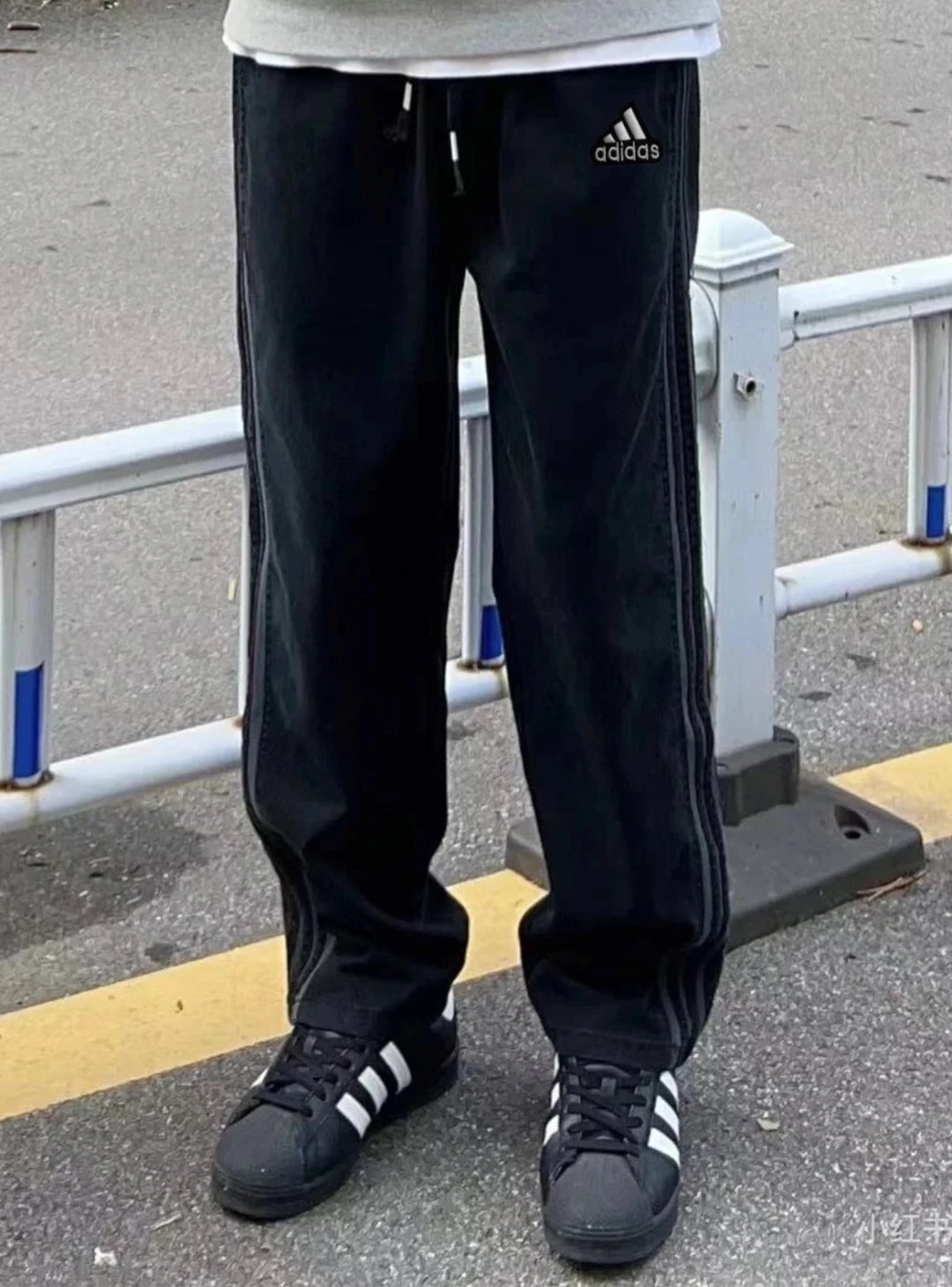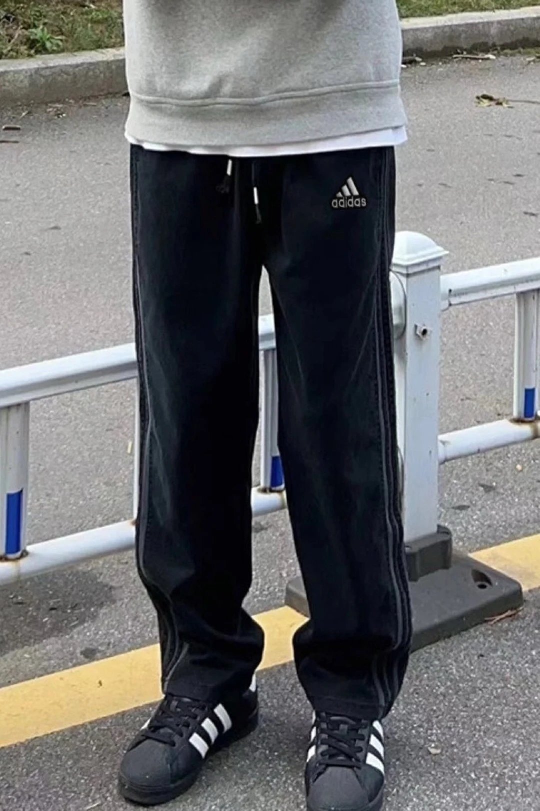 Adidas Gray Three Stripes Unisex Summer Quick-Dry Loose Sports Pants, antibacterial & machine washable.
