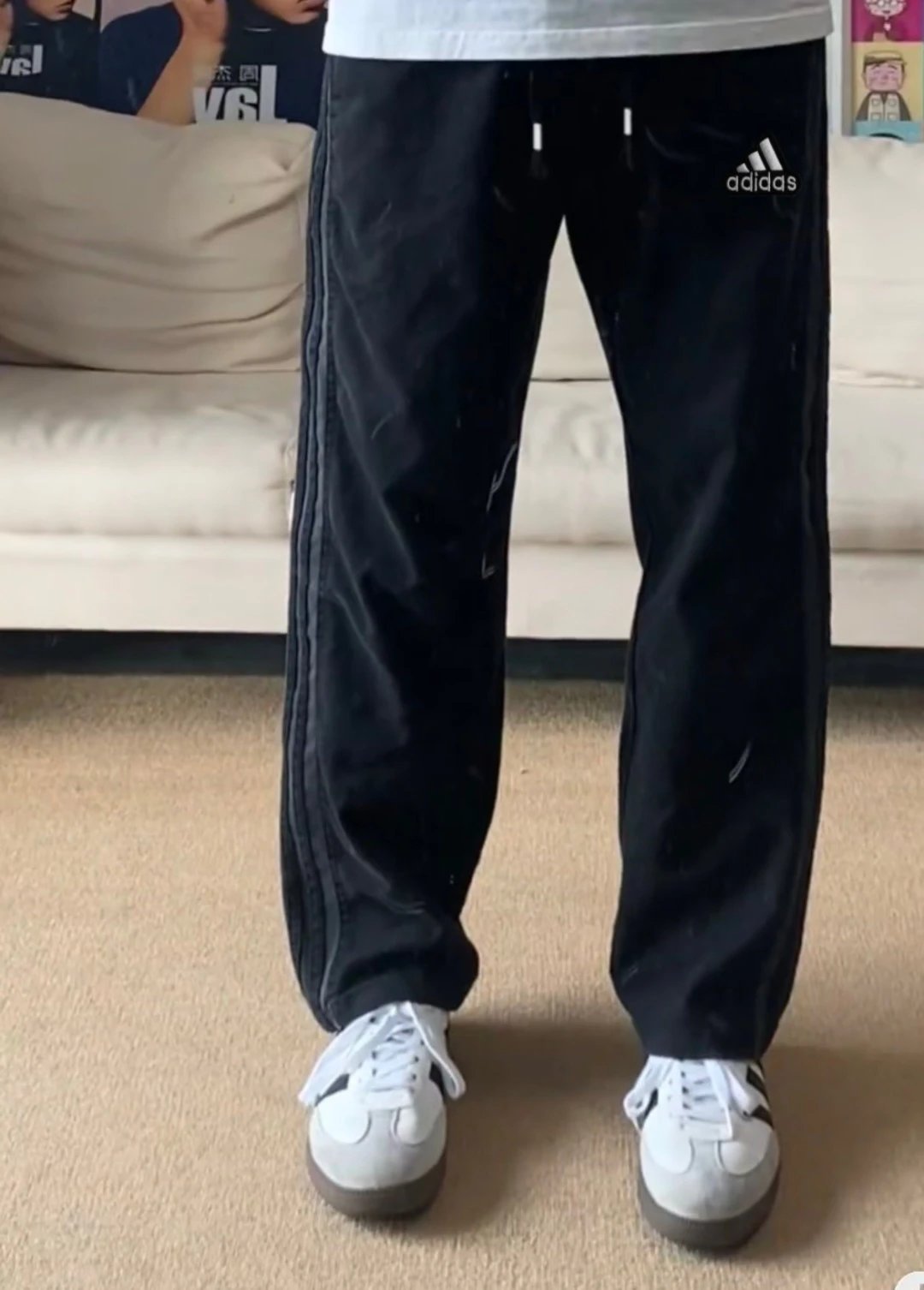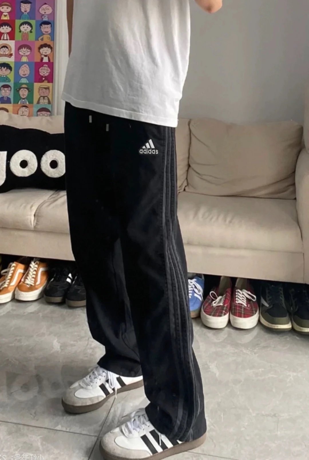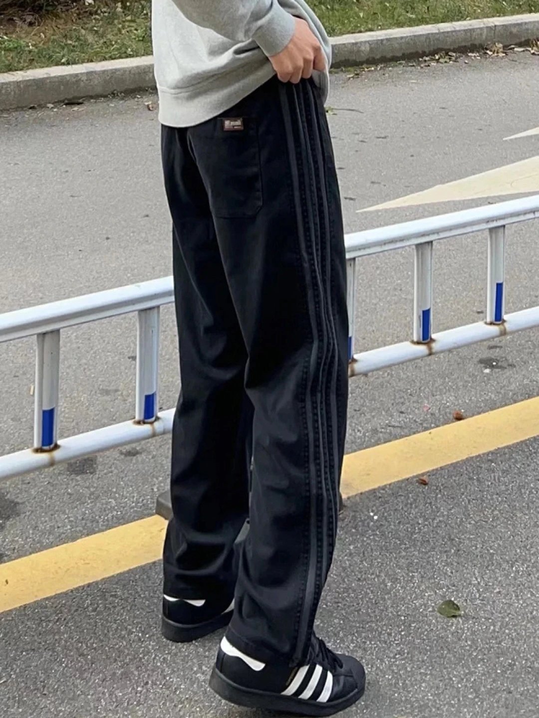 Adidas Gray Three Stripes Unisex Summer Quick-Dry Loose Sports Pants, antibacterial & machine washable.