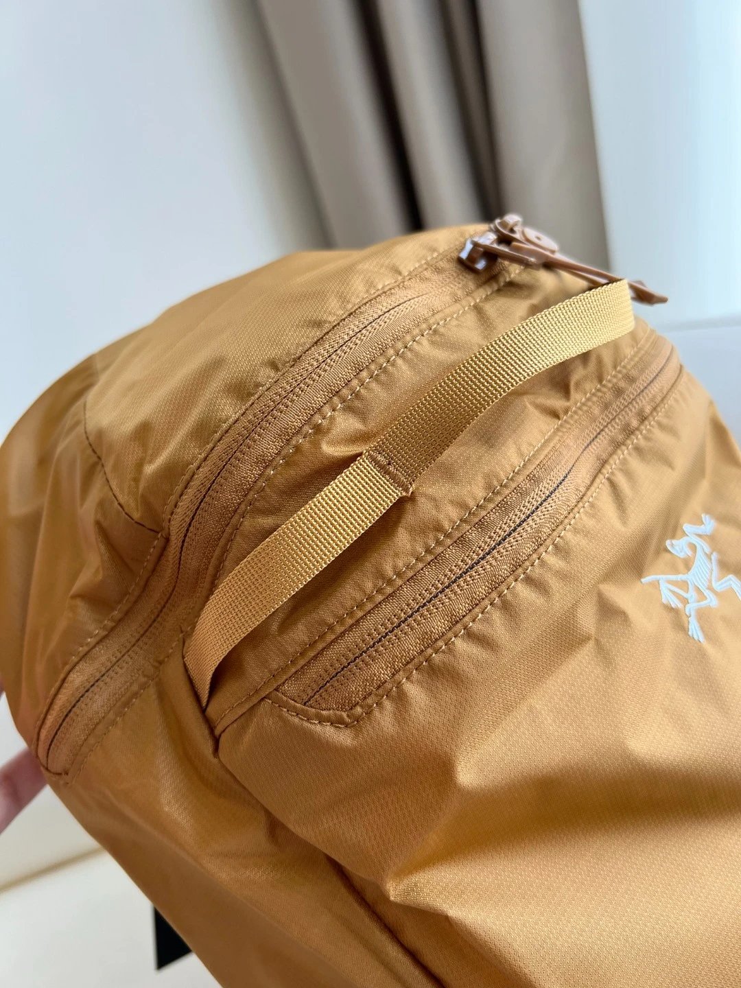 Arc'teryx 15L backpack uses small grid ripstop nylon fabric, lightweight & durable.