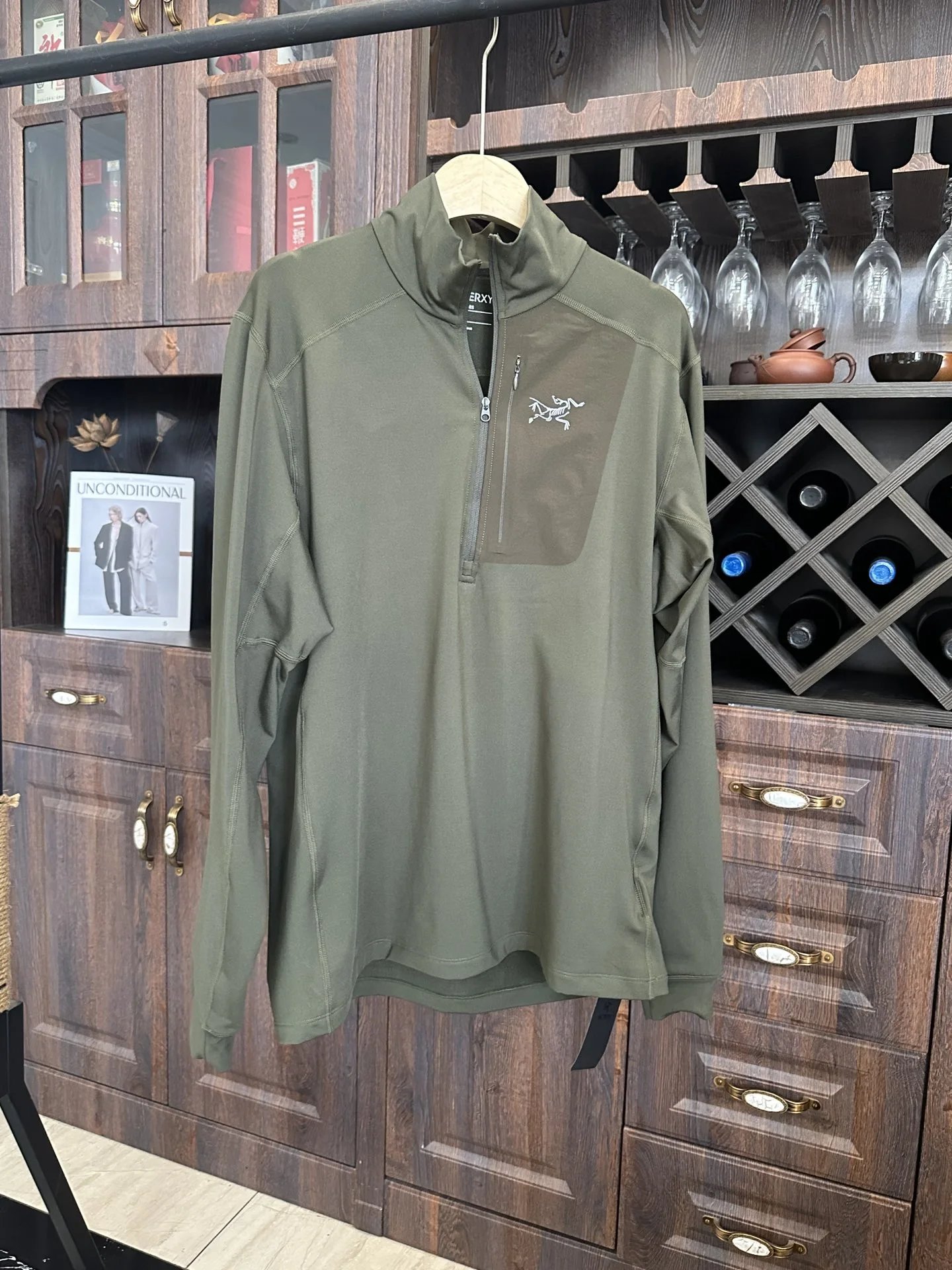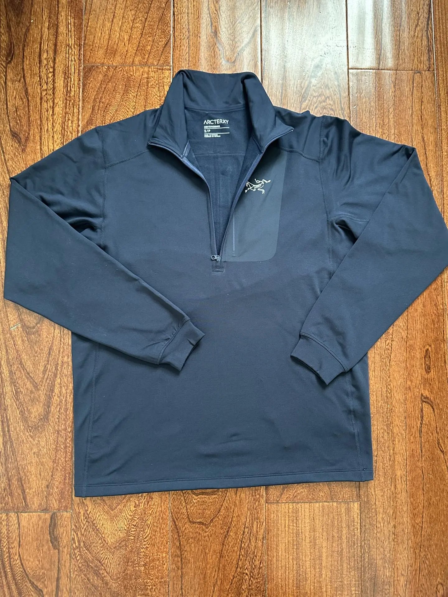 Arc'teryx RHO LT Zip Men's Fleece Sweatshirt features stand collar, half-zip & logo print.