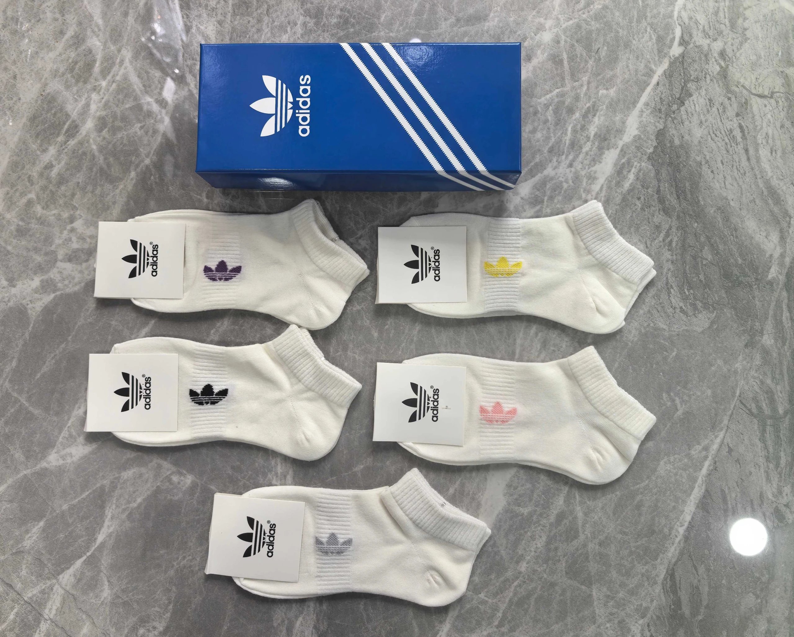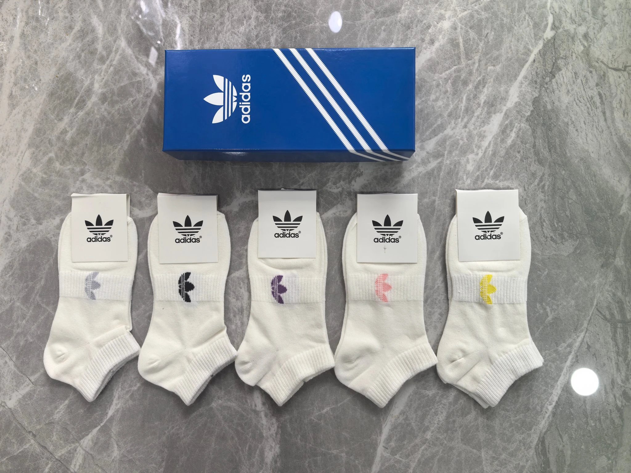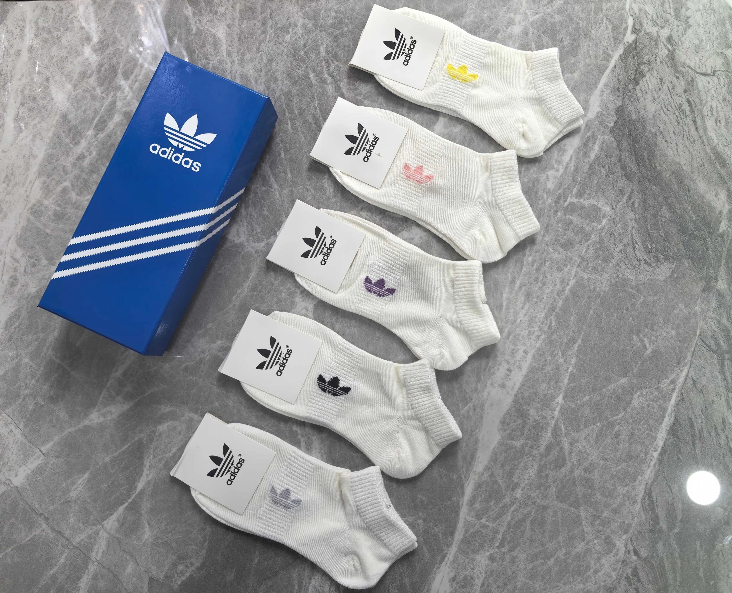 Adidas Official Same Style 5-Pack Cotton Socks, Popular Trendy & Versatile, Comfortable & Breathable for All-Day Wear.