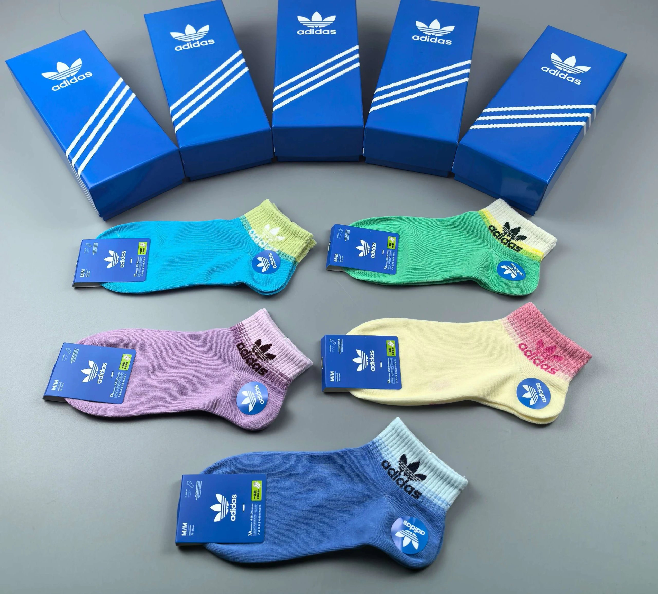Adidas Official Style Cotton Socks, popular trendy design, breathable & comfortable, 5 pairs per pack.