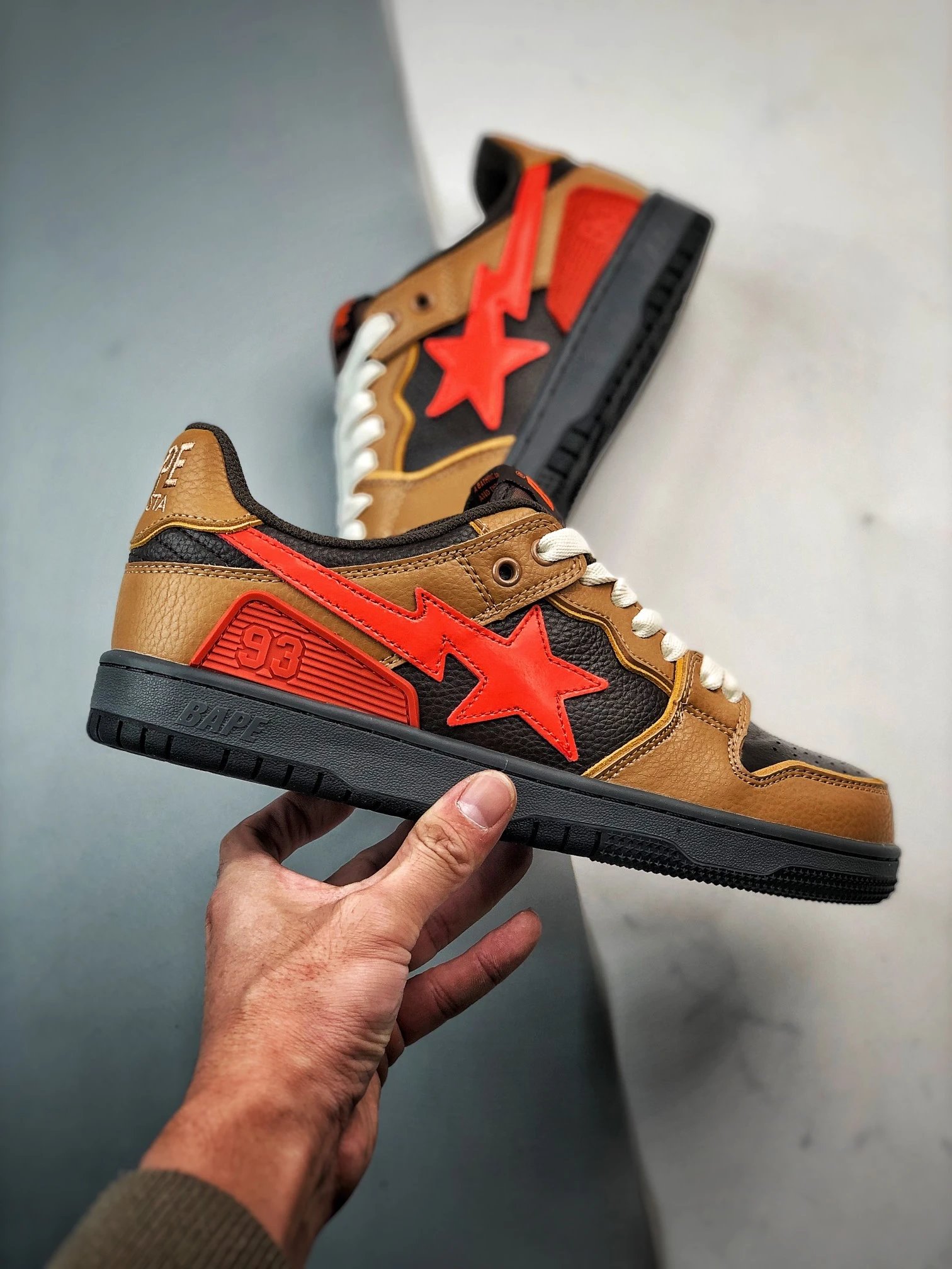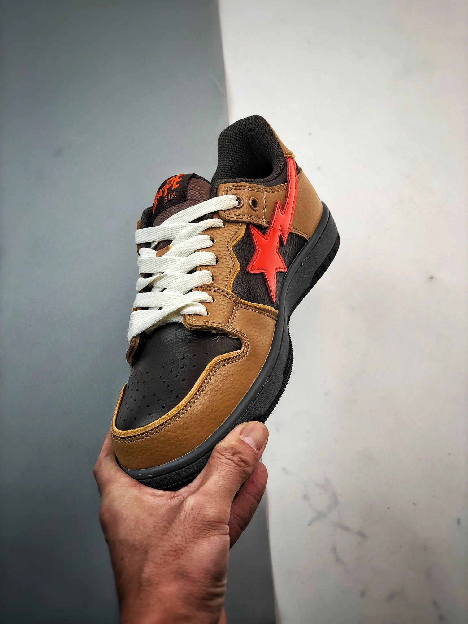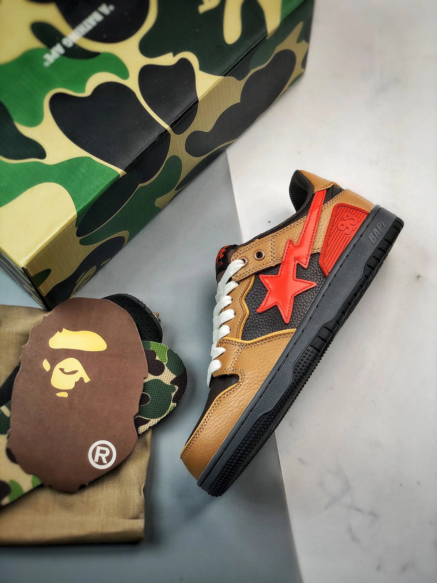 BAPE Sk8 Sta Low is a low-top skate shoe.
