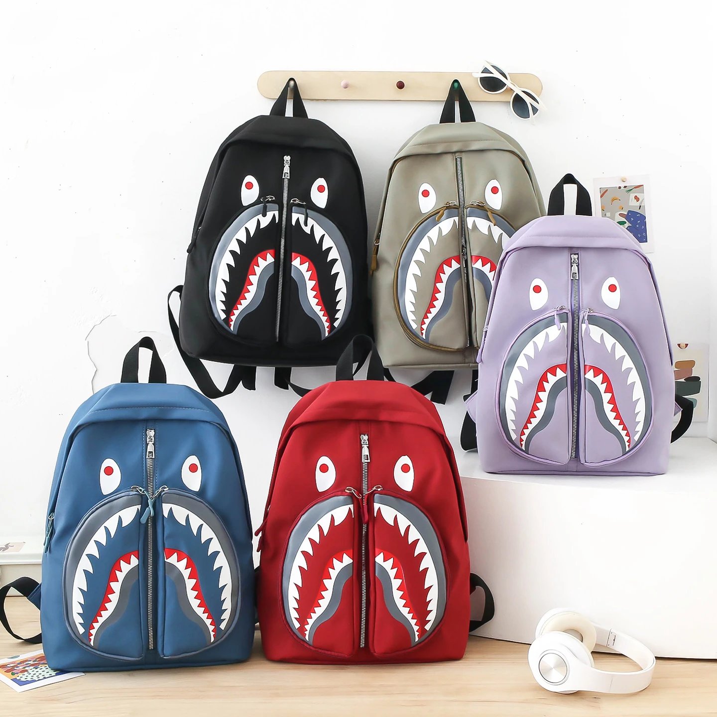 BAPE Shark Unisex Sports Bag is a street fashion casual backpack, ideal for high school/college students & travel.