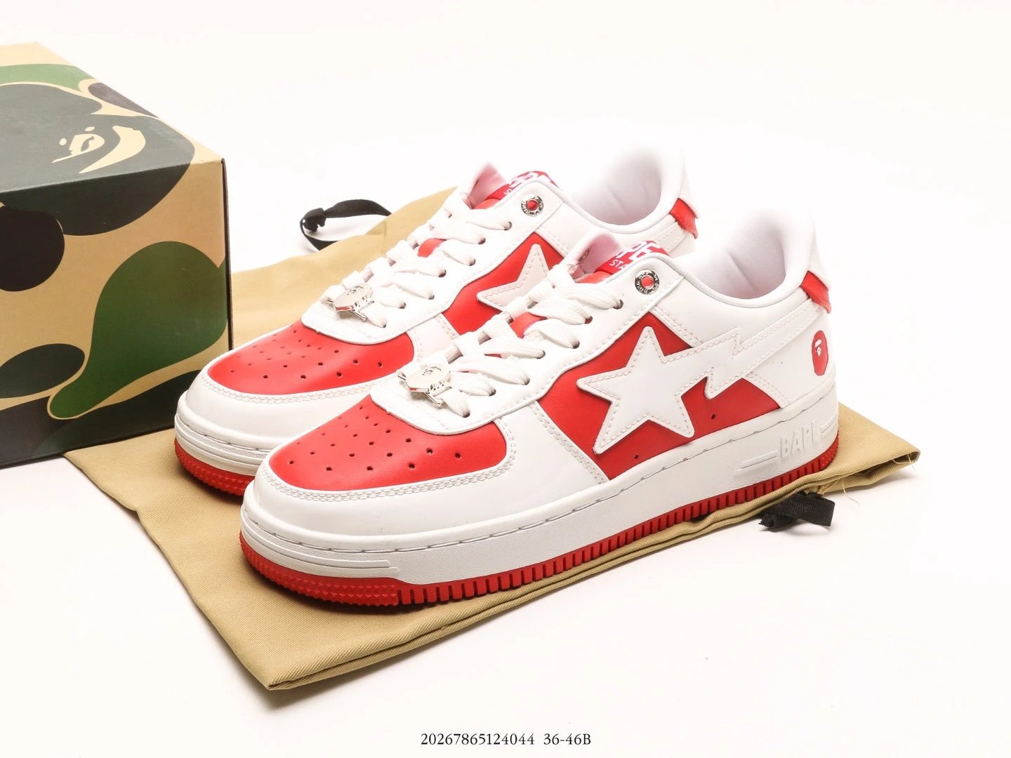 BAPE Bape Sta Tokyo sneakers feature classic ape head design, authentic silhouette, sea glass insole, full-length air cushion, complete premium packaging including logo dust bag, card and drawer box.