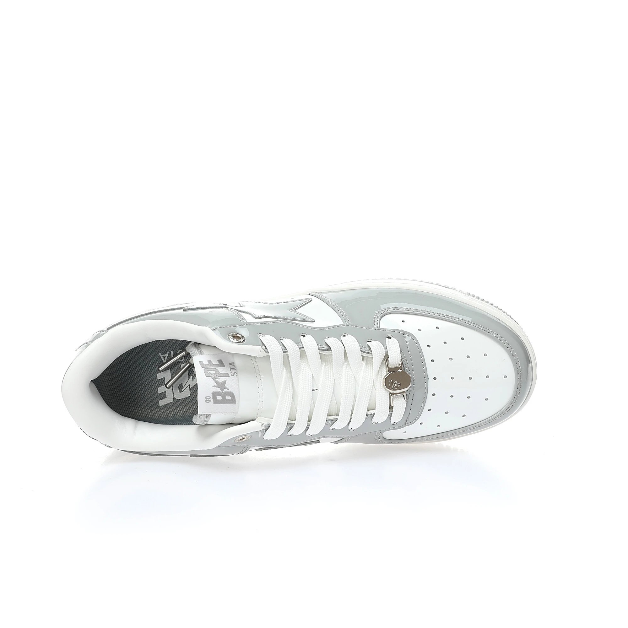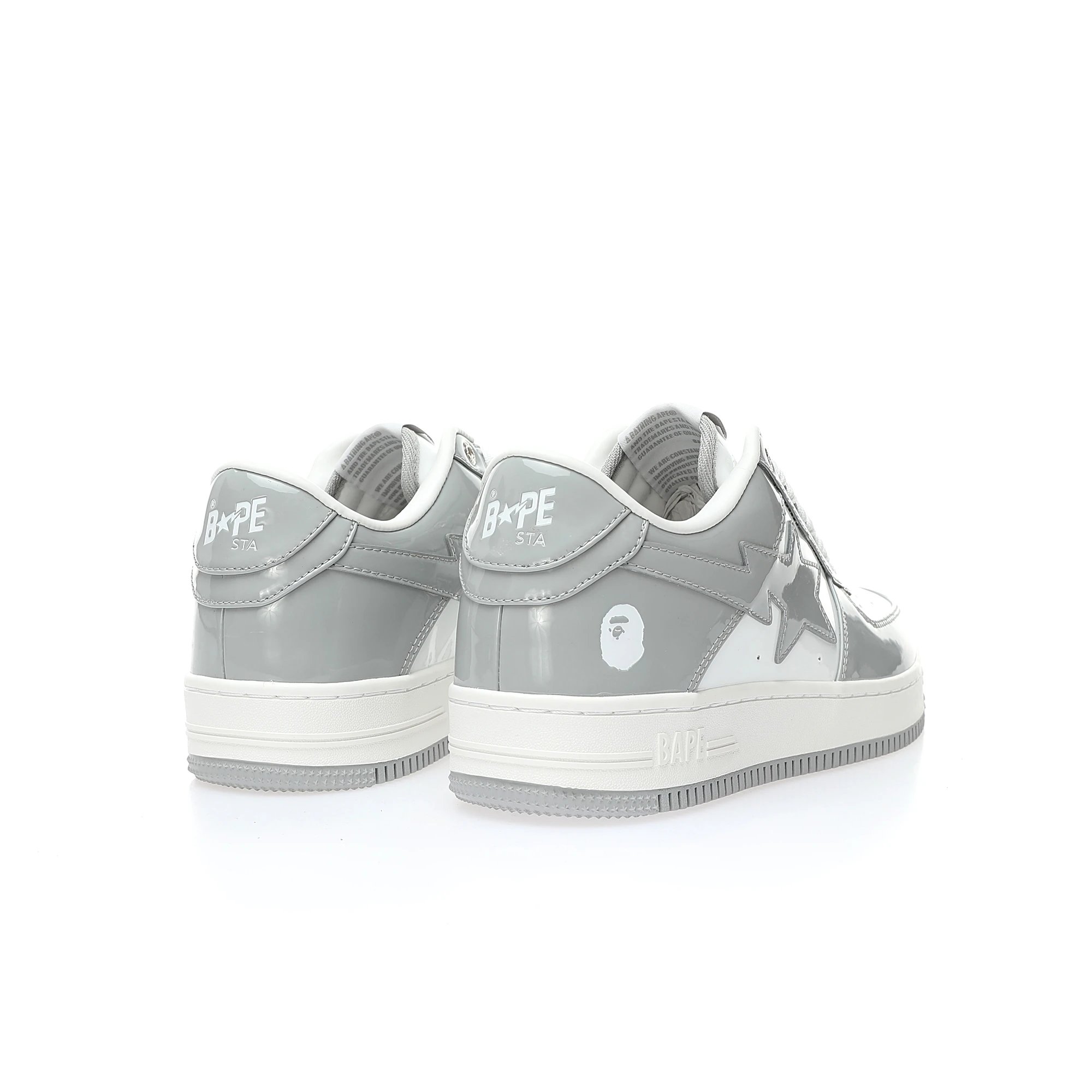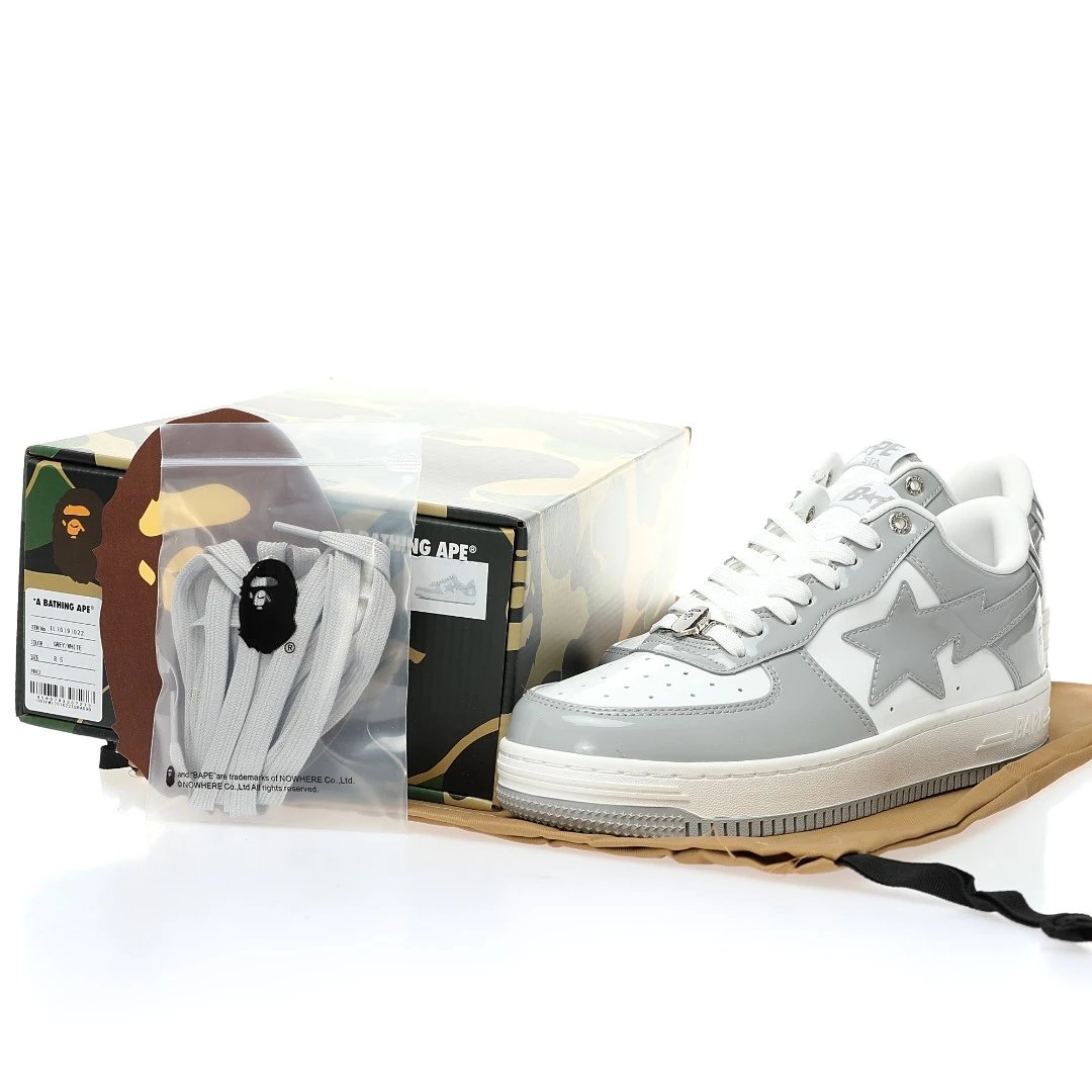 BAPE Sta Low Unisex Sneakers use patent leather upper, durable rubber outsole, with drawer box, dust bag, ape card, extra laces.