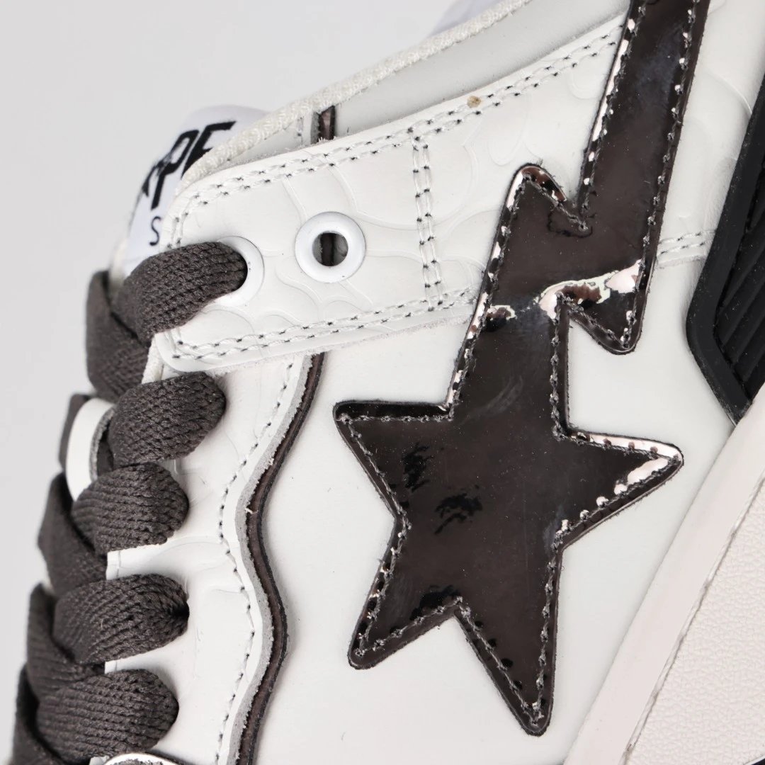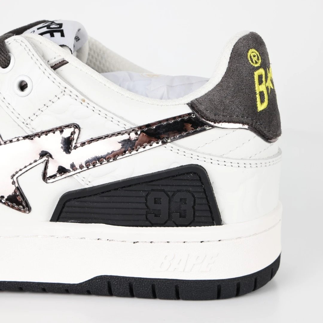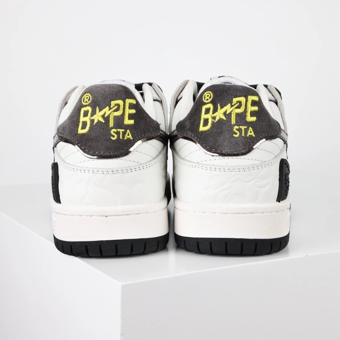 BAPE Sta Low Classic Skate Shoes use patent leather & nubuck upper.