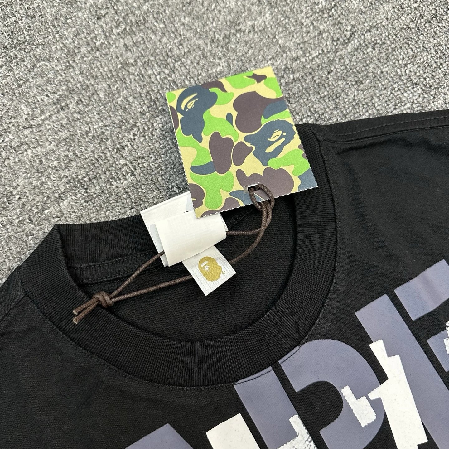 A BATHING APE XX117 SS25 Unisex T-Shirt features ape head print, 280g linen-cotton, crew neck. Available in White/Black, sizes S-XXL.