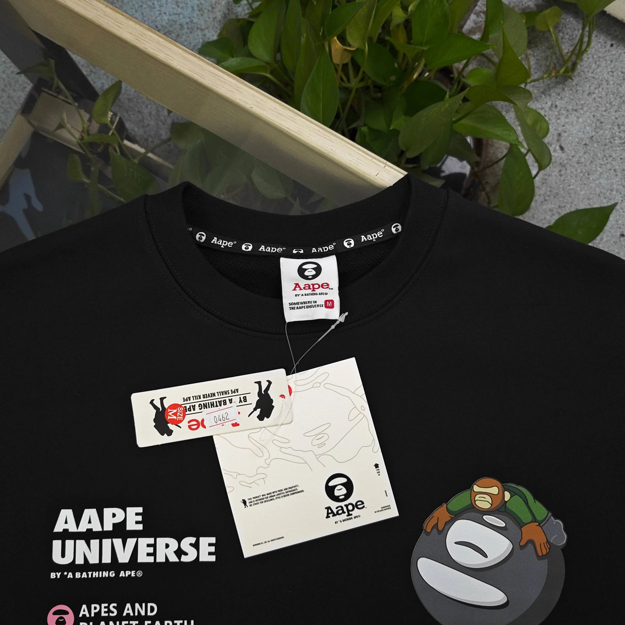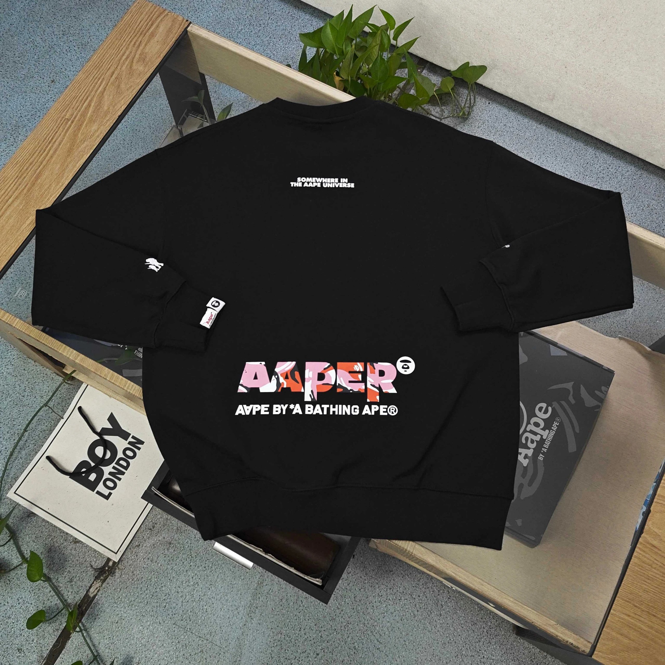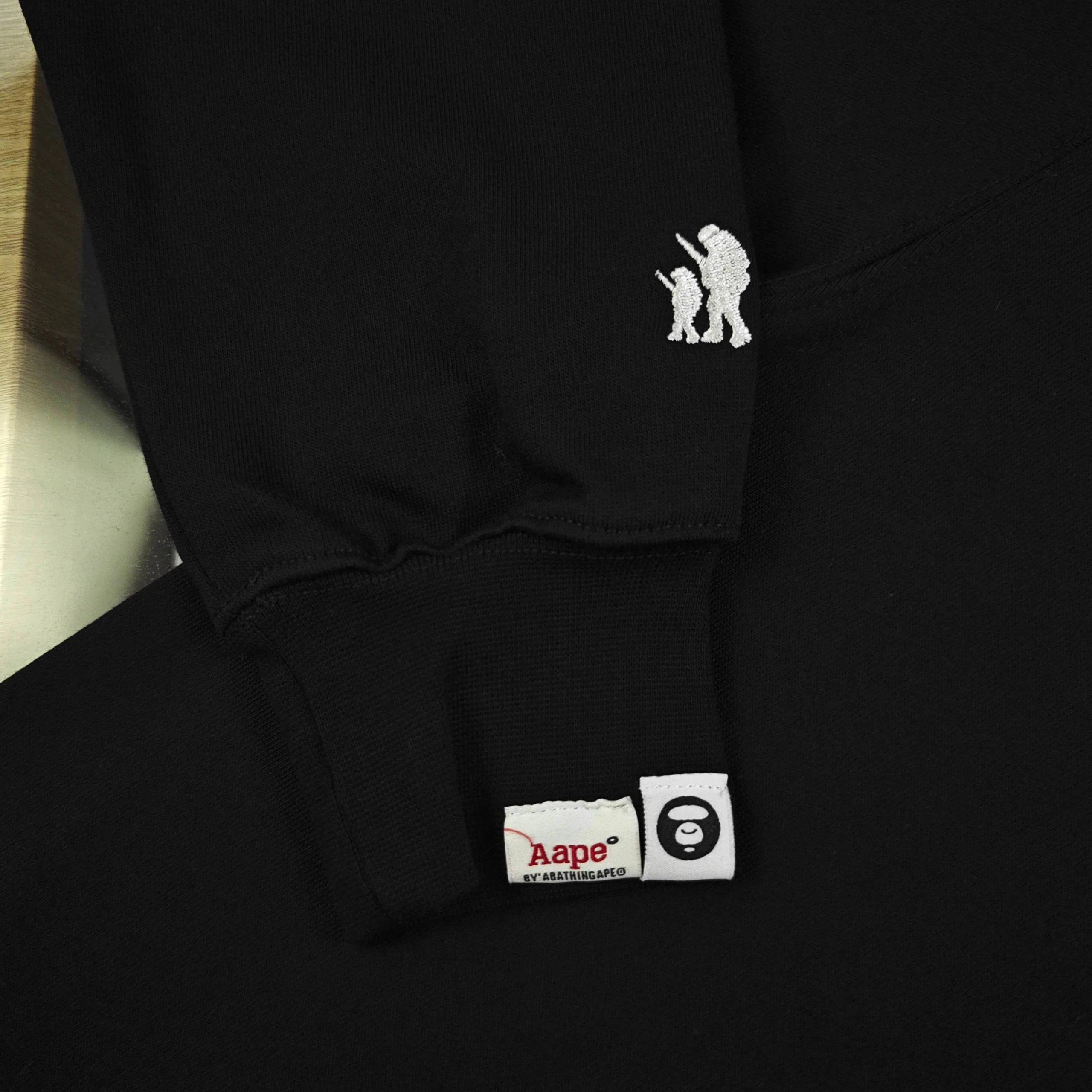 BAPE Classic Ape Head Black Cotton Fleece Crewneck Sweatshirt: 2025 Fall/Winter new, 380g cotton fleece (no pilling, no fuzz).