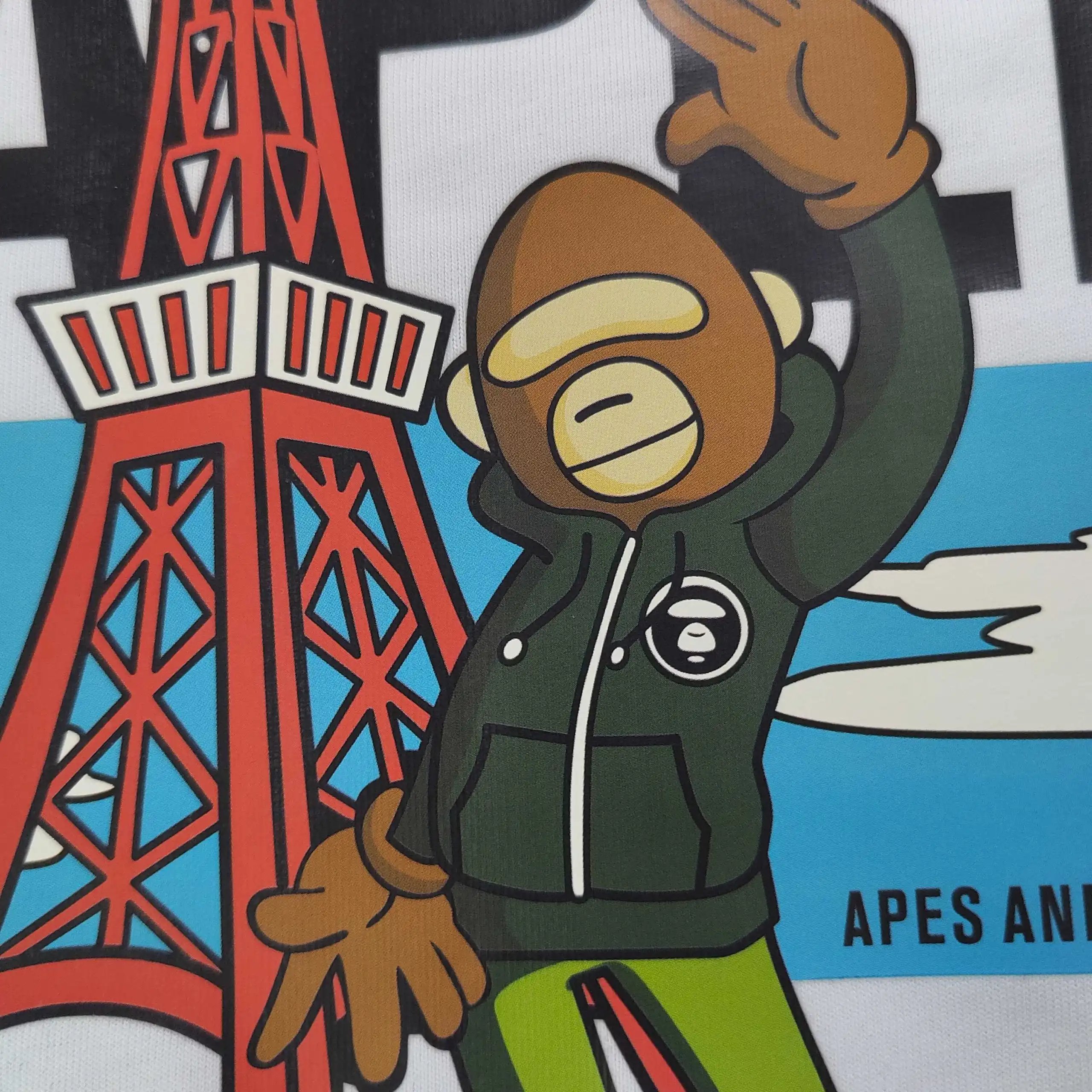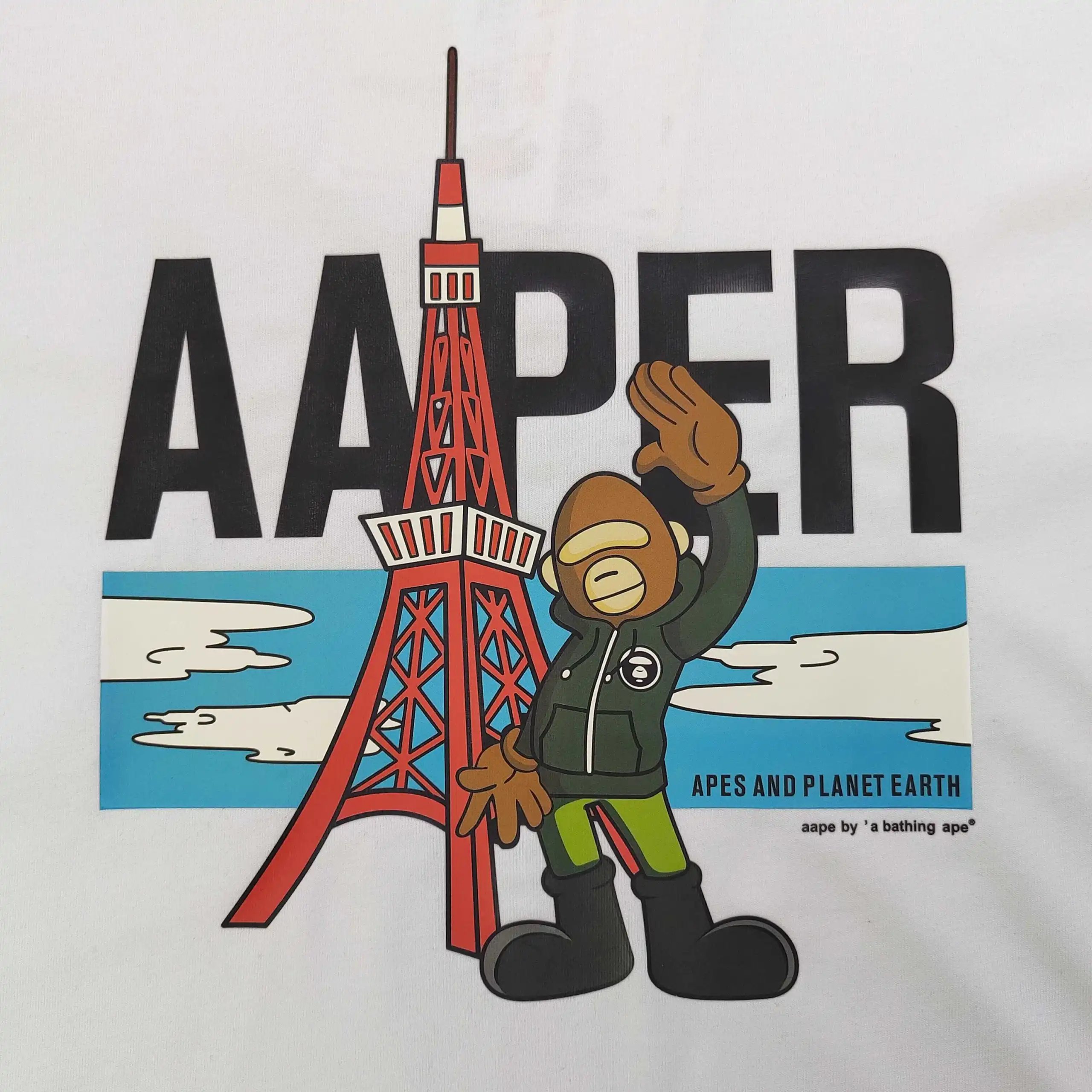 BAPE AAPE Eiffel Logo Crew Neck T-Shirt is unisex, ideal for couples.