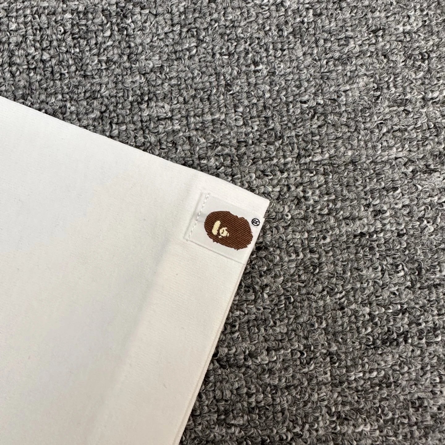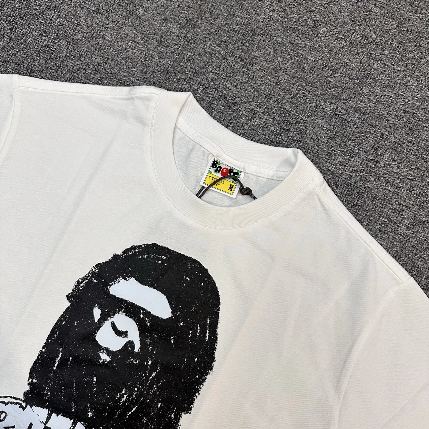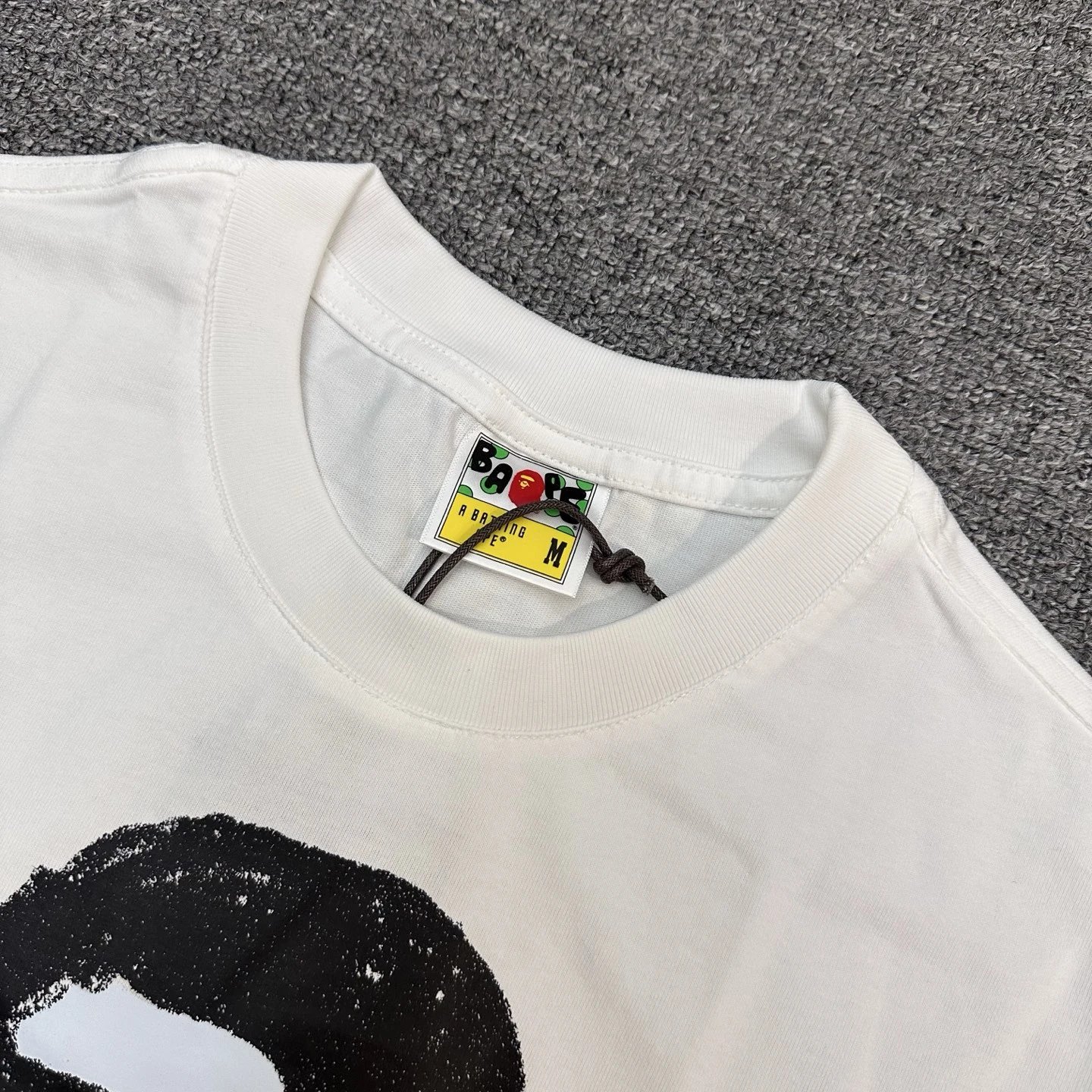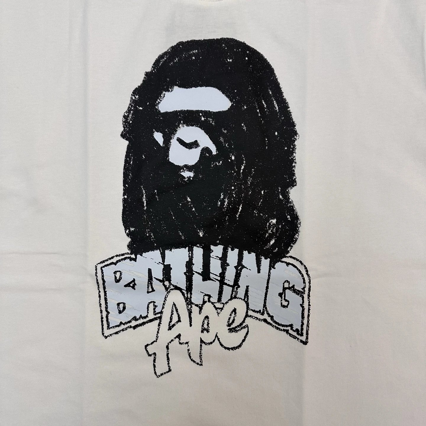 BAPE FW25 hand-drawn print crew neck T-shirts feature 270g linen-cotton fabric. Available in black & white, unisex/couples style, size 2XL (converted from XXL).