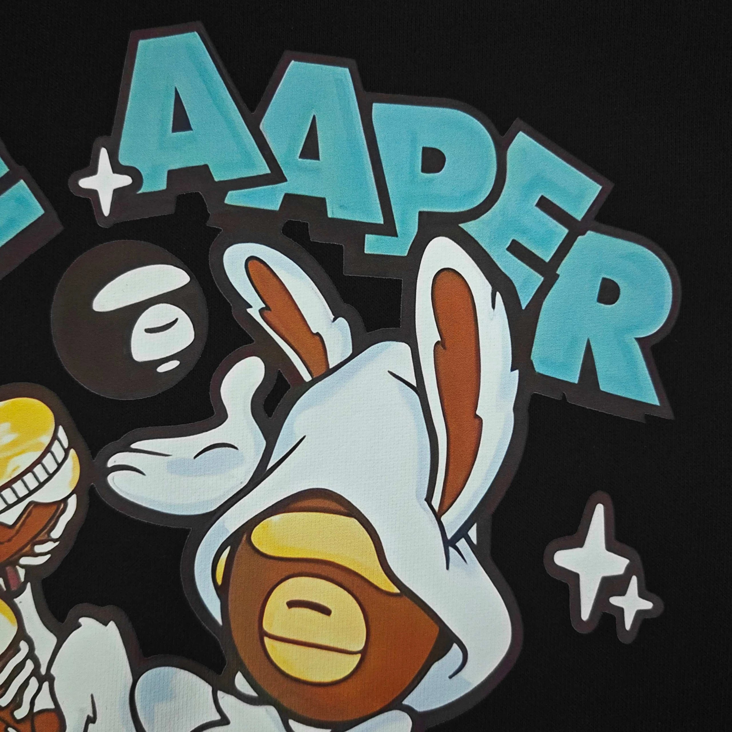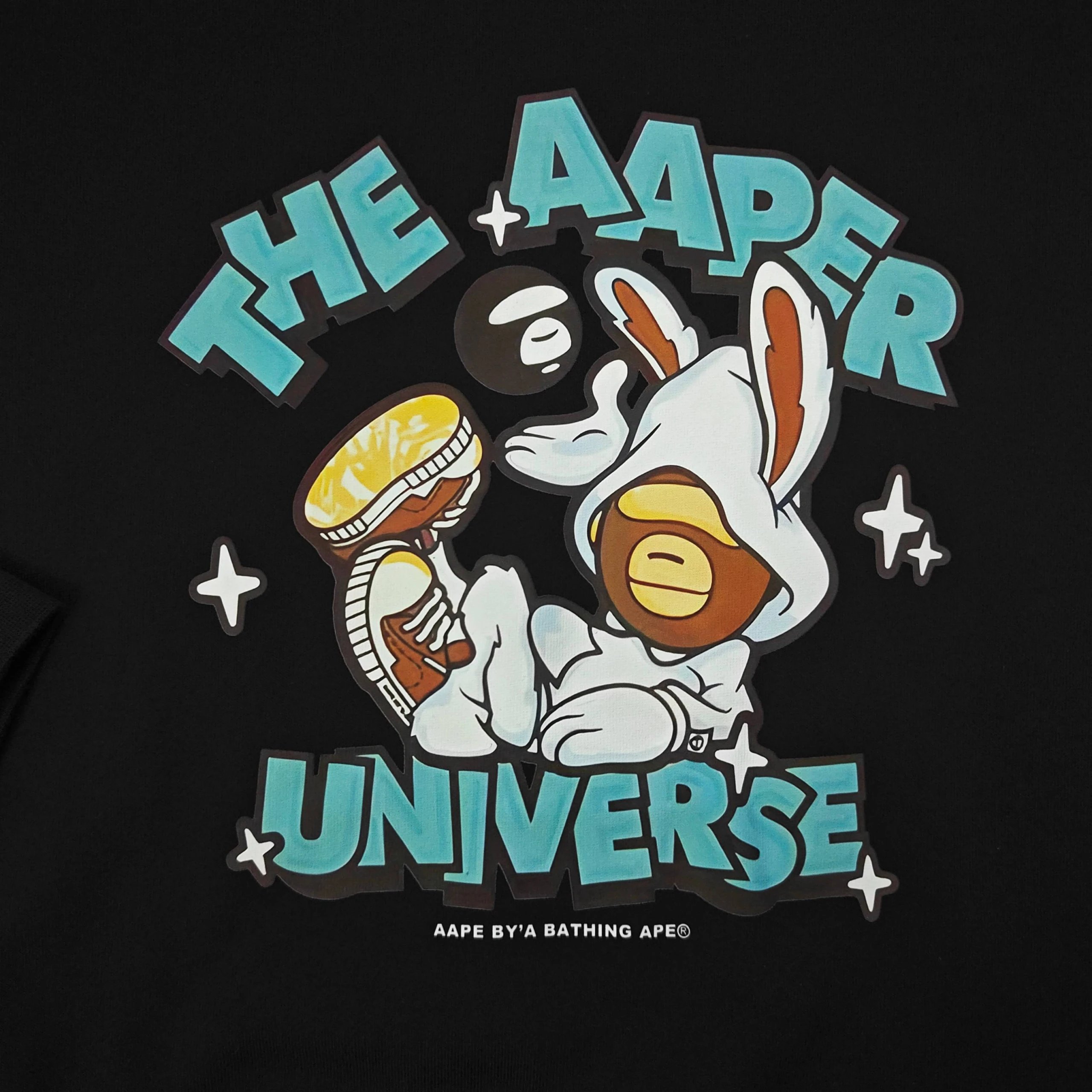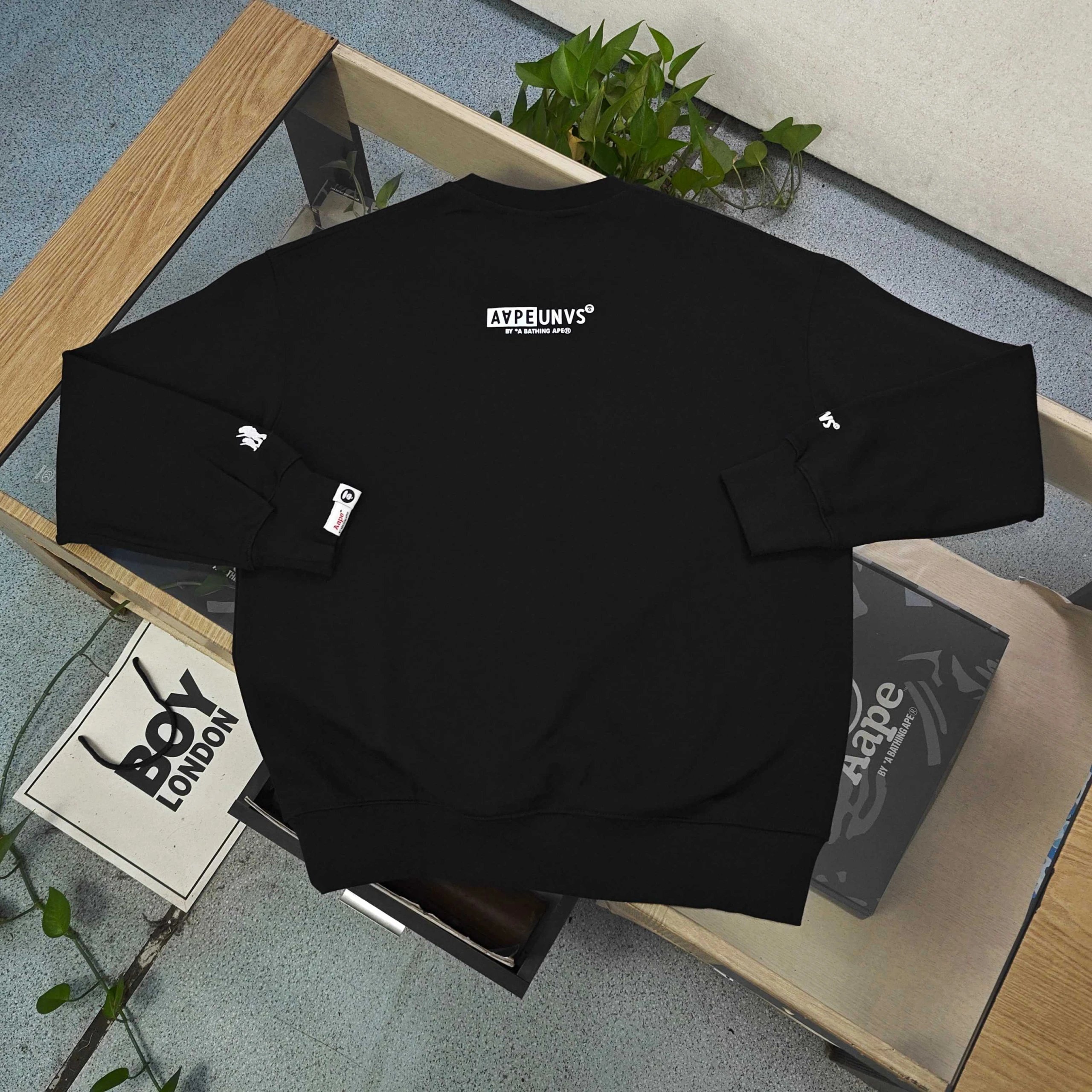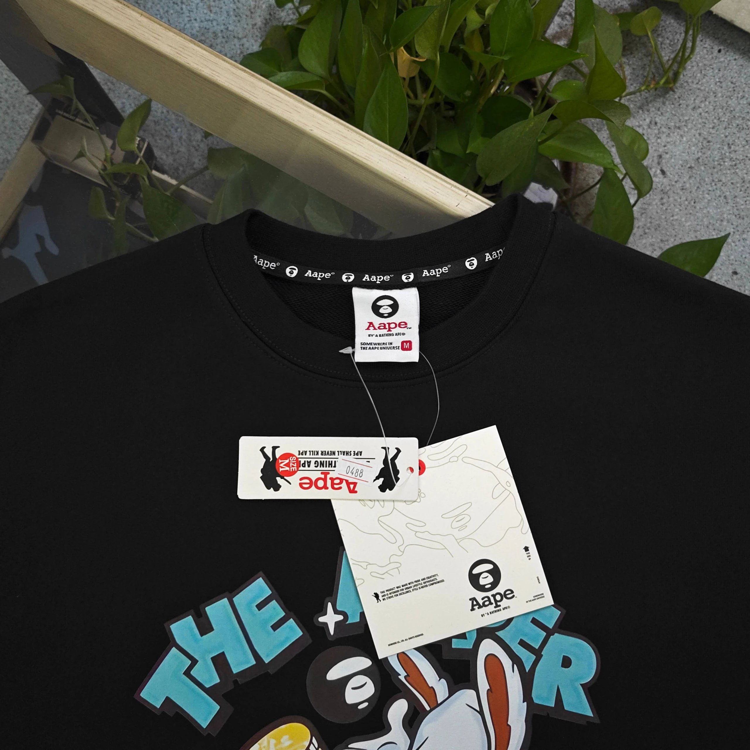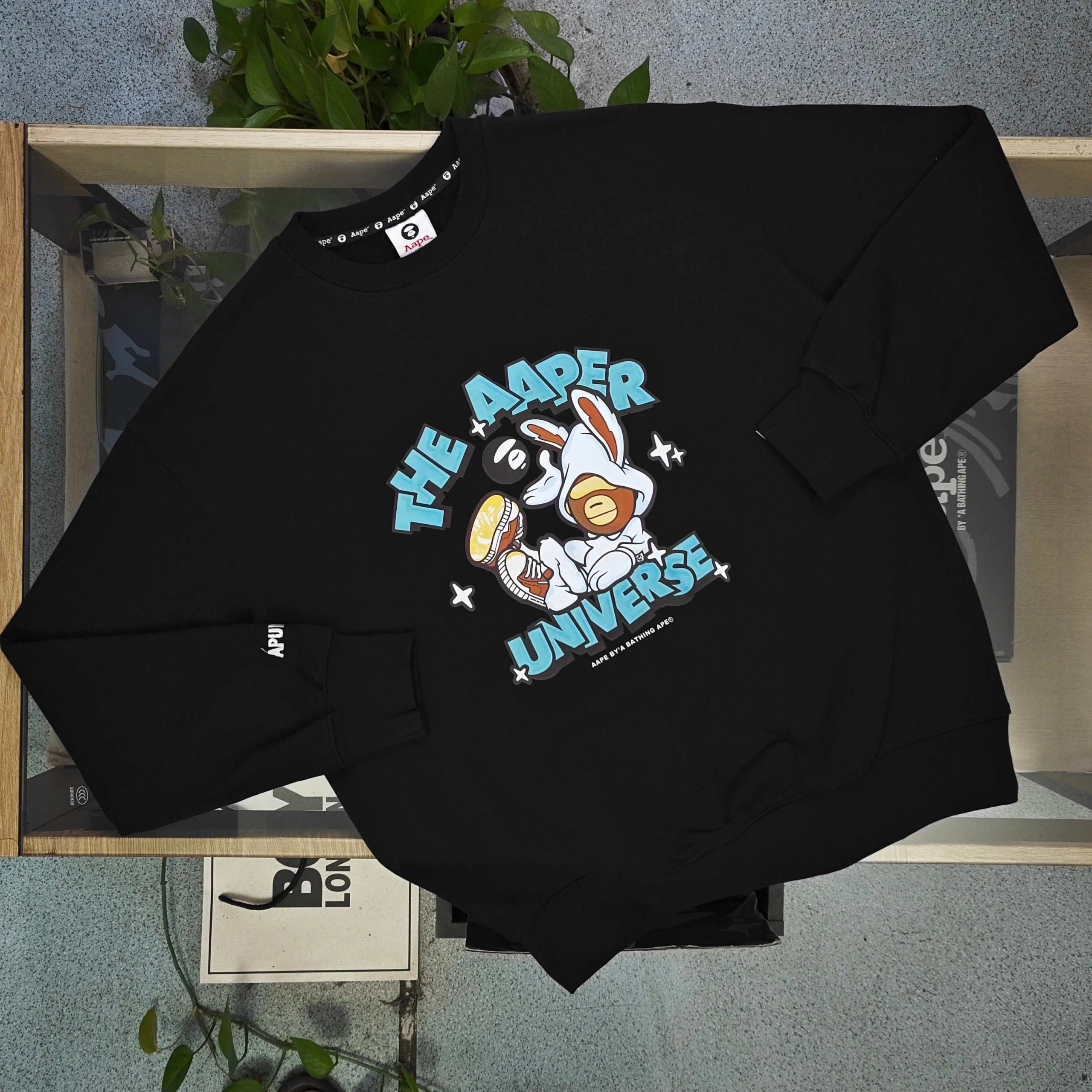 AAPE 2025 Fall Winter New Unisex Crewneck Sweatshirt has classic ape face with cute rabbit ears, logo print, 380g pilling-free cotton fleece.