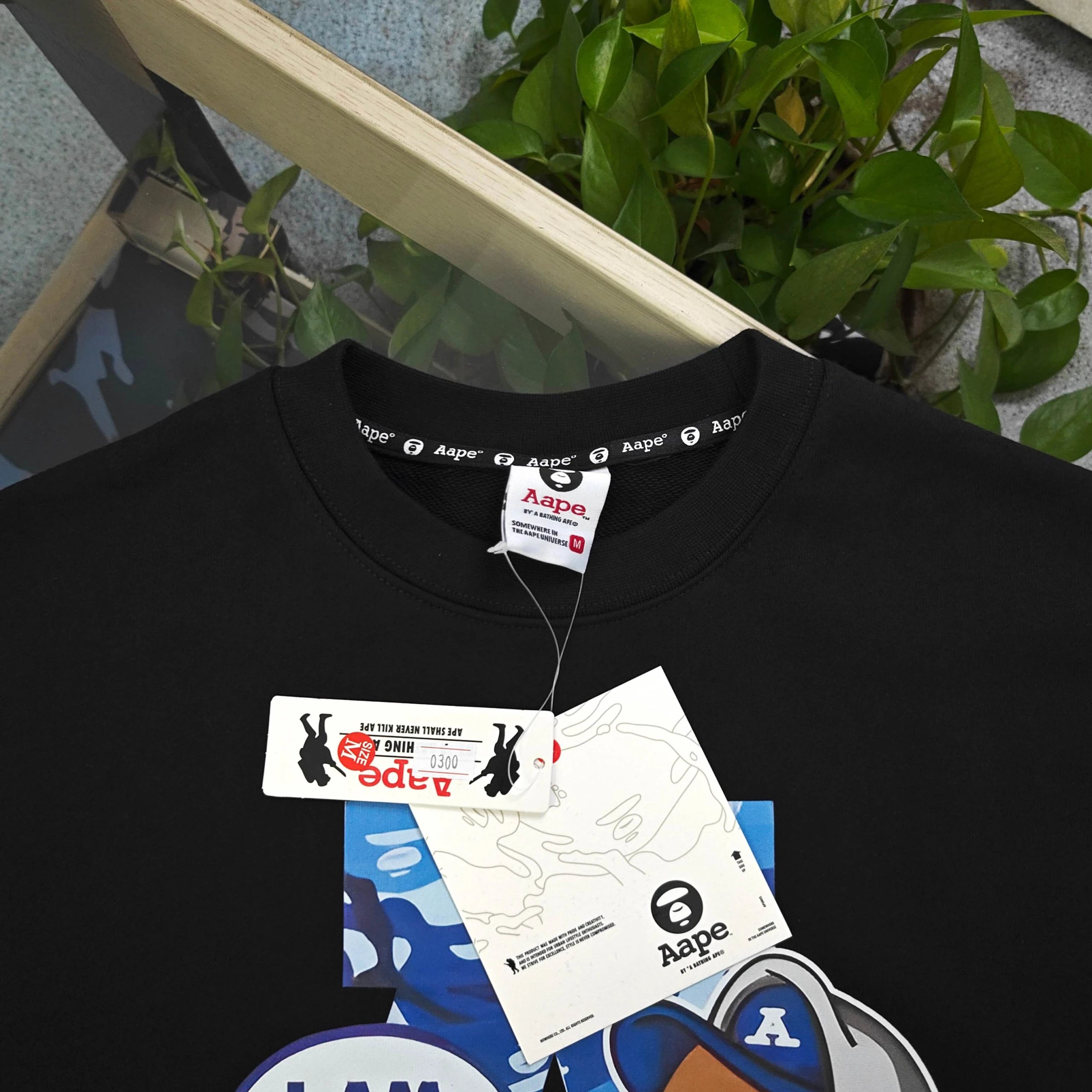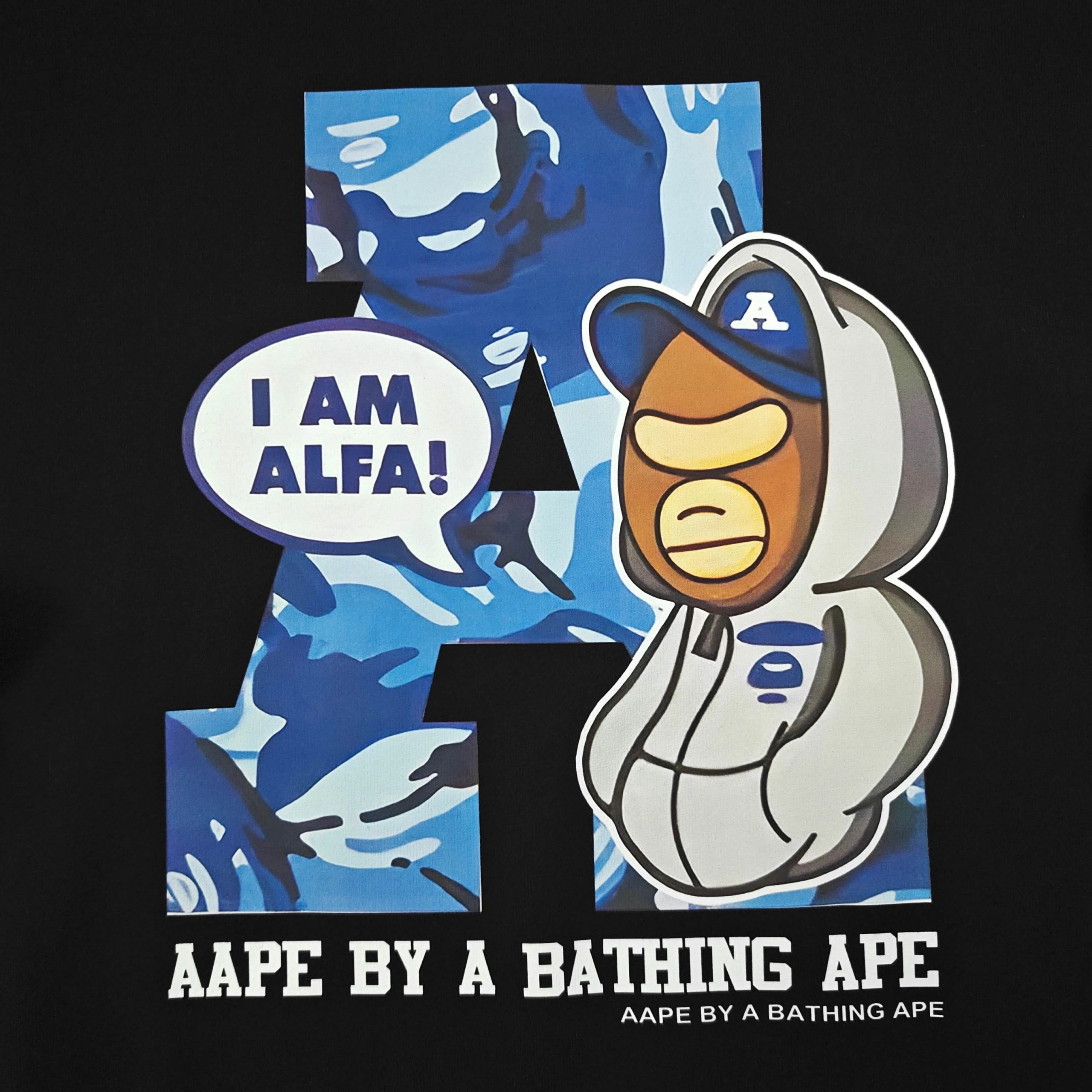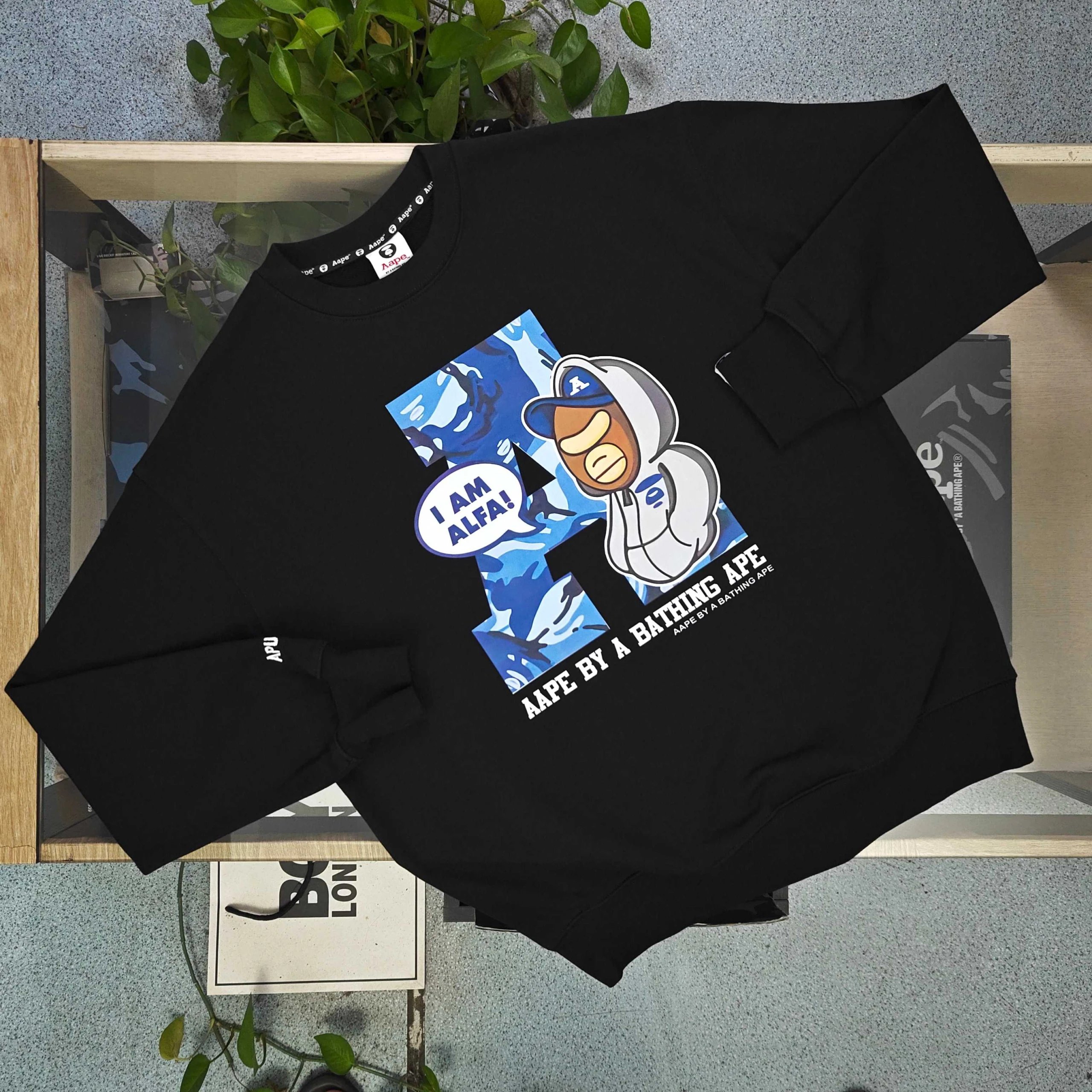 BAPE AAPE 2025 Fall Winter Black Cotton Fleece Crewneck Sweatshirt