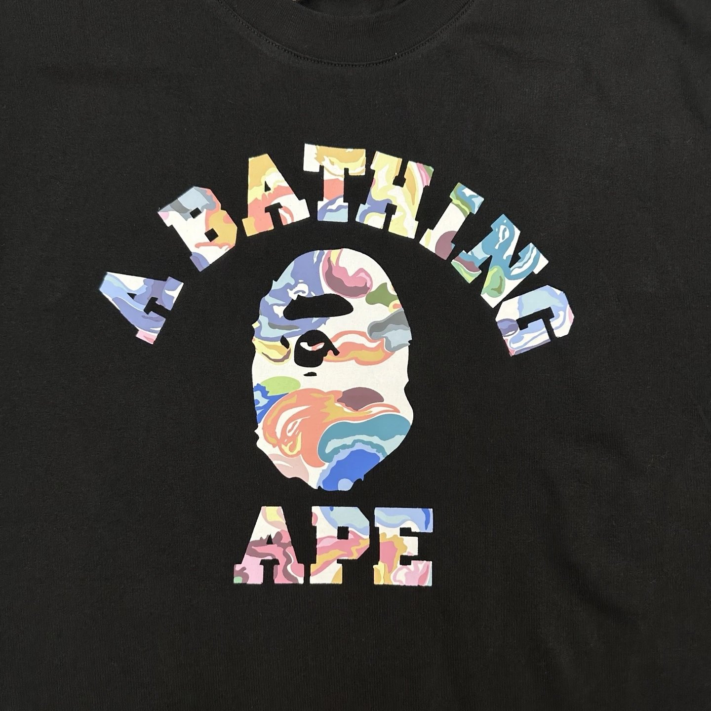 BAPE ART CAMO T-Shirts feature 270g linen-cotton fabric, authentic pattern, couple style, black & white.