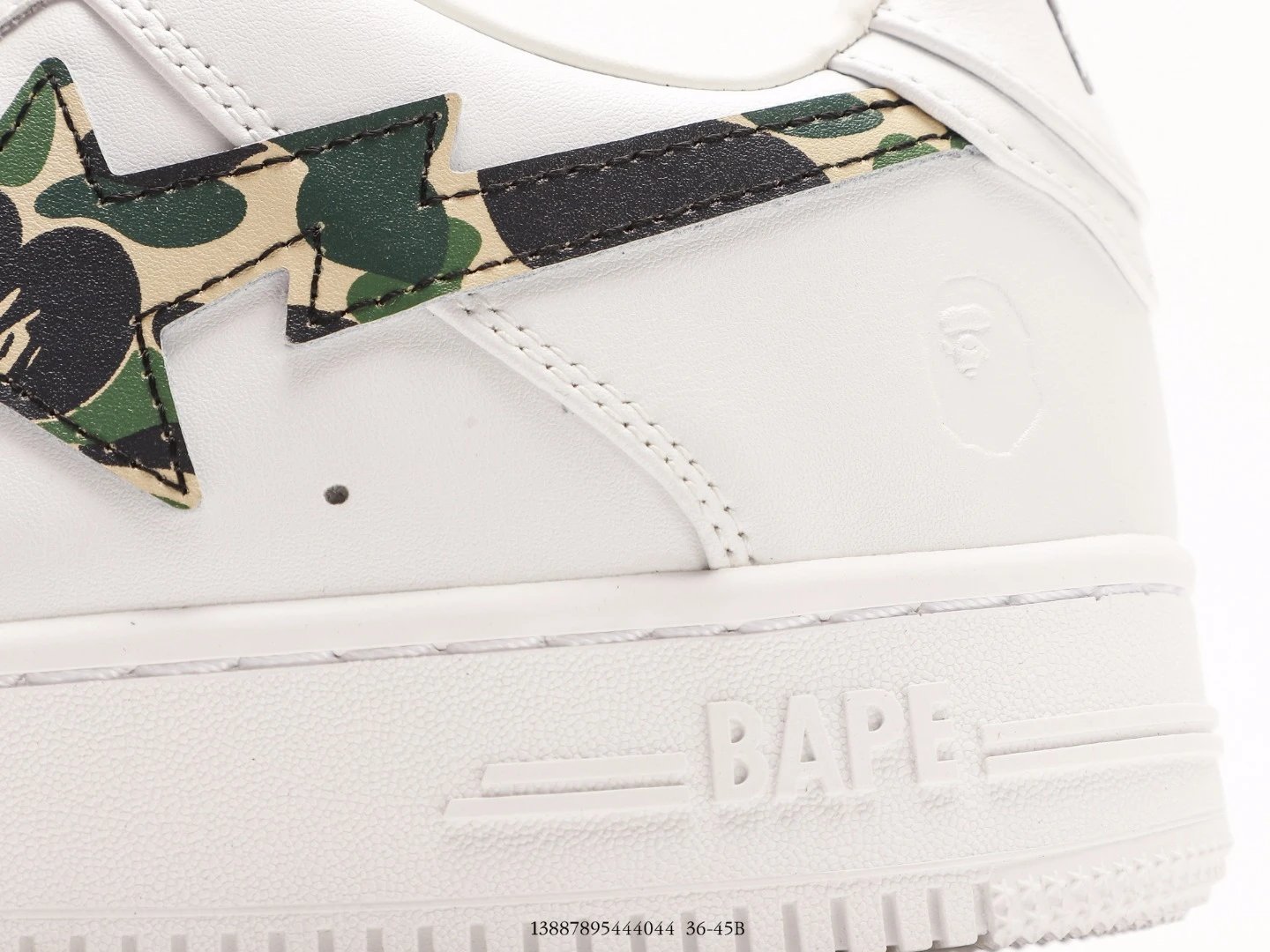 Authentic Version A Bathing Ape Sta Abc Camo Low Sneakers, Camouflage Logo, Low-Top, Fashion Casual Shoes, White Green, Unisex