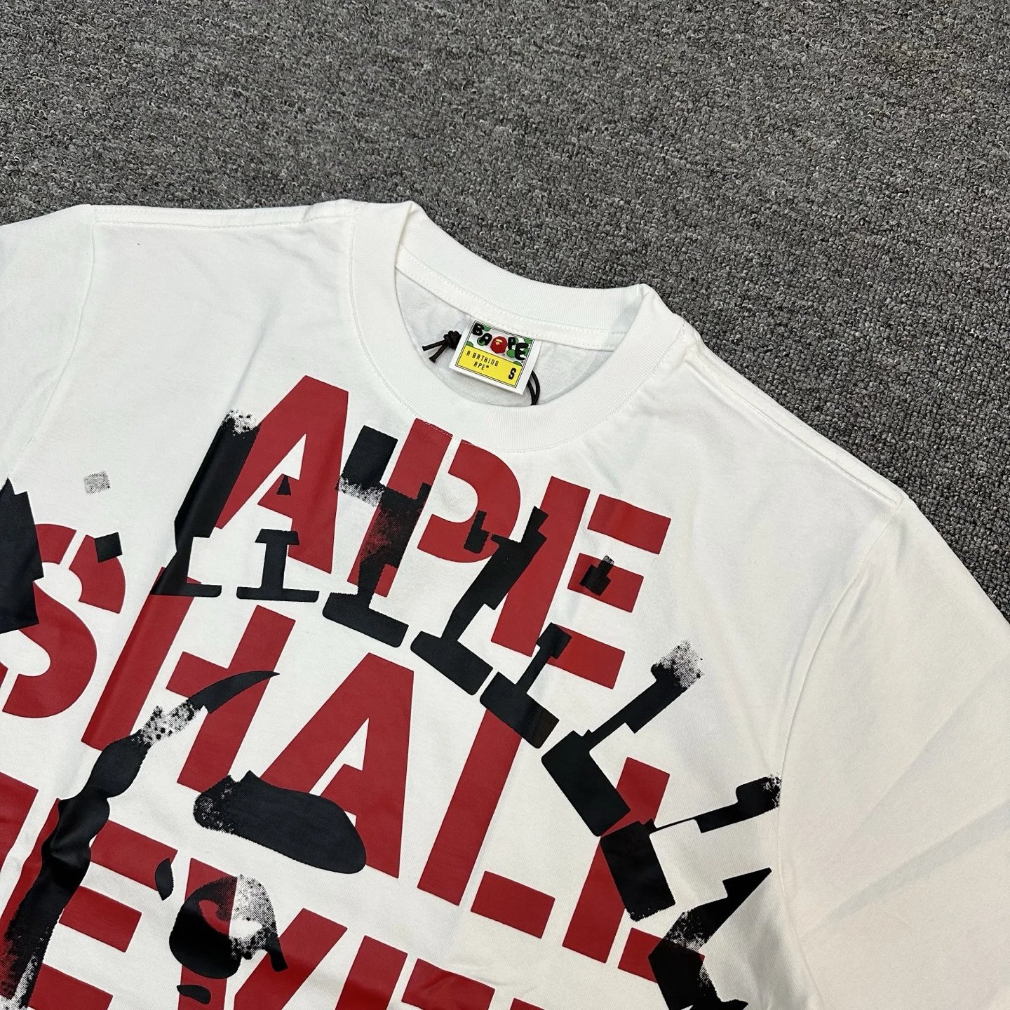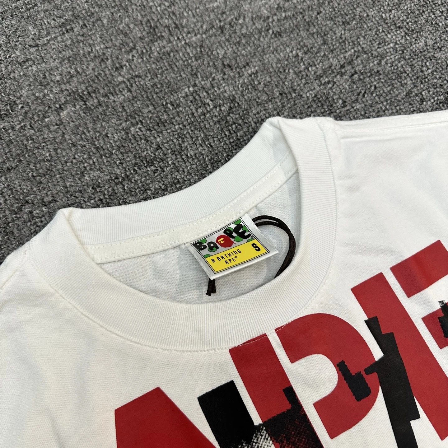 BAPE P90 XX117 SS25 T-Shirt has ape head & letter print, vintage crew neck, 280g linen-cotton fabric.
