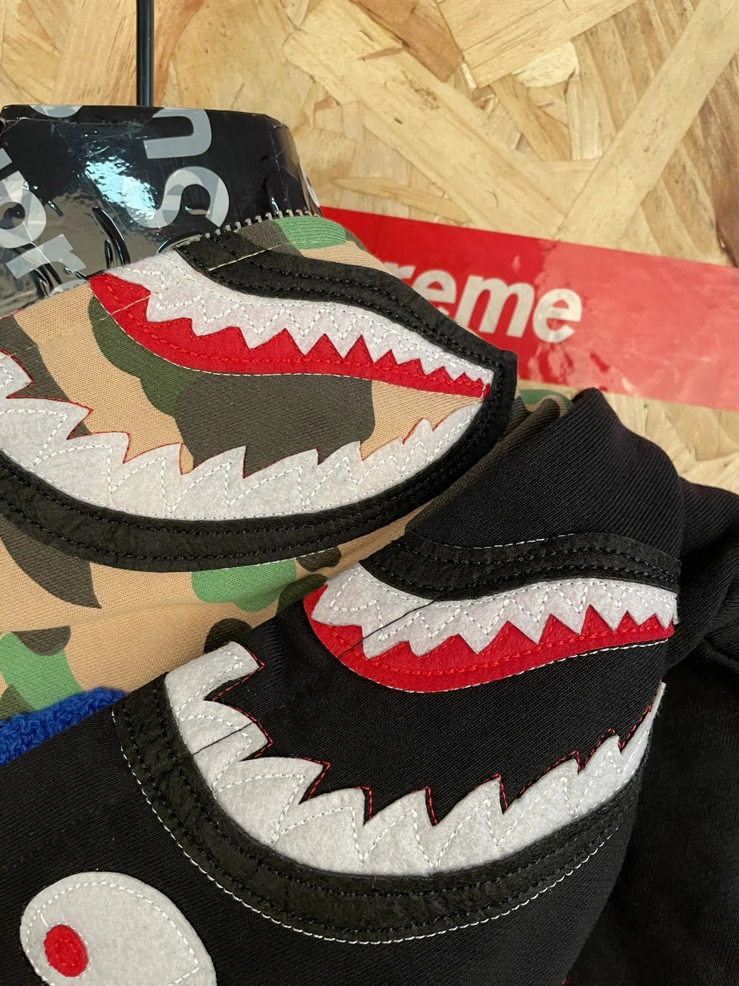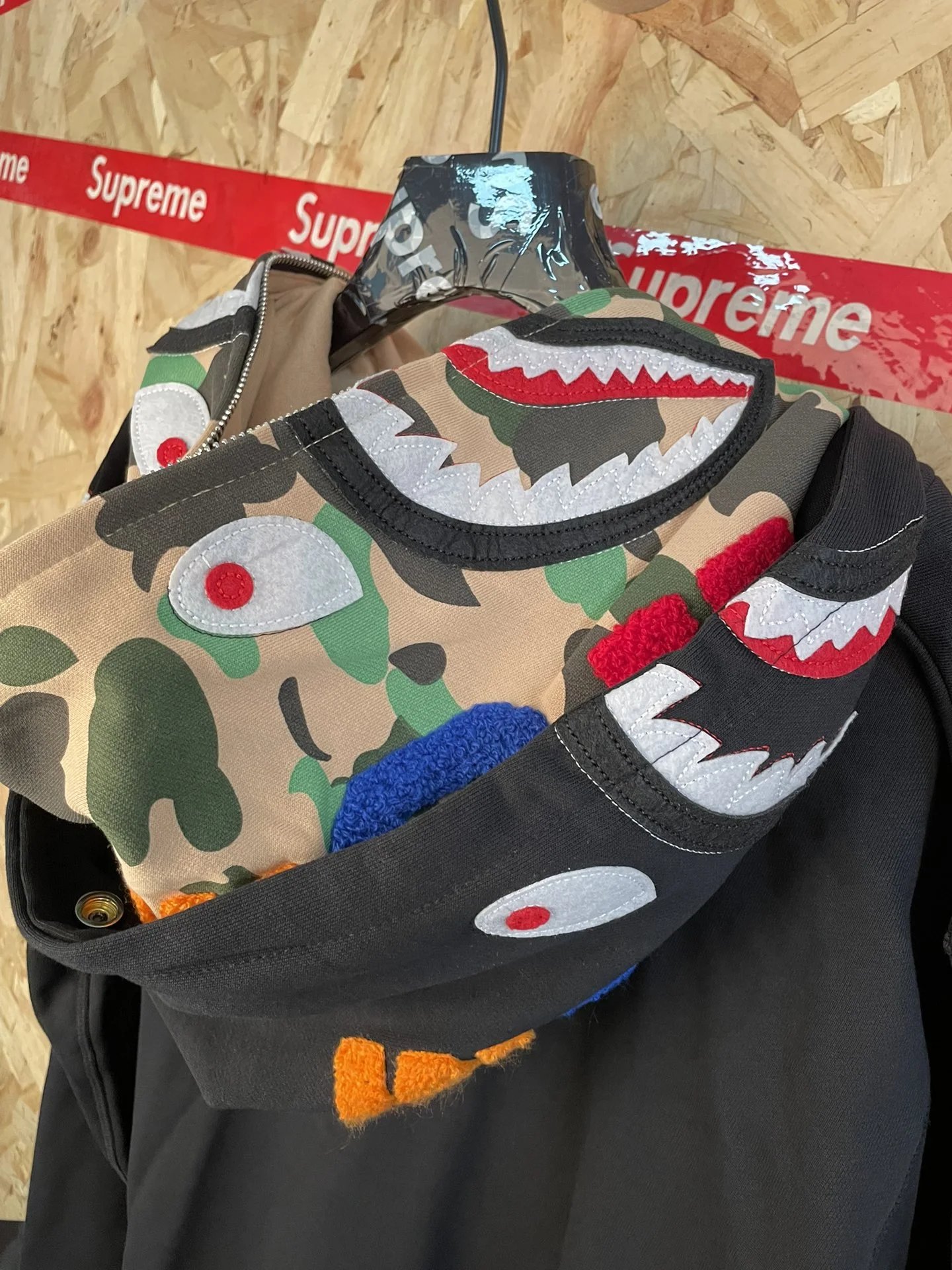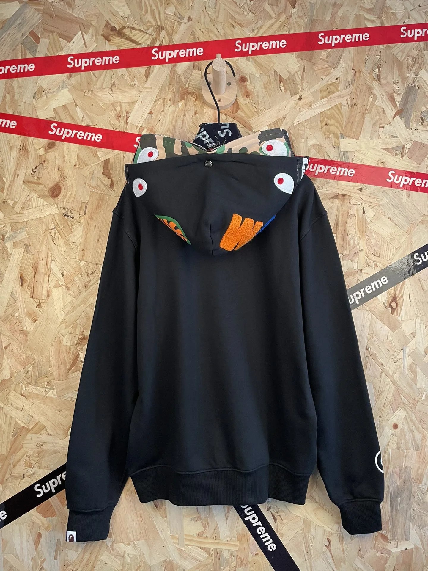 BAPE sy69 American Street Style Color Block Double Hood Shark Zip Hoodie