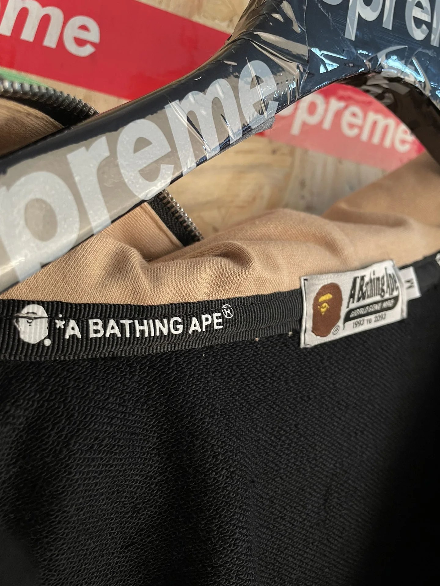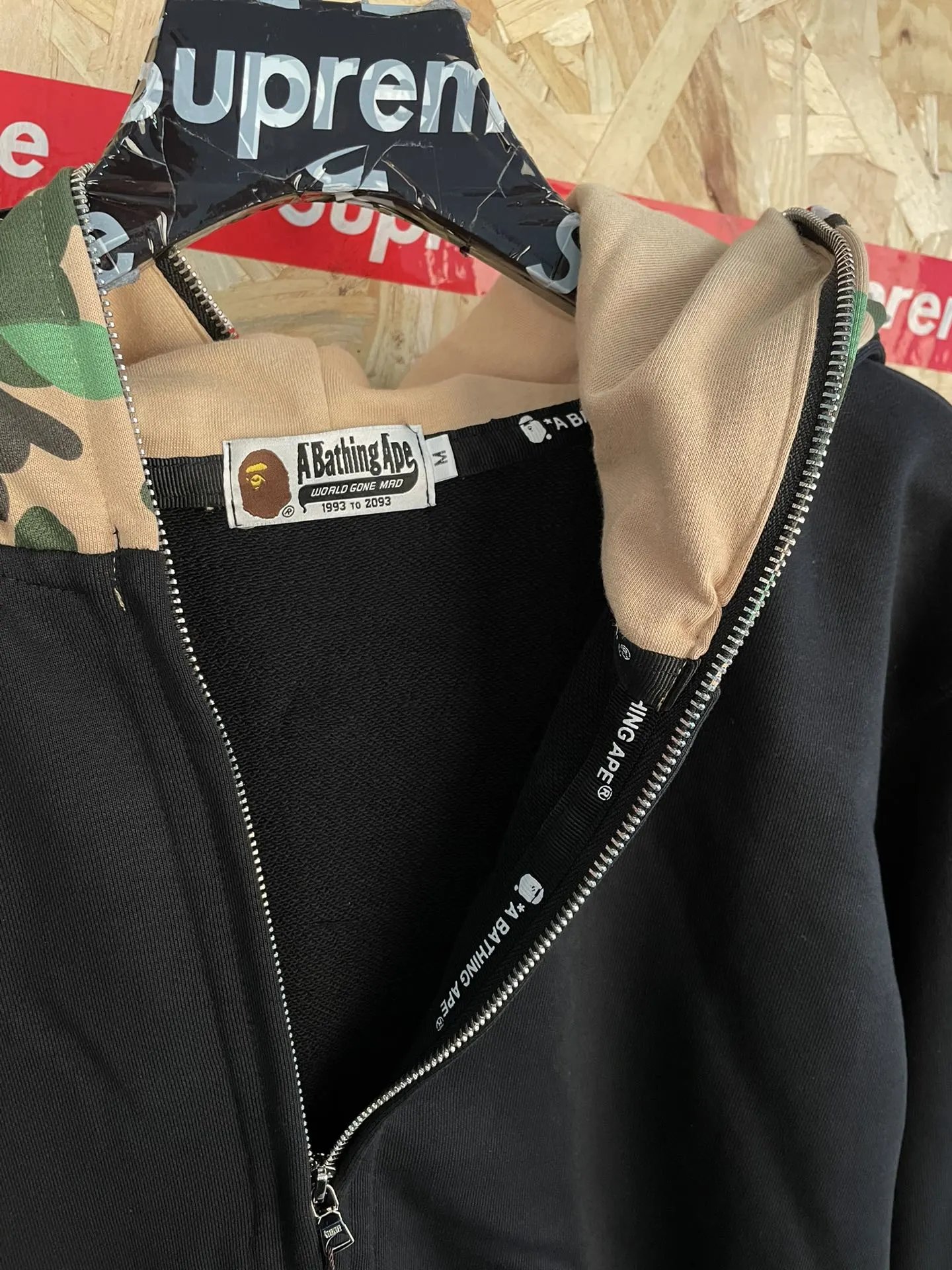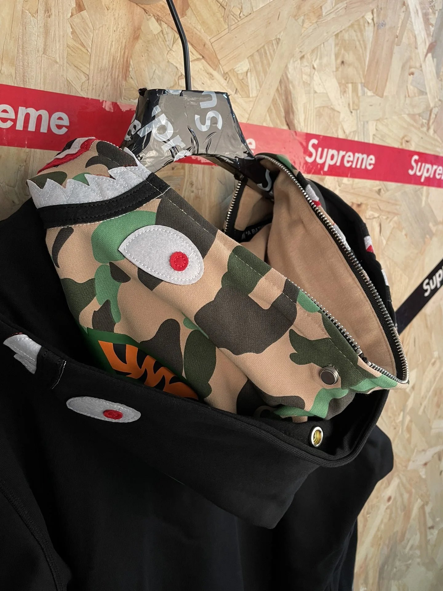 BAPE sy69 American Street Style Color Block Double Hood Shark Zip Hoodie