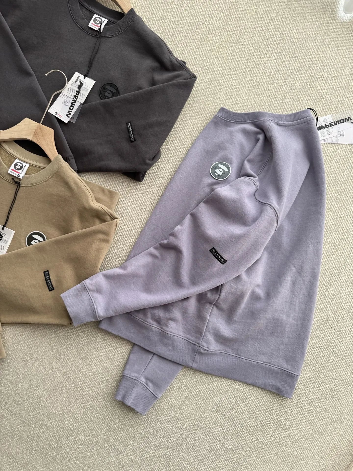 Aape Heavy Embroidered Fleece Hoodie: 420G cotton-poly fleece, pre-washed for vintage look. Badge patch + embroidery, 3-needle 5-thread craft, durable & stylish.