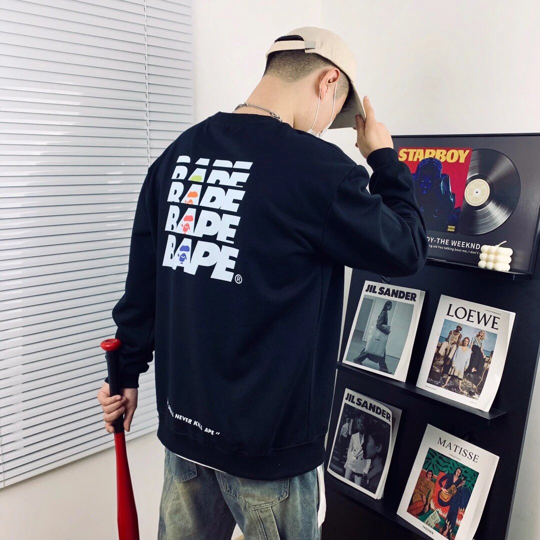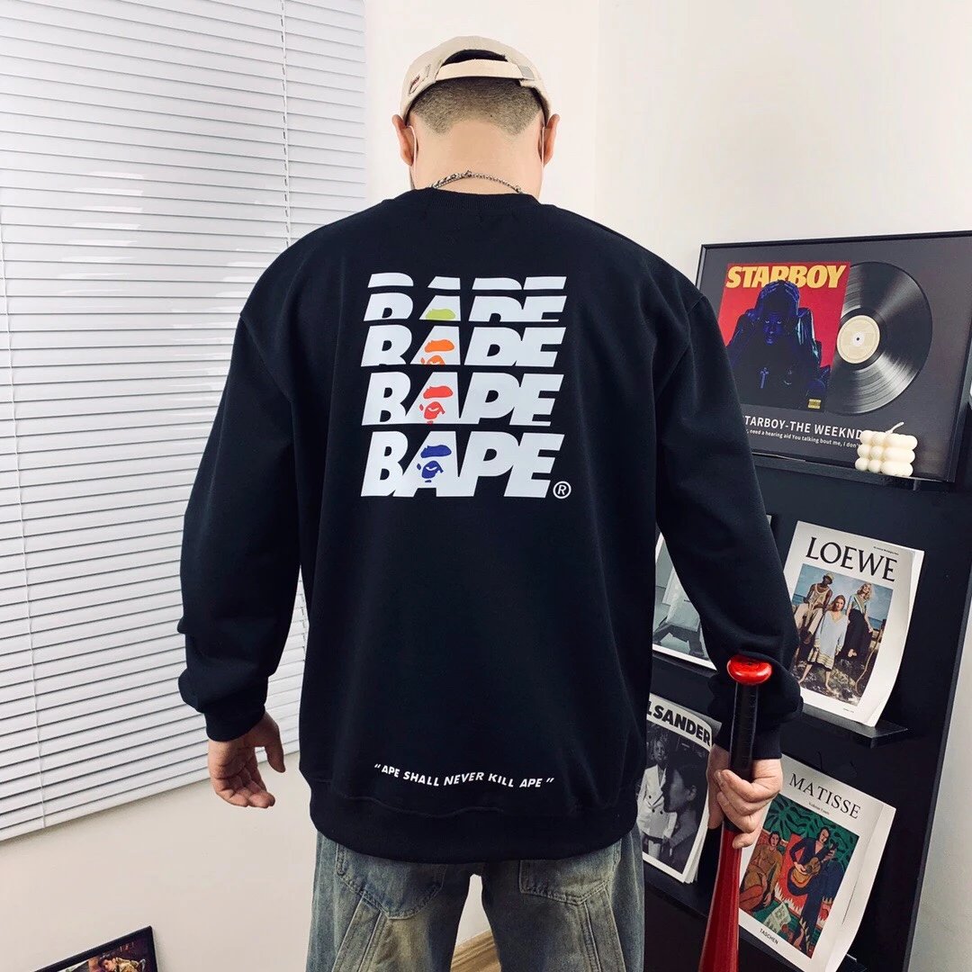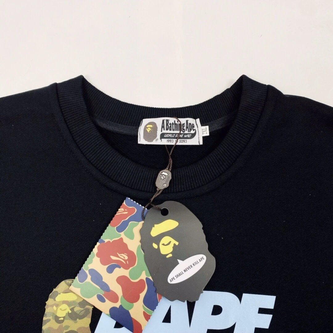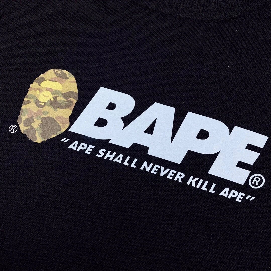 A BATHING APE 100 SUMMER CAMP Camo Crewneck Sweatshirt features military ape graphic, 380g cotton (anti-pilling, no deformation).