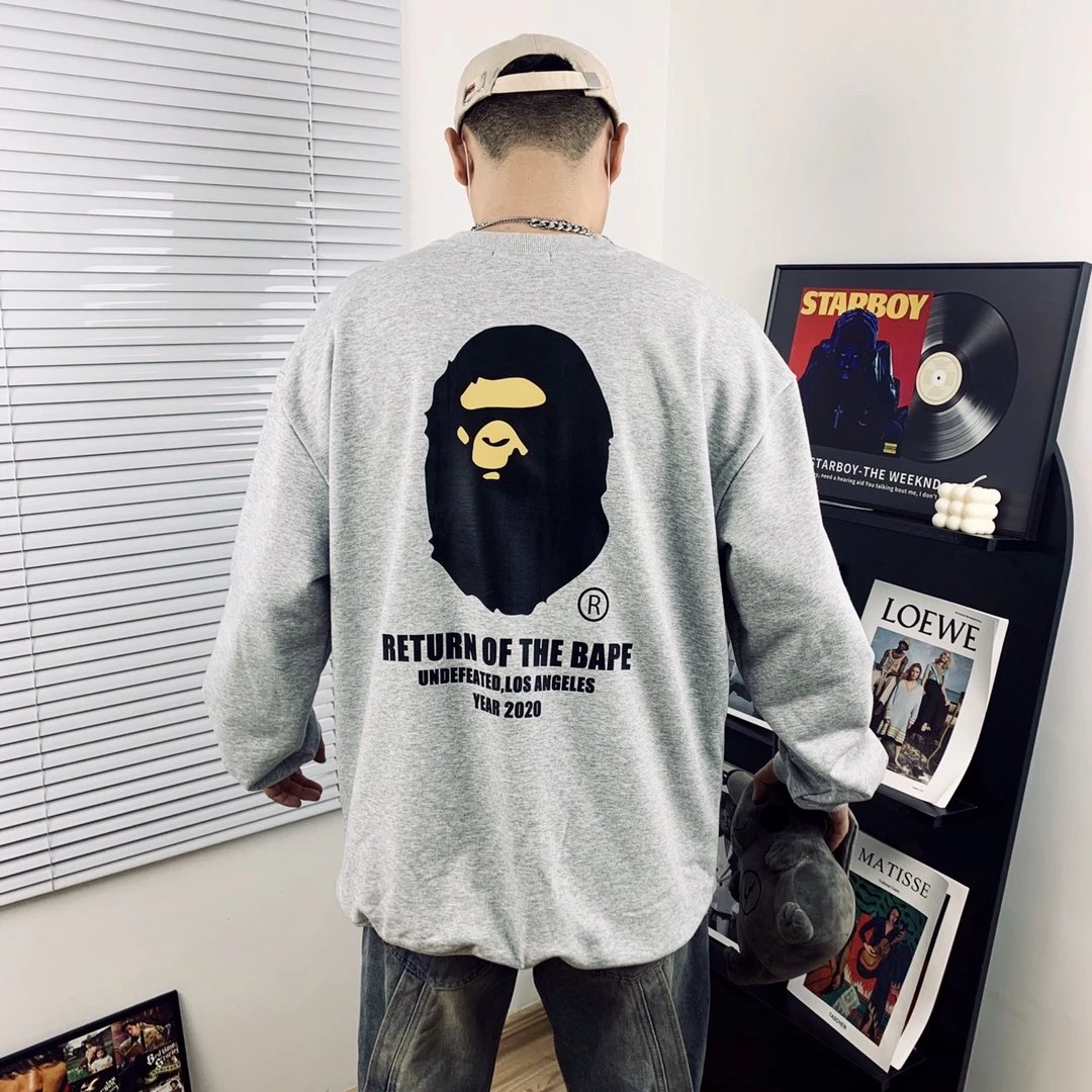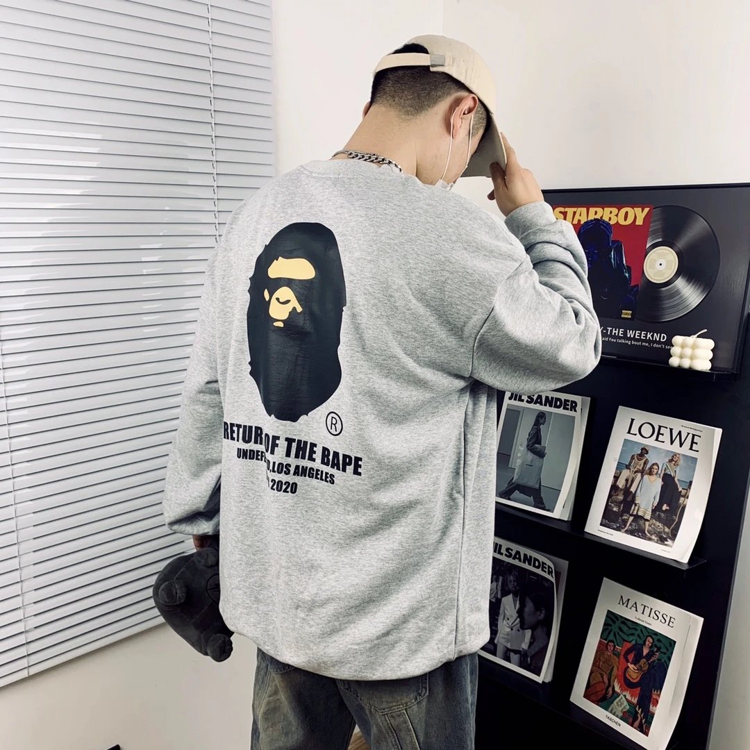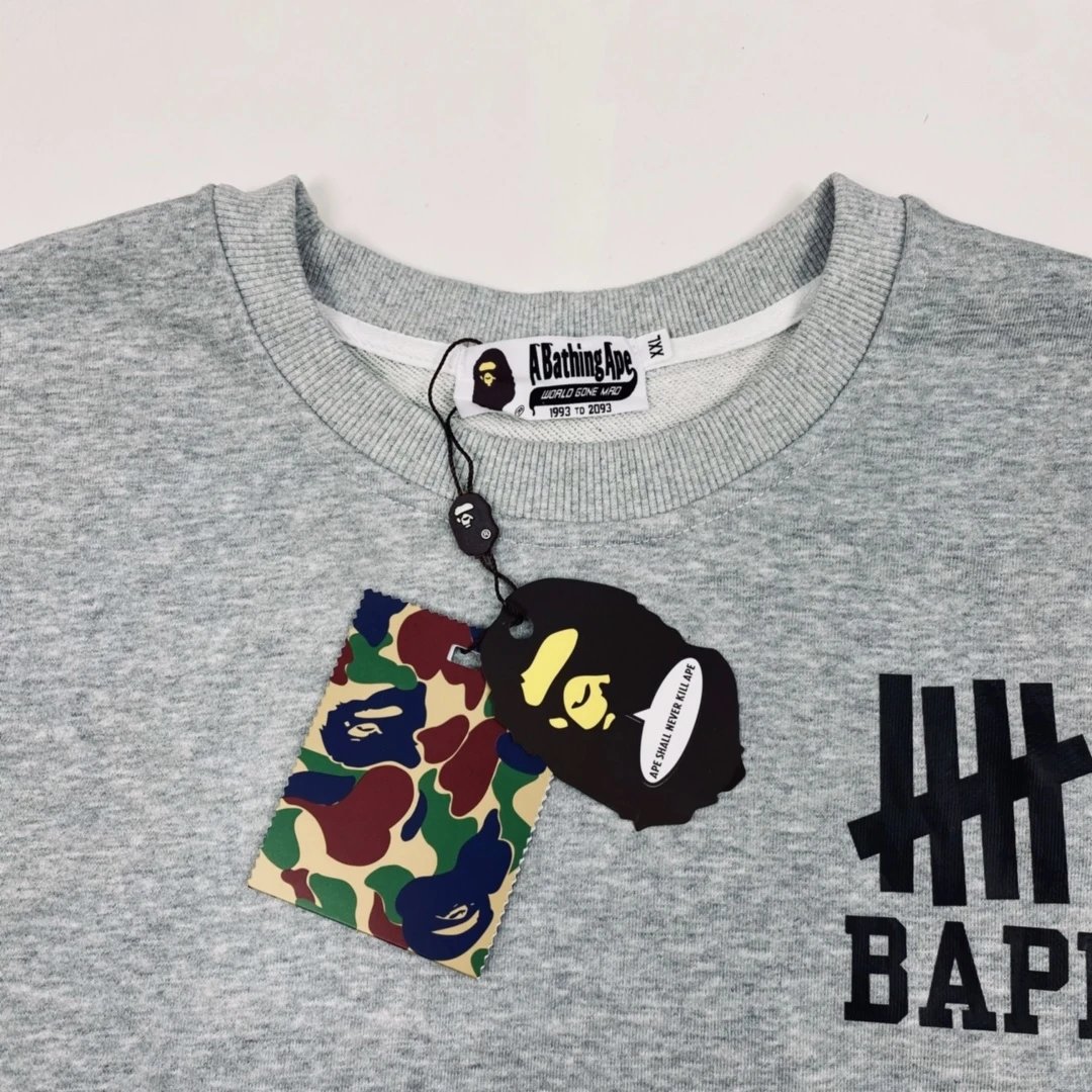 A BATHING APE 100 SUMMER CAMP joint five-bar letter print crewneck sweatshirt with original packaging.
