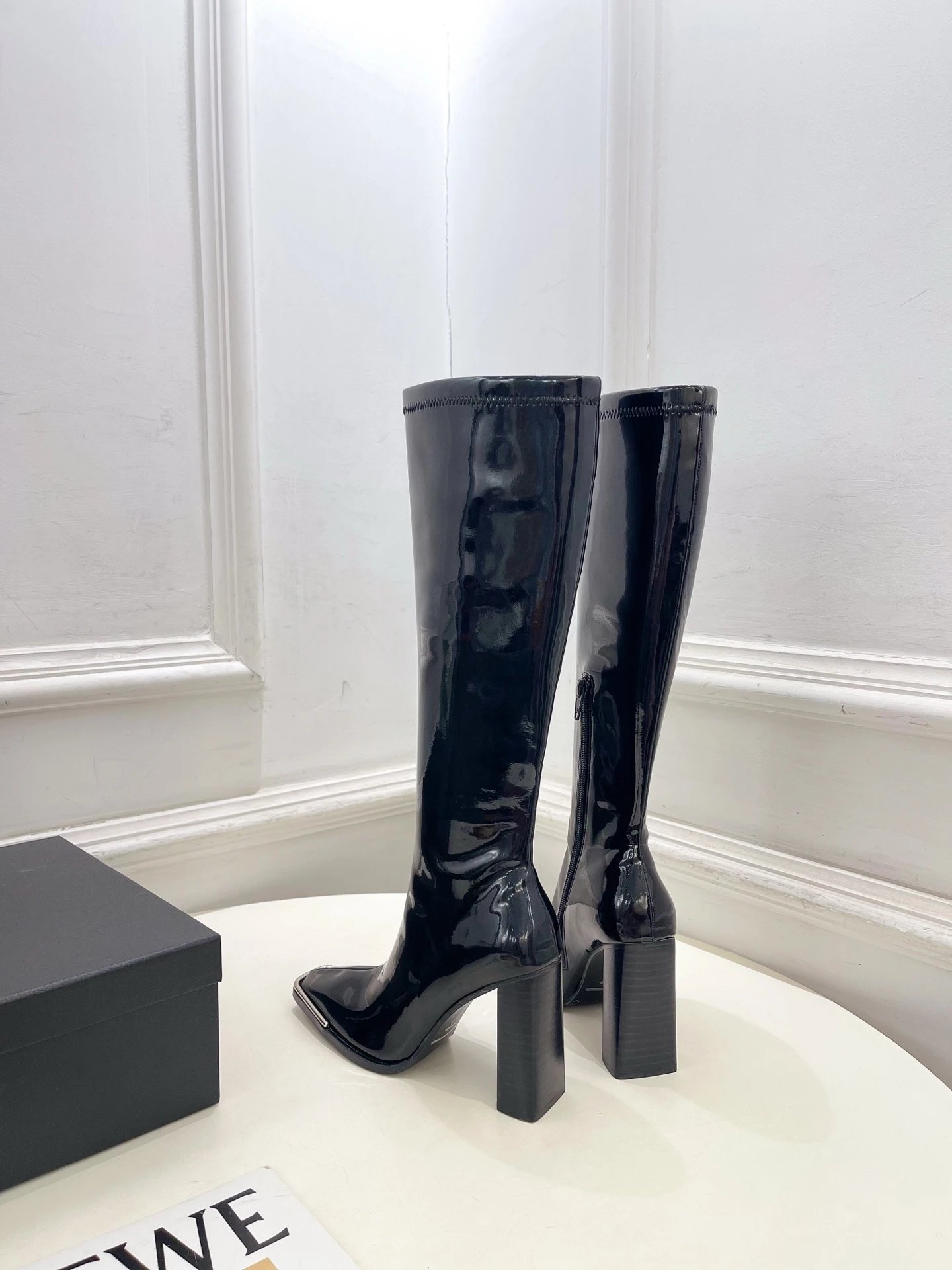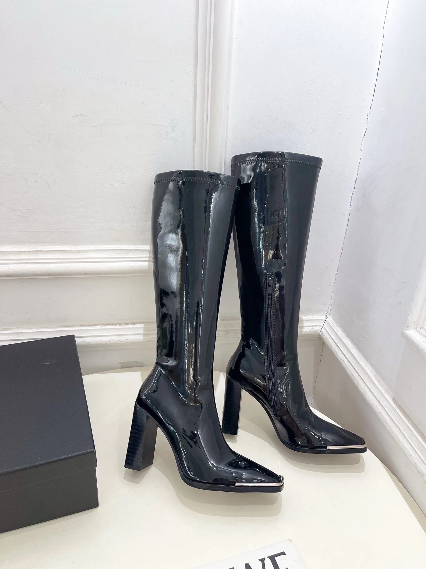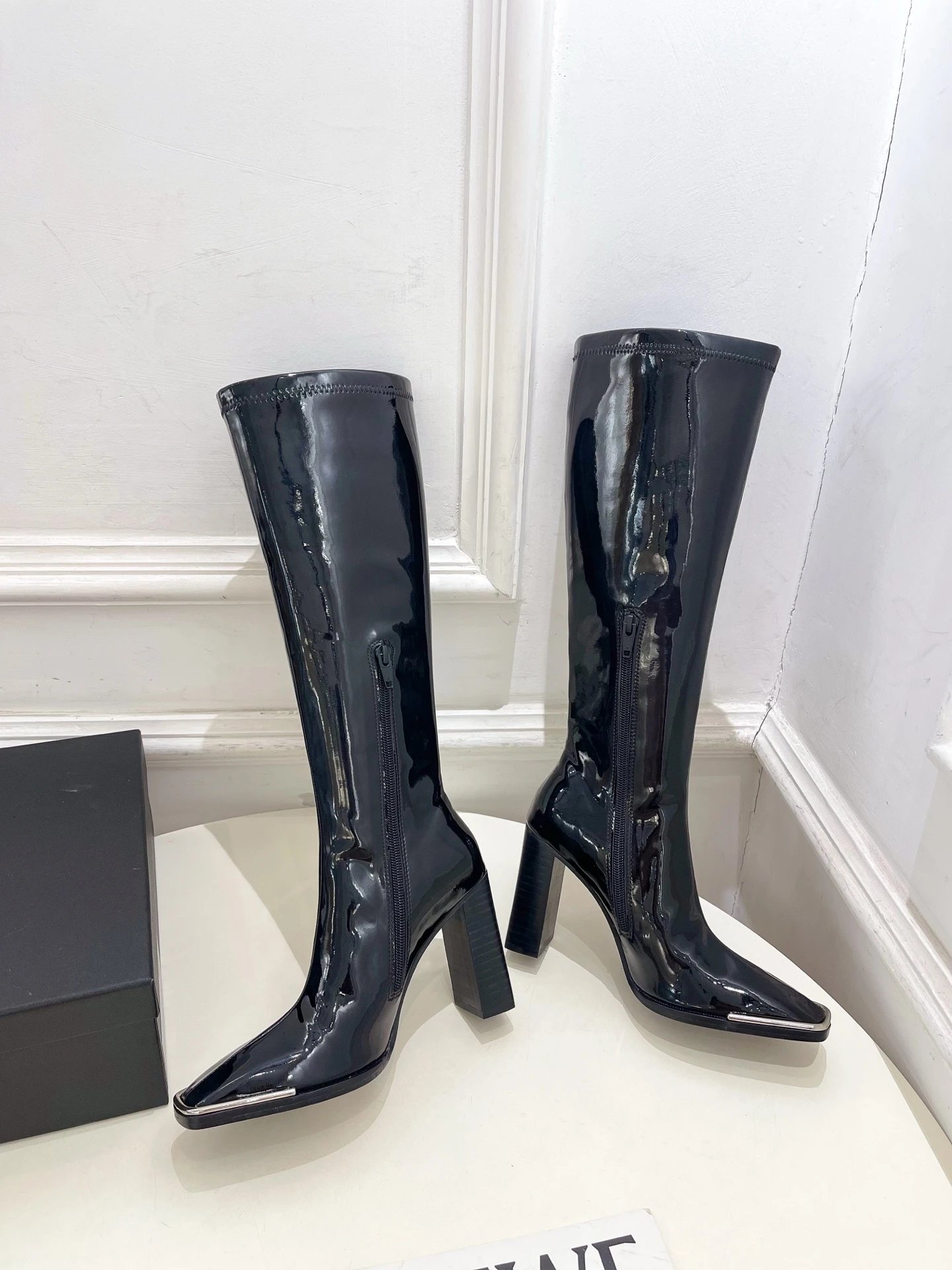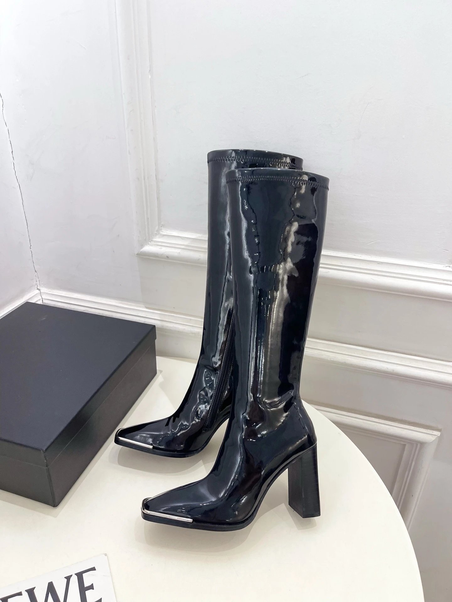 Couple style with smooth lines (30-day last adjustment). Premium calfskin/patent leather upper, sheepskin lining, genuine leather outsole. Heel height: 9.5cm. Sizes: 34-40 (custom non-returnable).