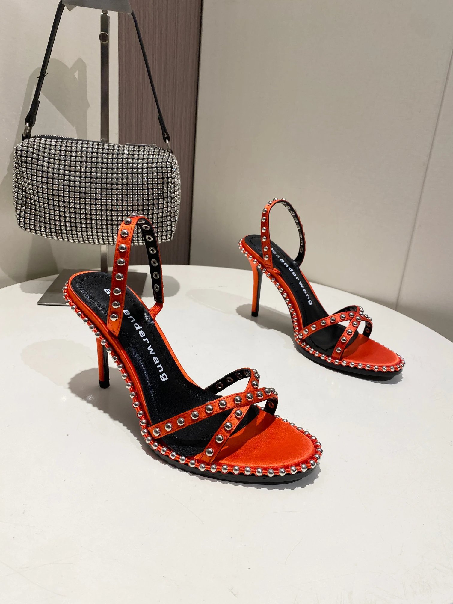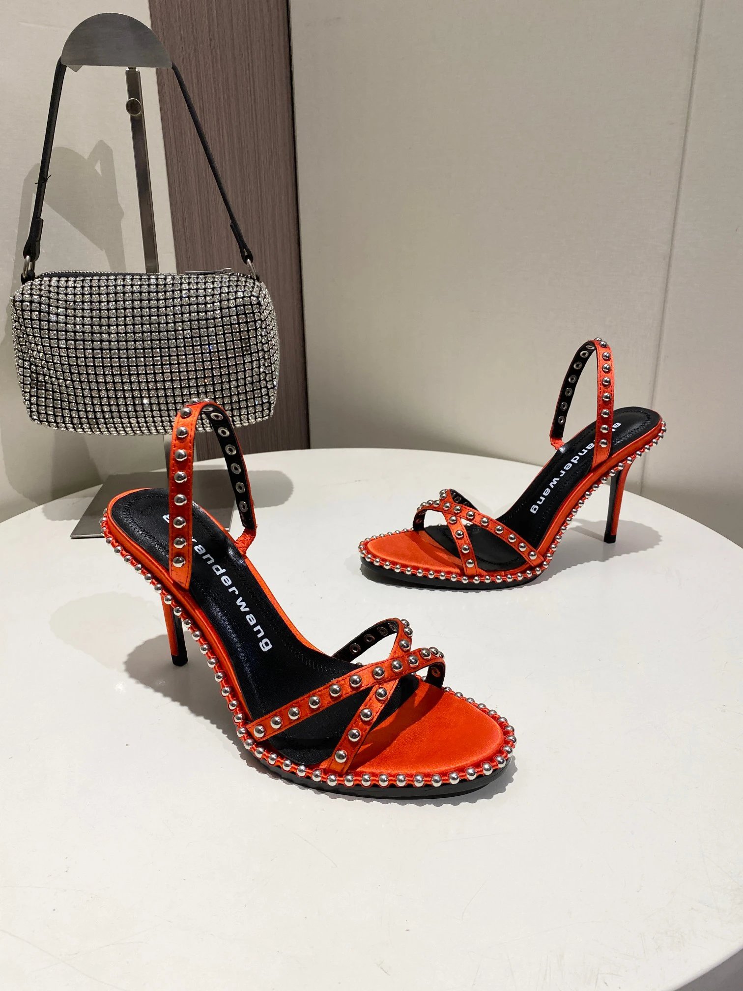 Alexander Wang Spring Summer High Heel Sandals feature original white logo letters.