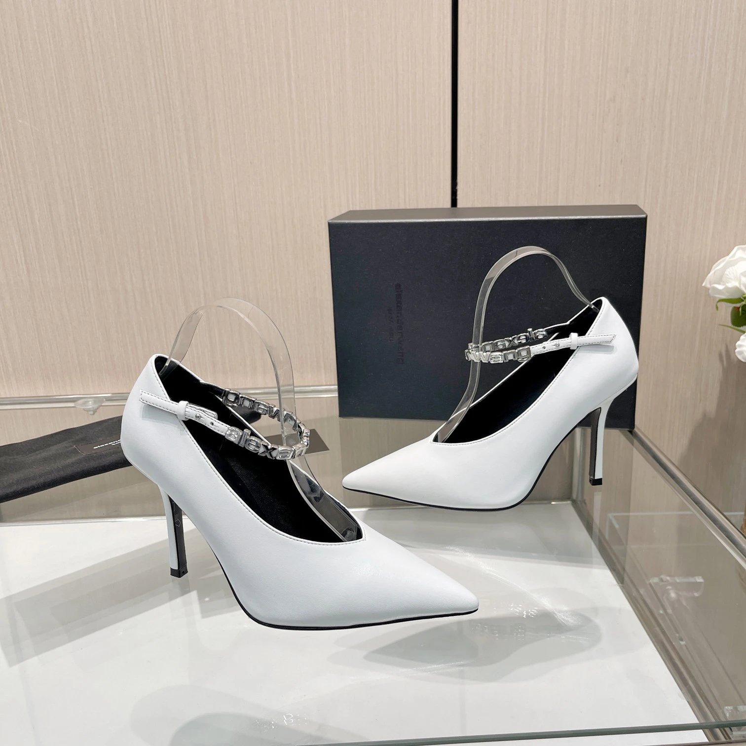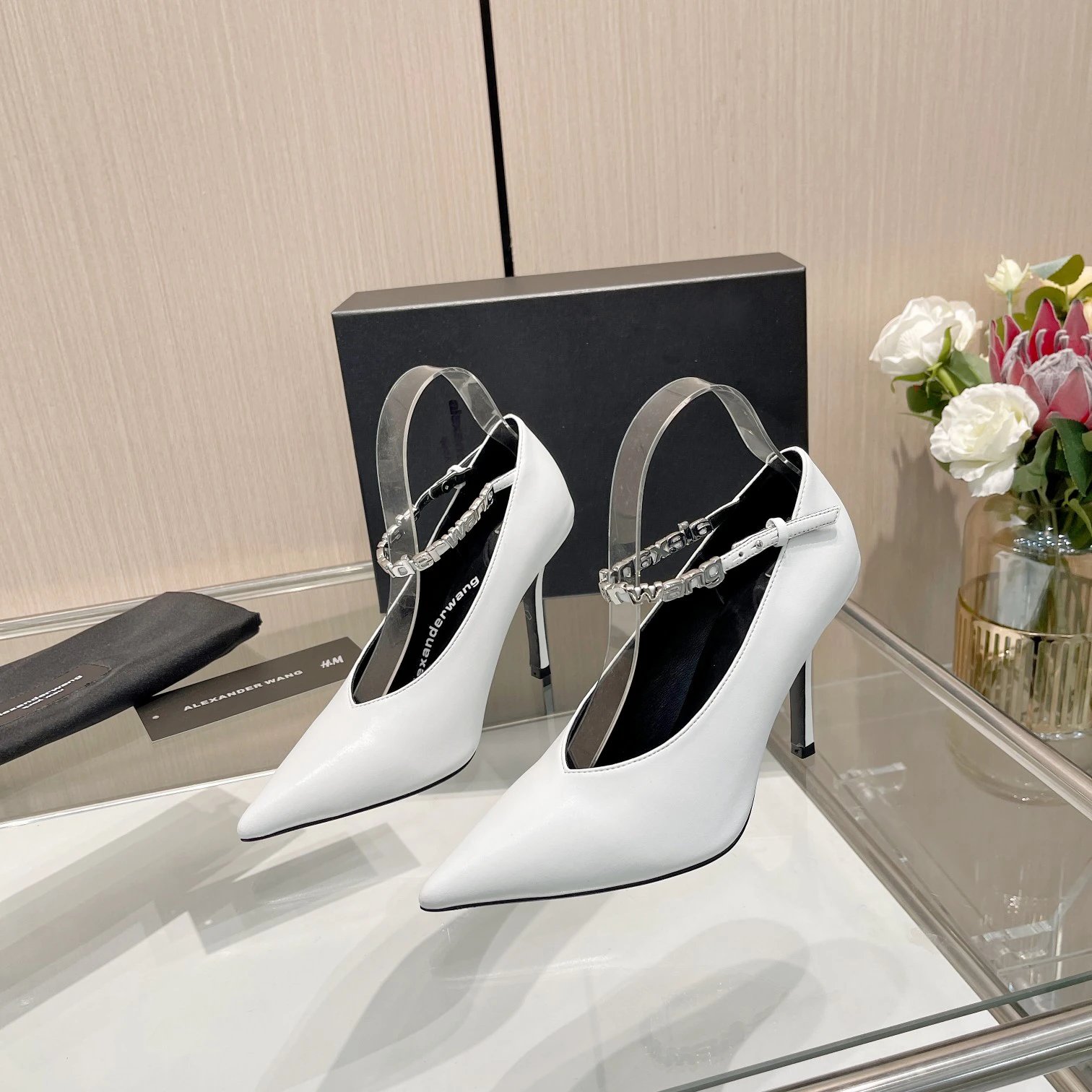 Alexander Wang 2024 Women's High Heels use imported leather uppers (black/white).