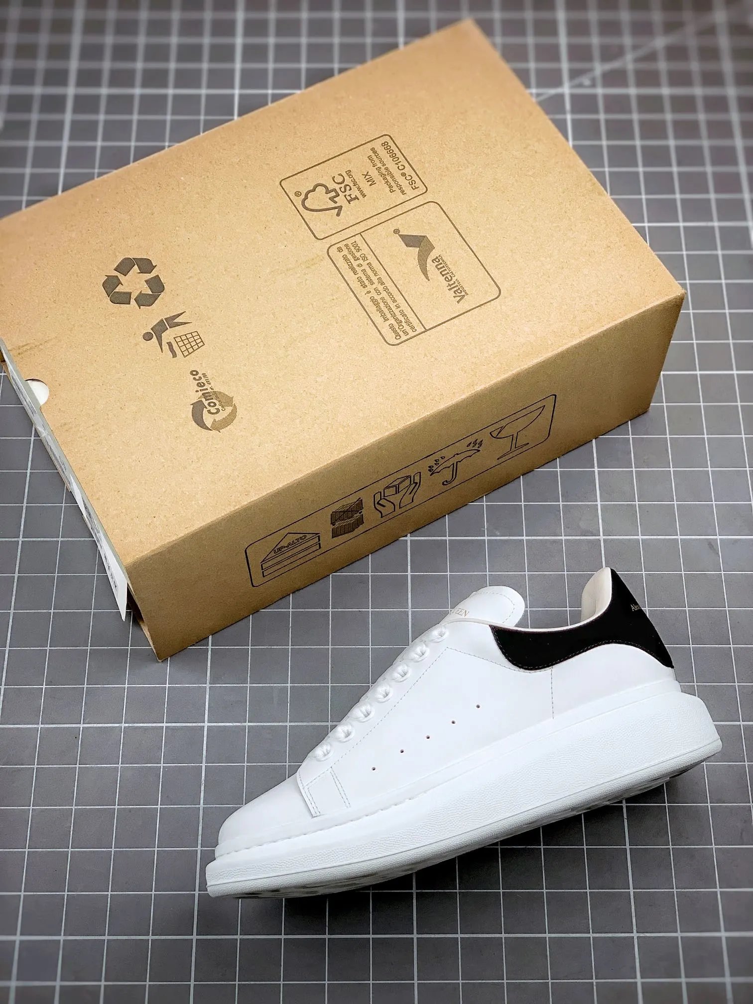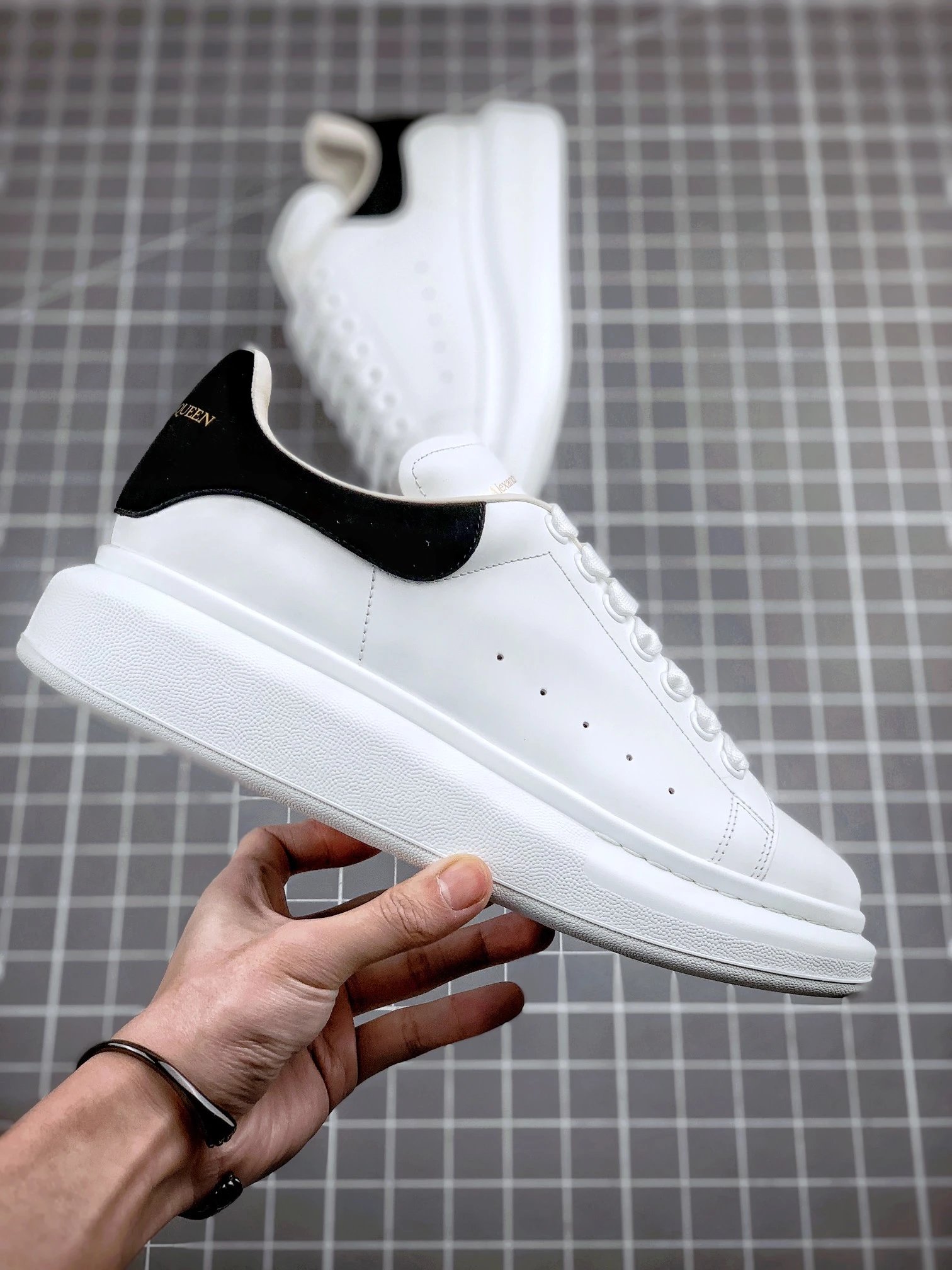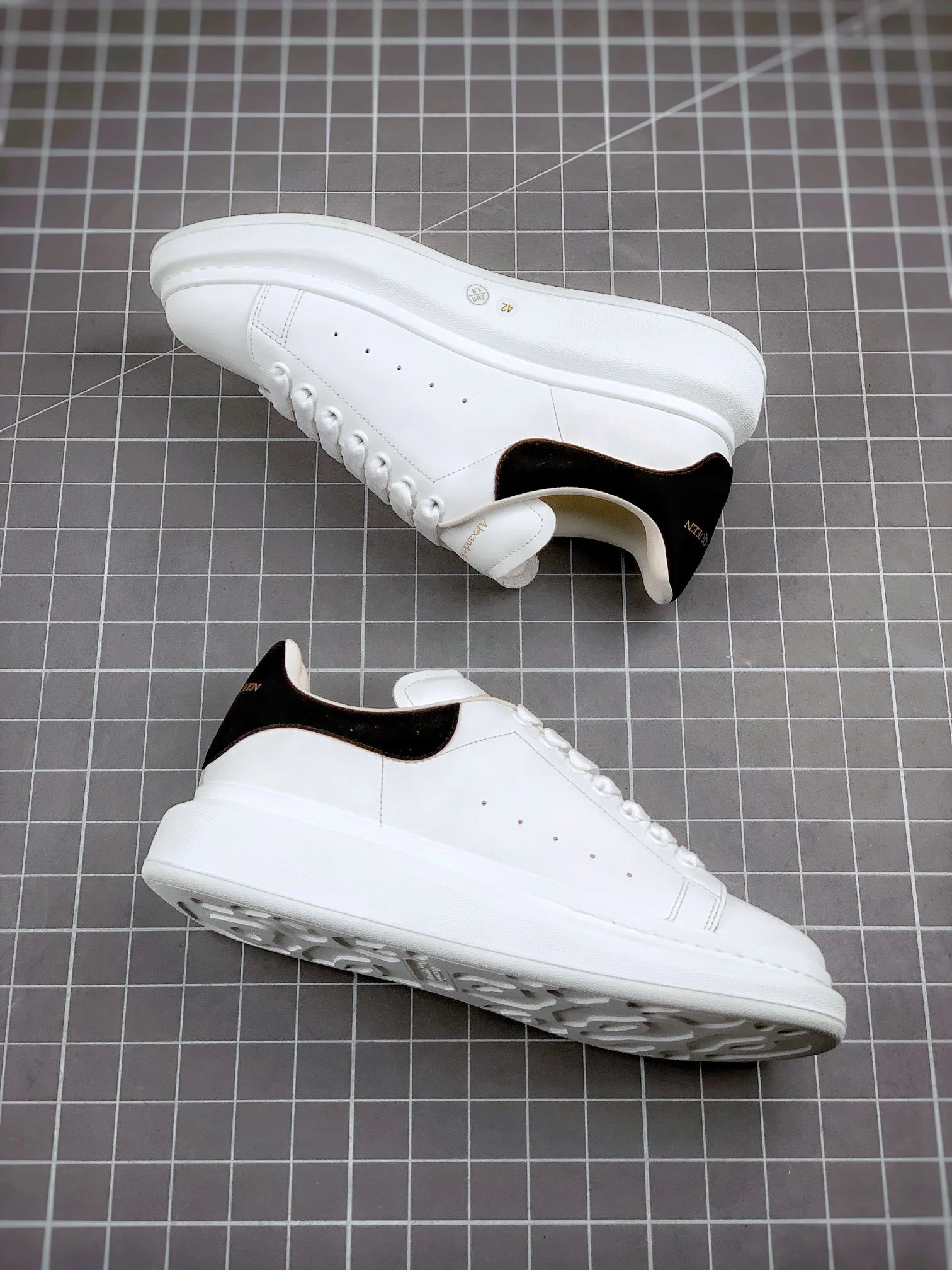Alexander McQueen 2020 White Flatform Sneakers with flocked leather upper.