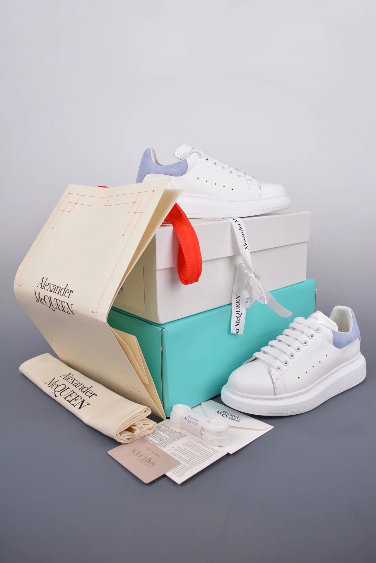 Alexander McQueen Men's White Oversized Sneakers use 100% calfskin upper, soft lambskin lining, NFC-scannable sole.