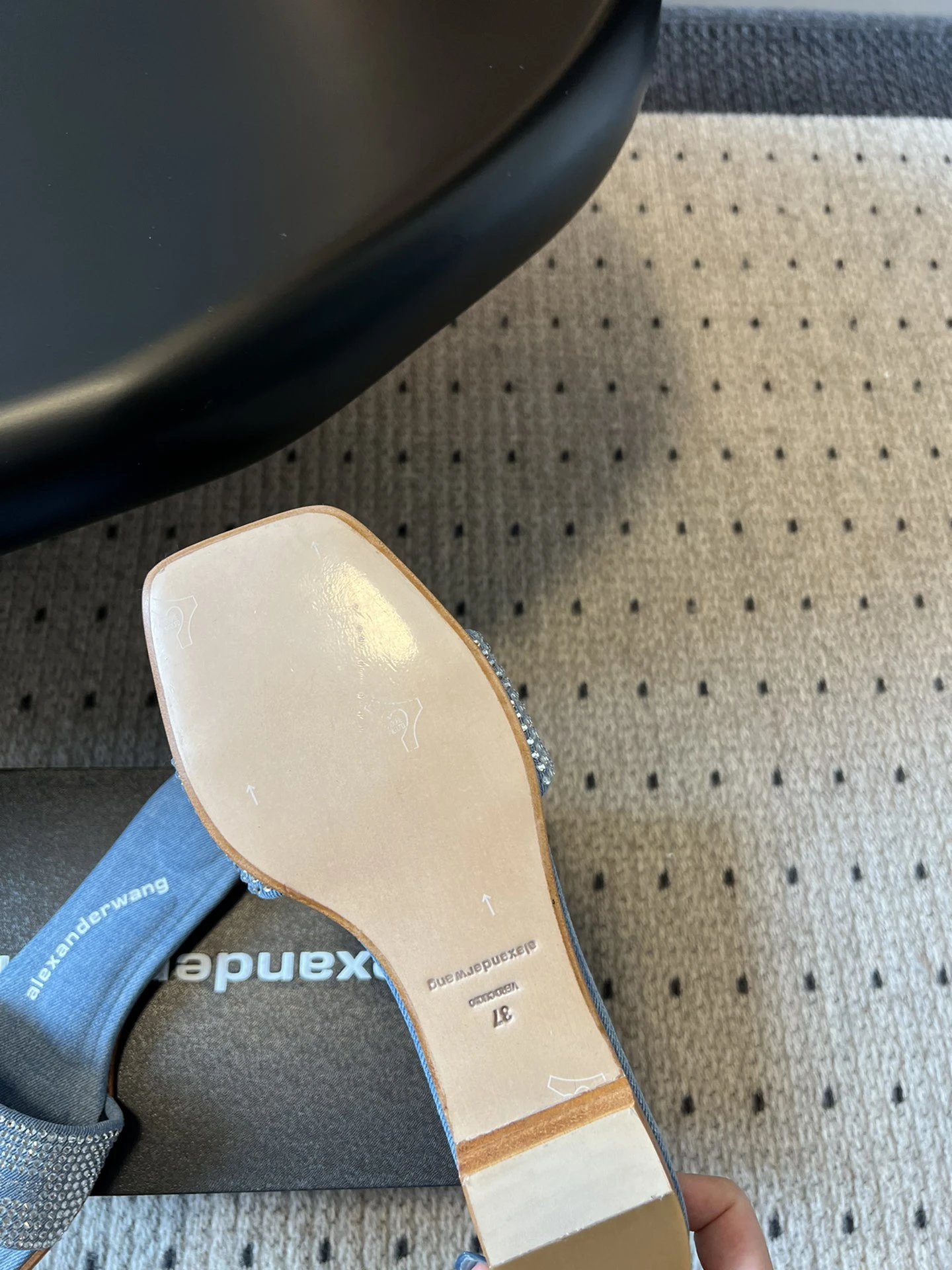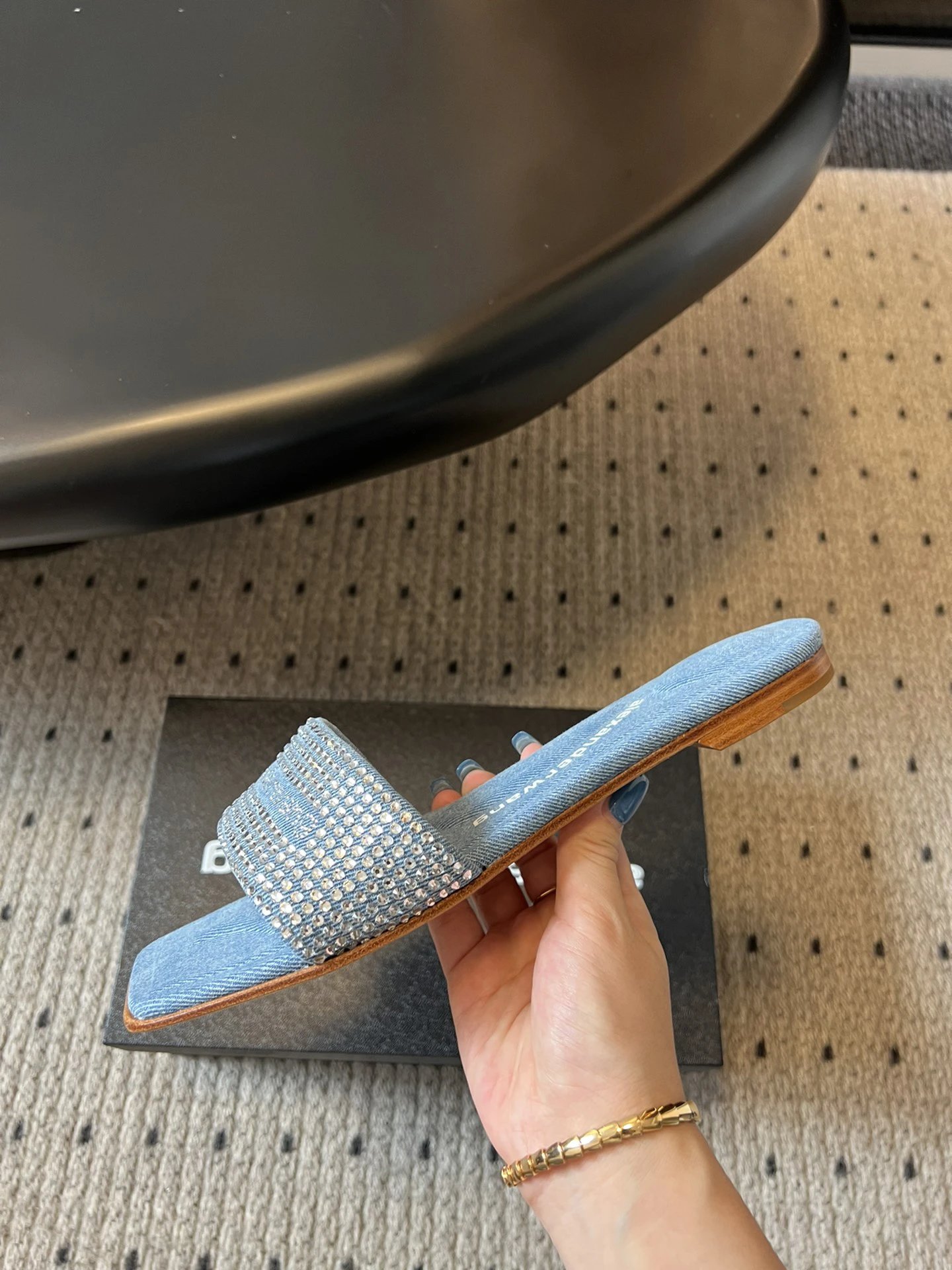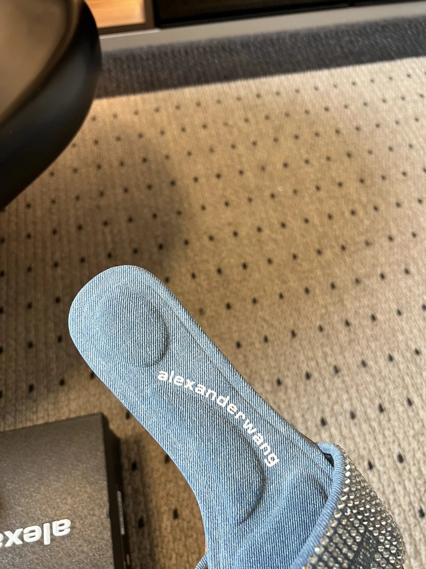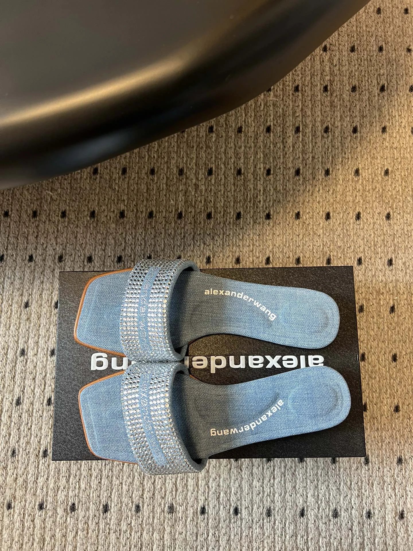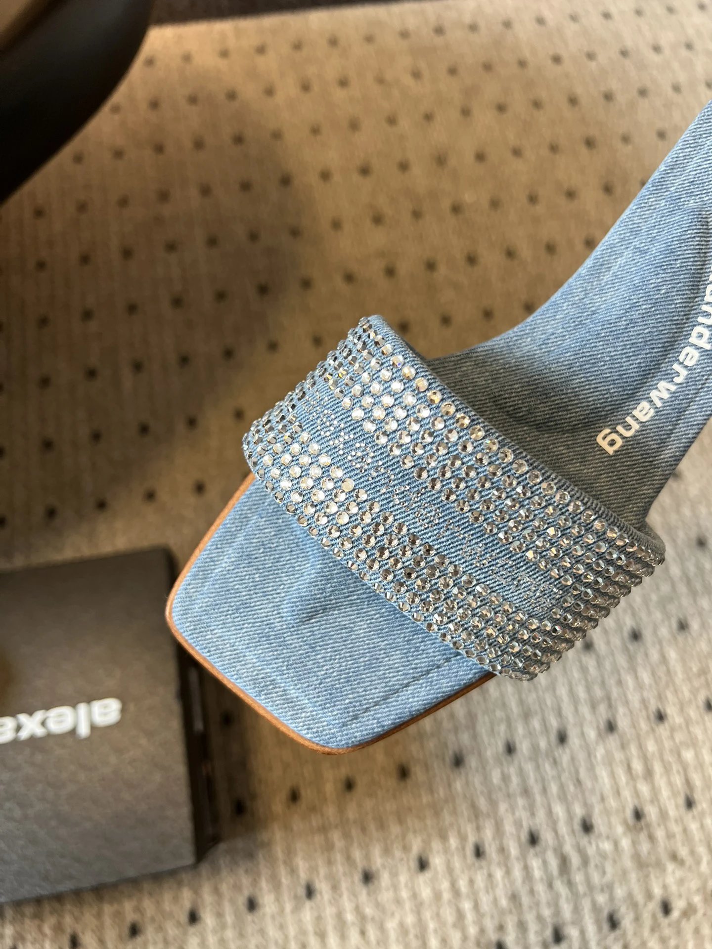 Alexander Wang 25ss Women's Denim Slippers feature Austrian crystals for style.