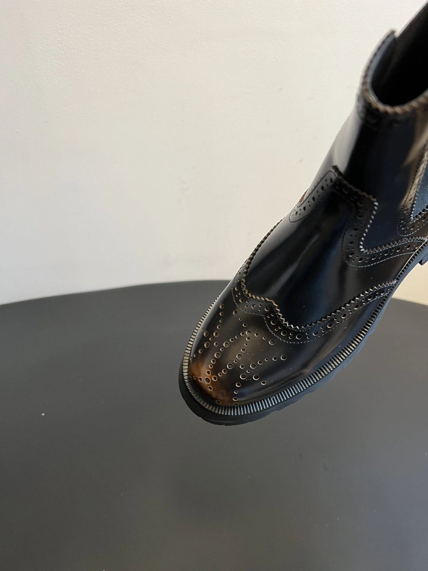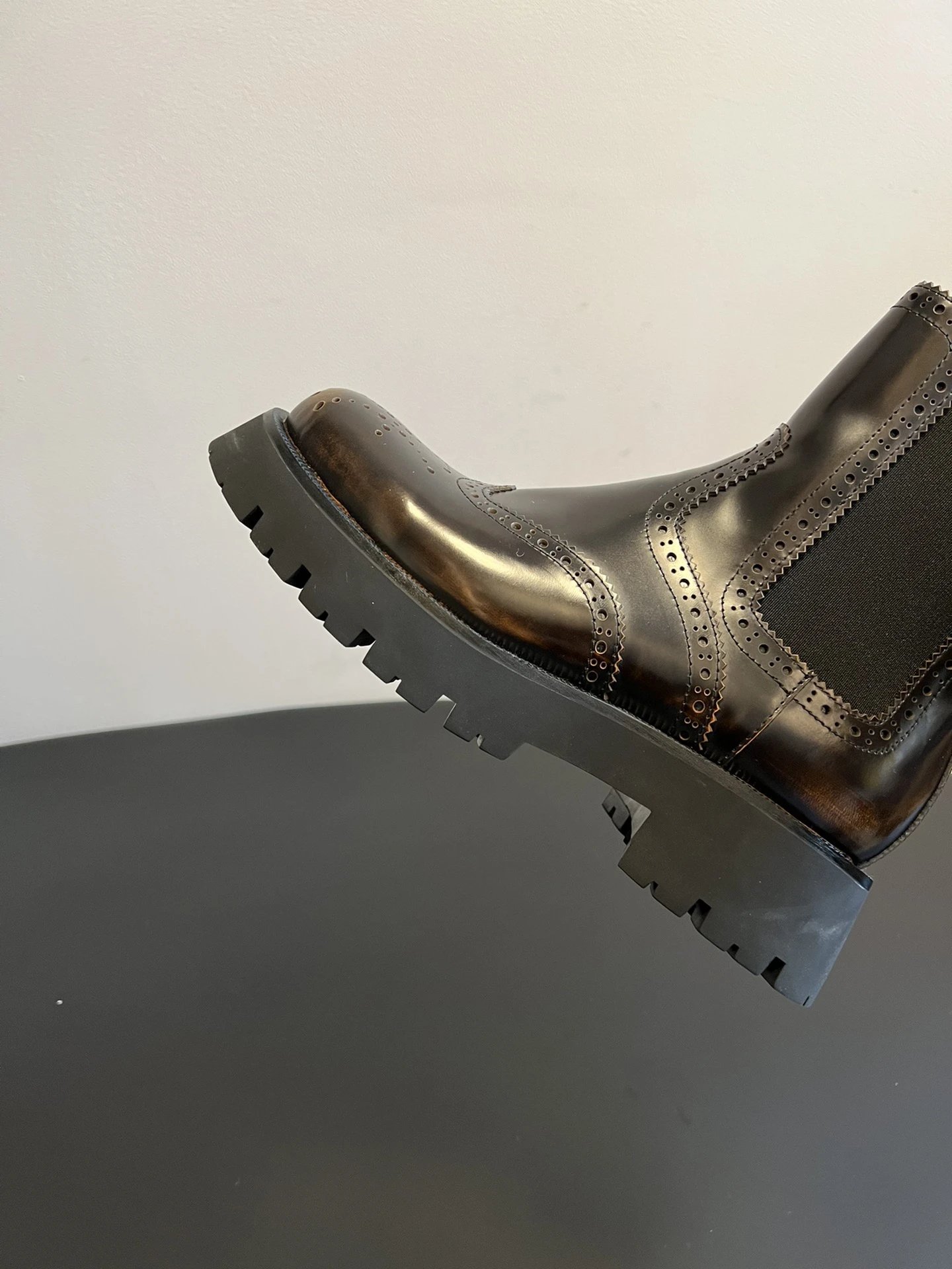 Alexander Wang 25SS Brogue Chelsea Boots mix classic brogue details with Chelsea elastic panels & chunky workwear soles for retro elegance + street cool.
