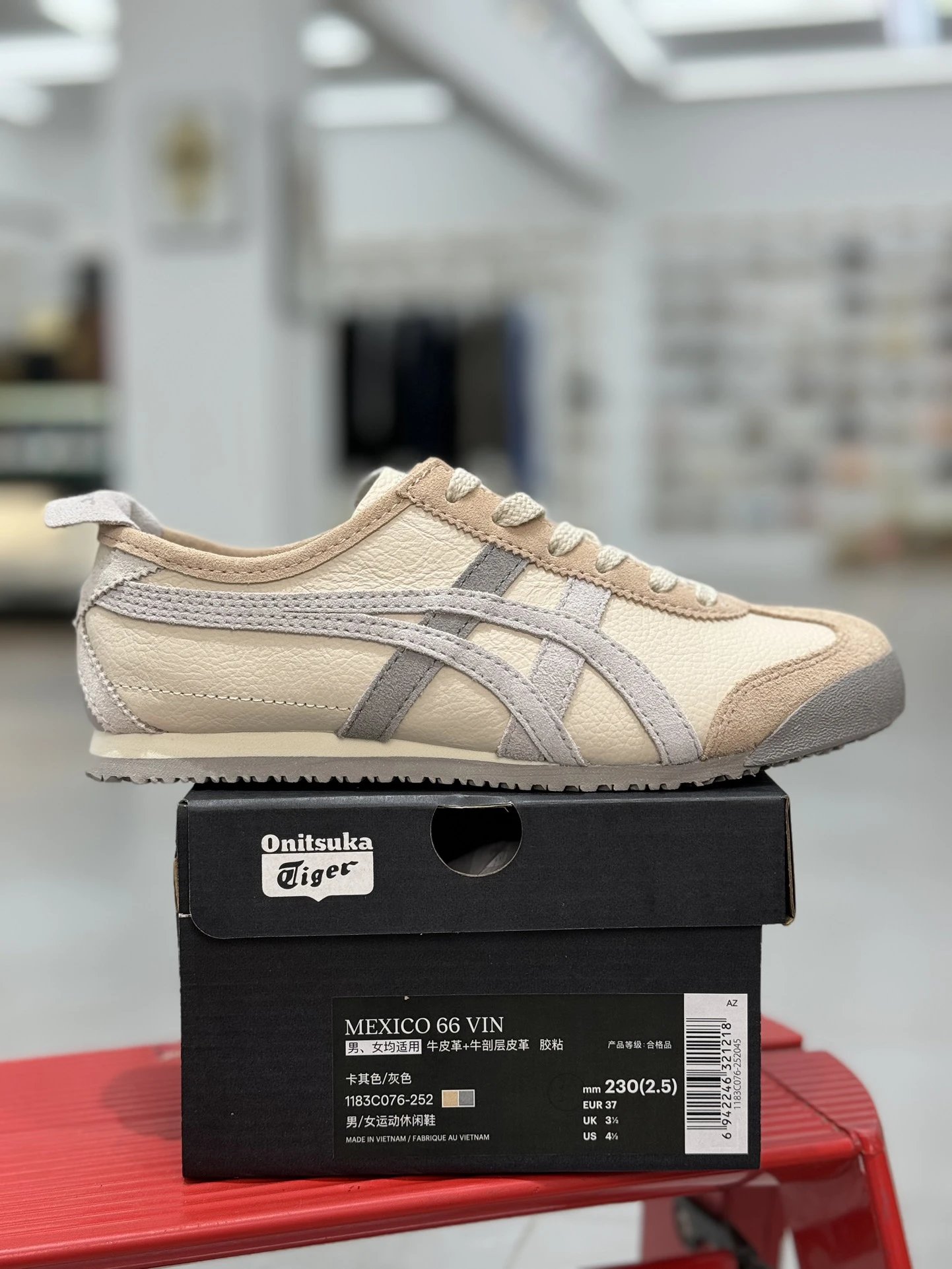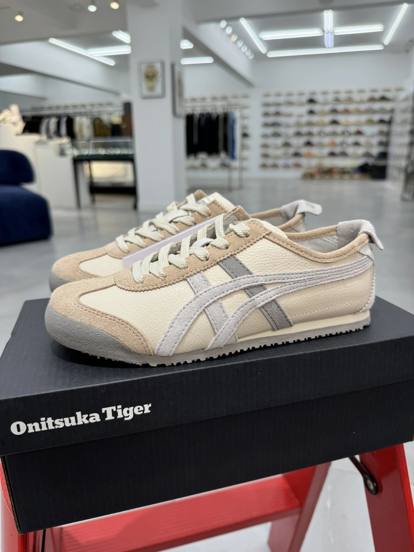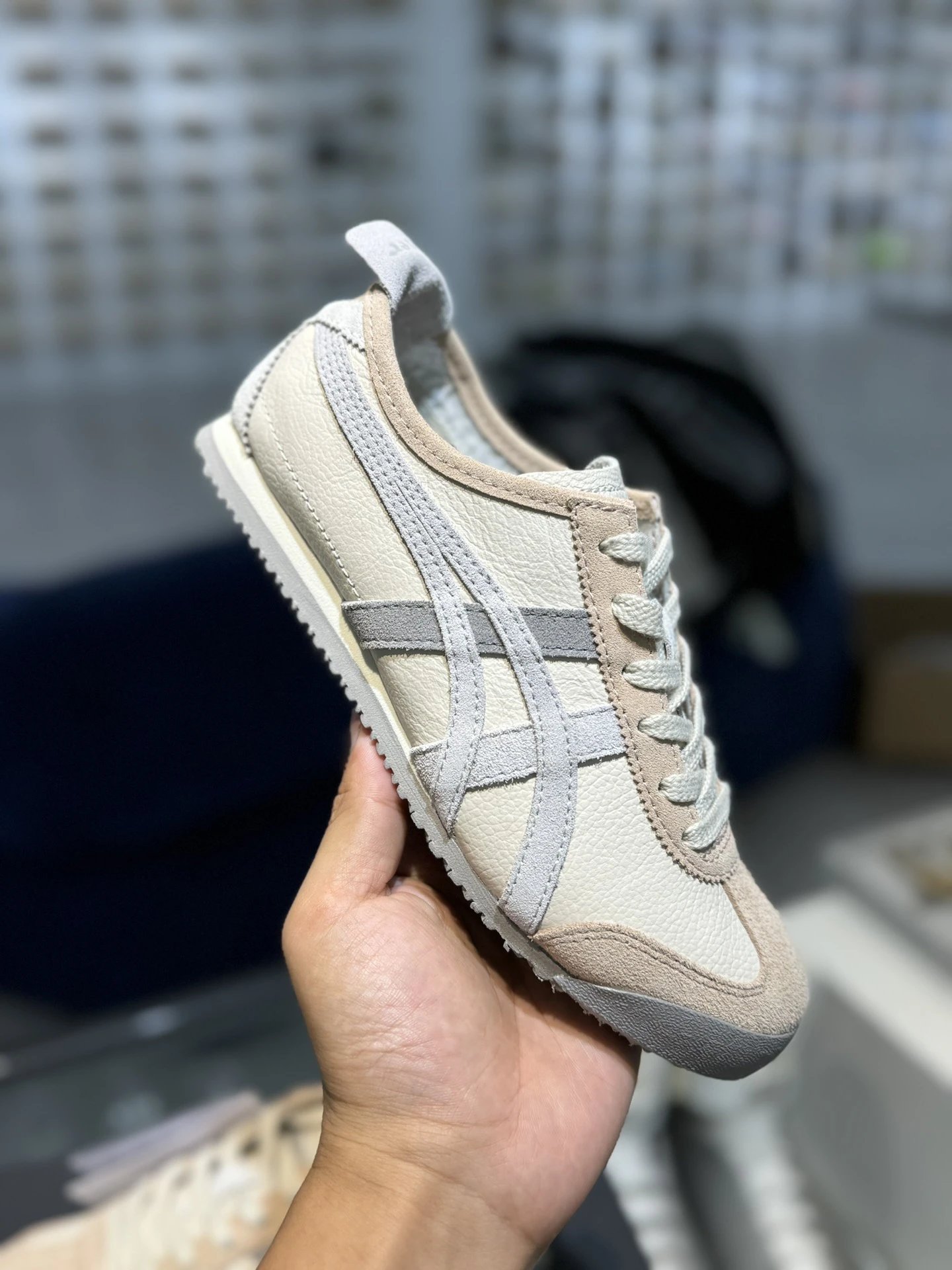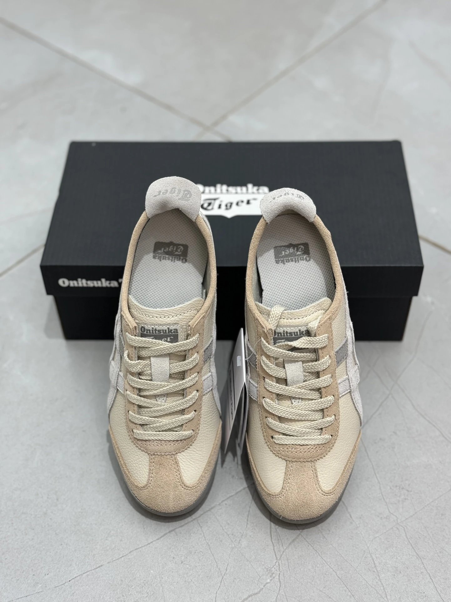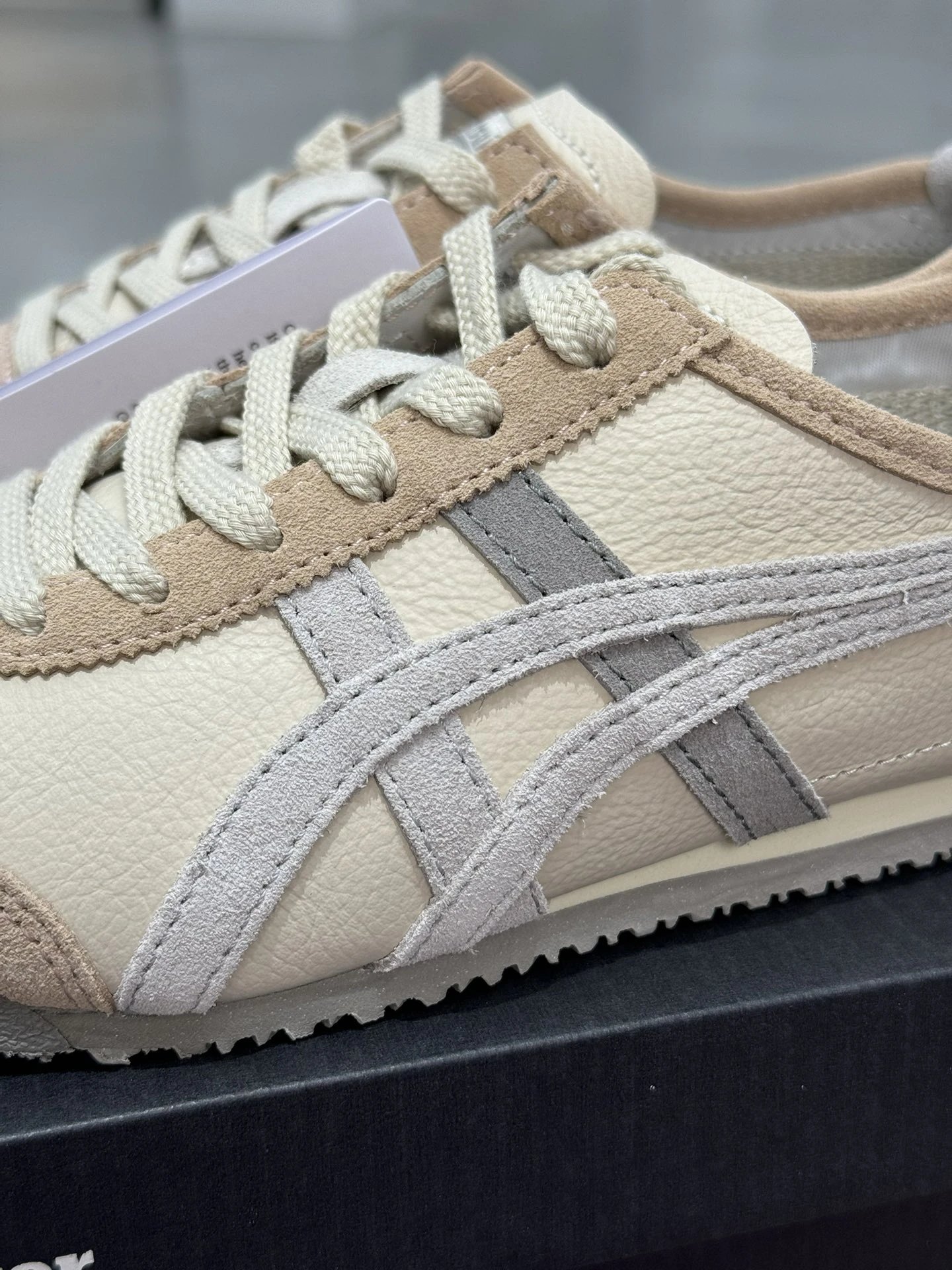 Onitsuka Tiger Mexico 66 sneakers use top grain leather in beige.