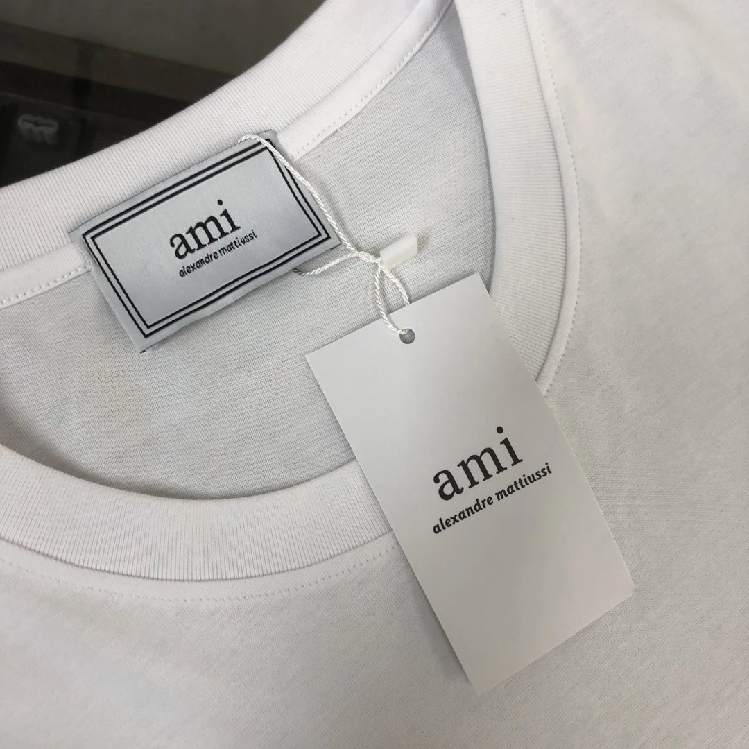 AMI Men's Crew Neck Short Sleeve T-Shirt is the highest market version, in stock for immediate shipping. Summer new style with 270g heavy premium cotton, perfect hand feel, slim fit, clean style, exquisite stitching, great shape, super breathable, suitable for all ages—men's wardrobe essential.