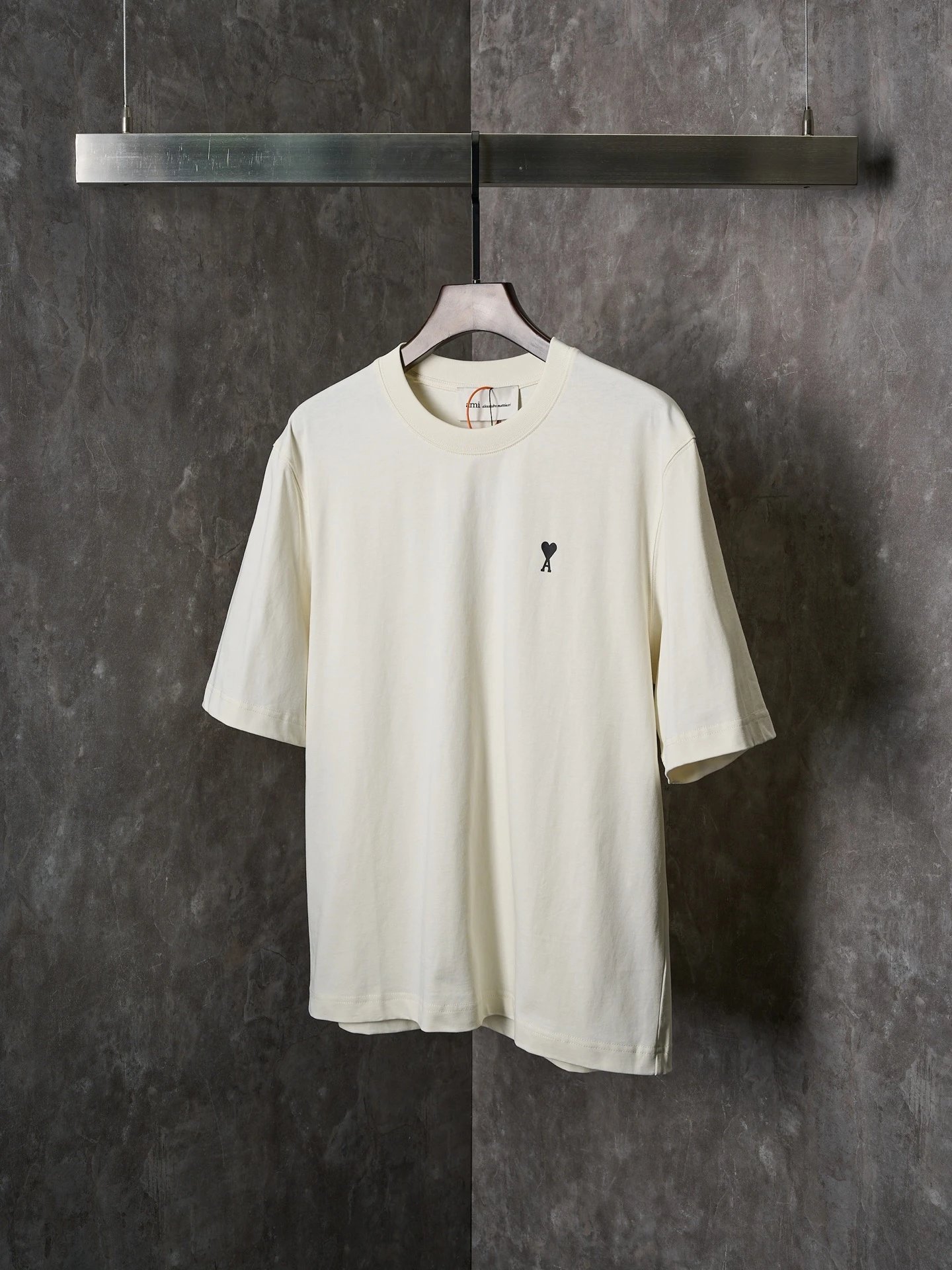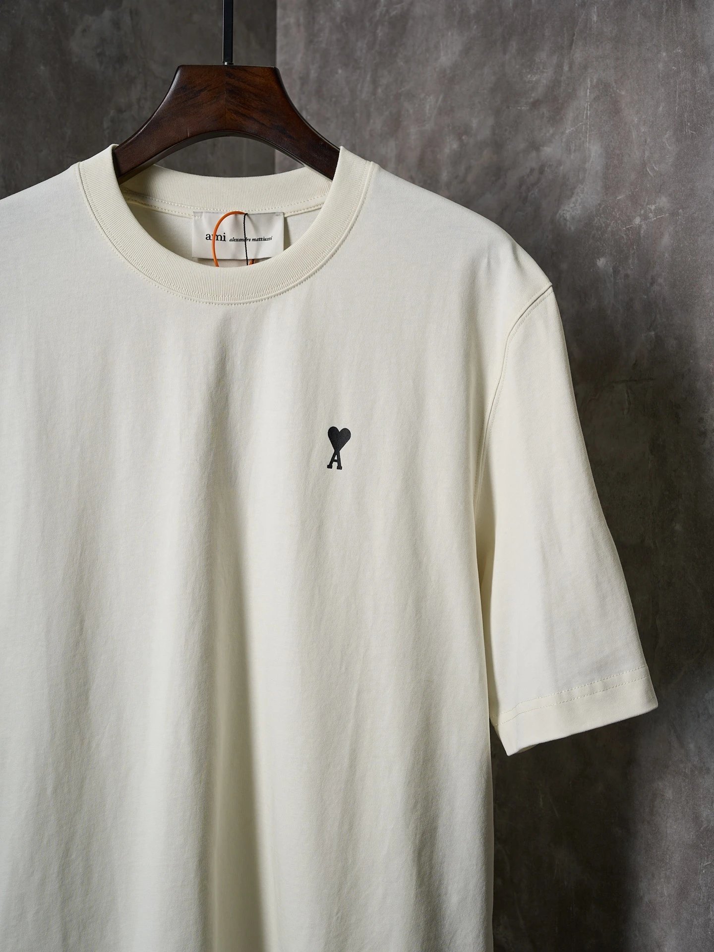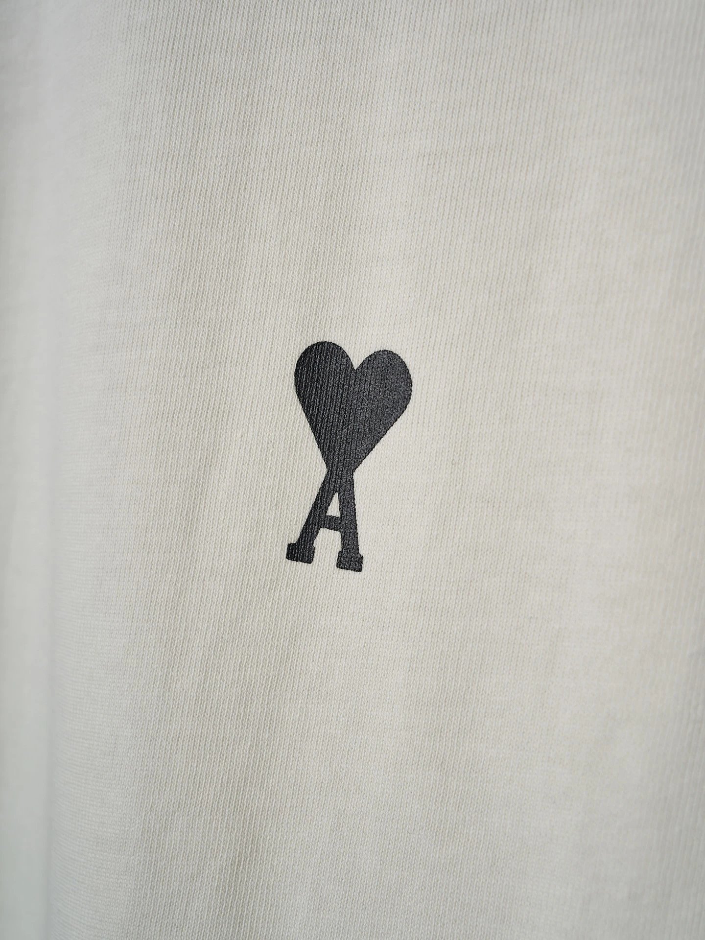 Ami Paris Beige Heart Print Combed Cotton T-Shirt
