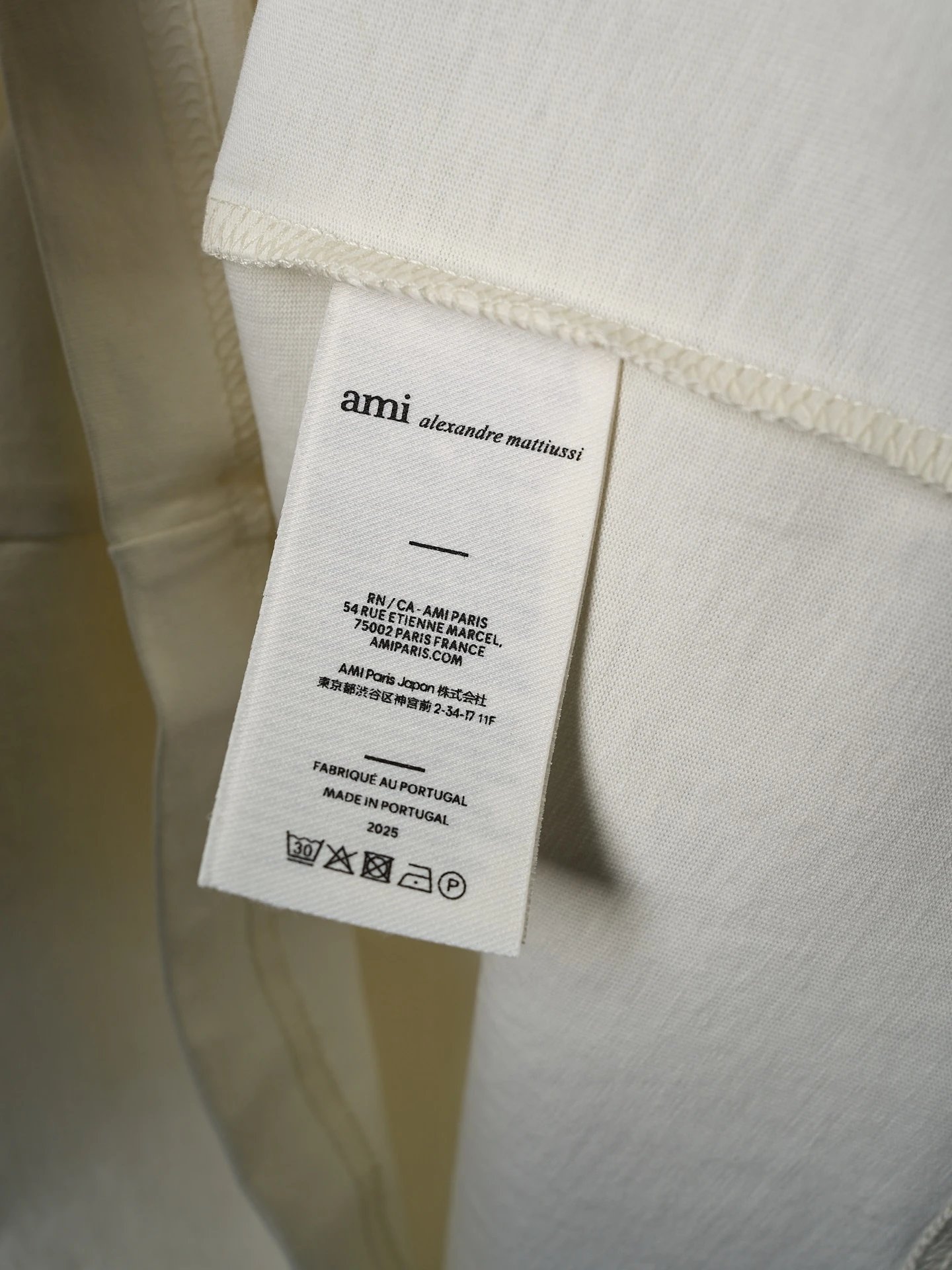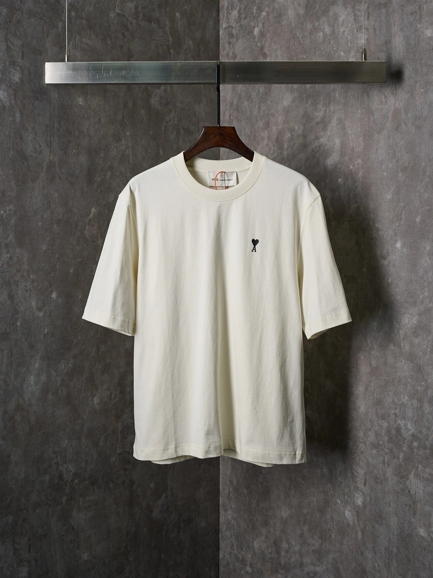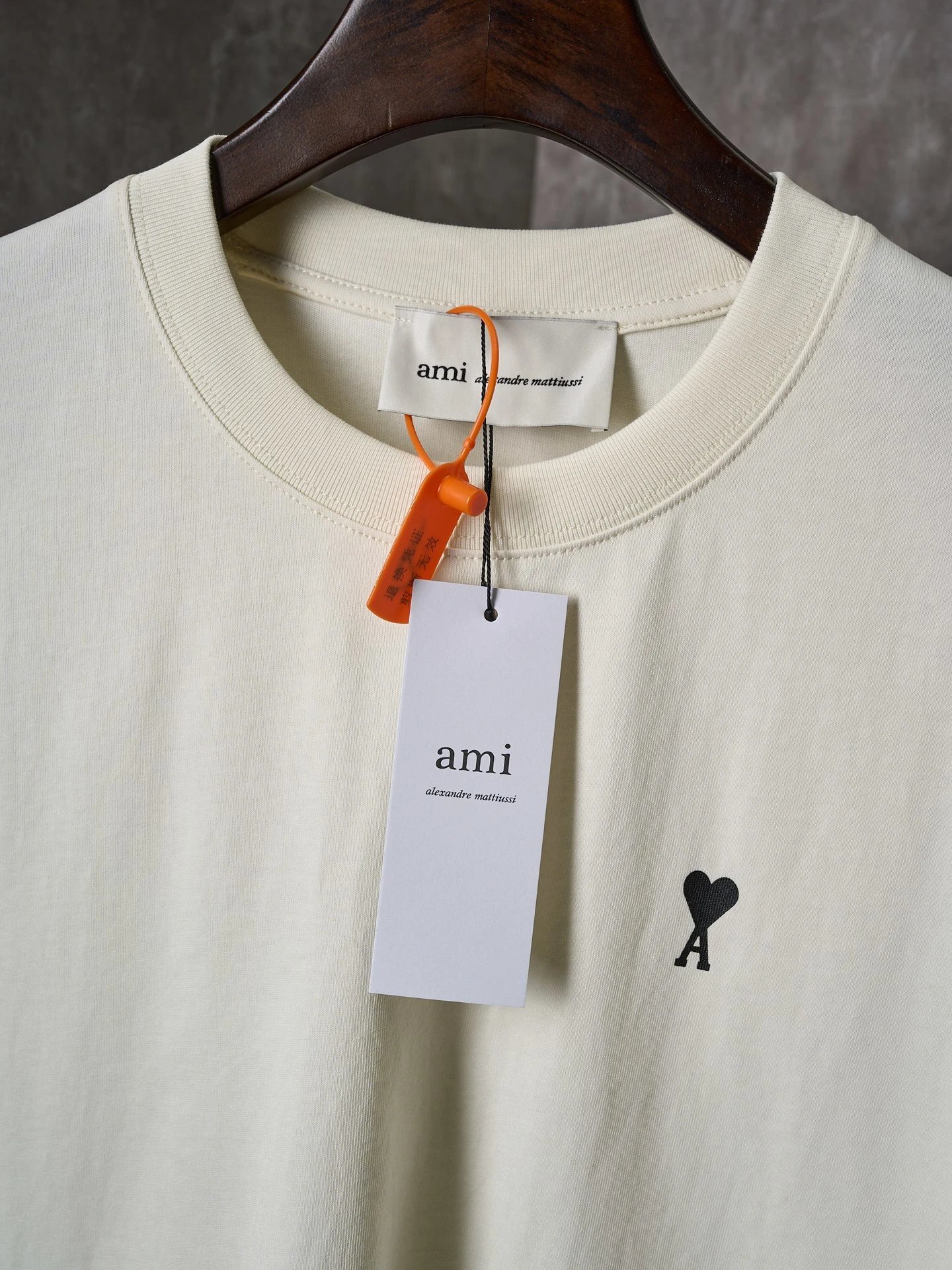 Ami Paris Beige Heart Print Combed Cotton T-Shirt